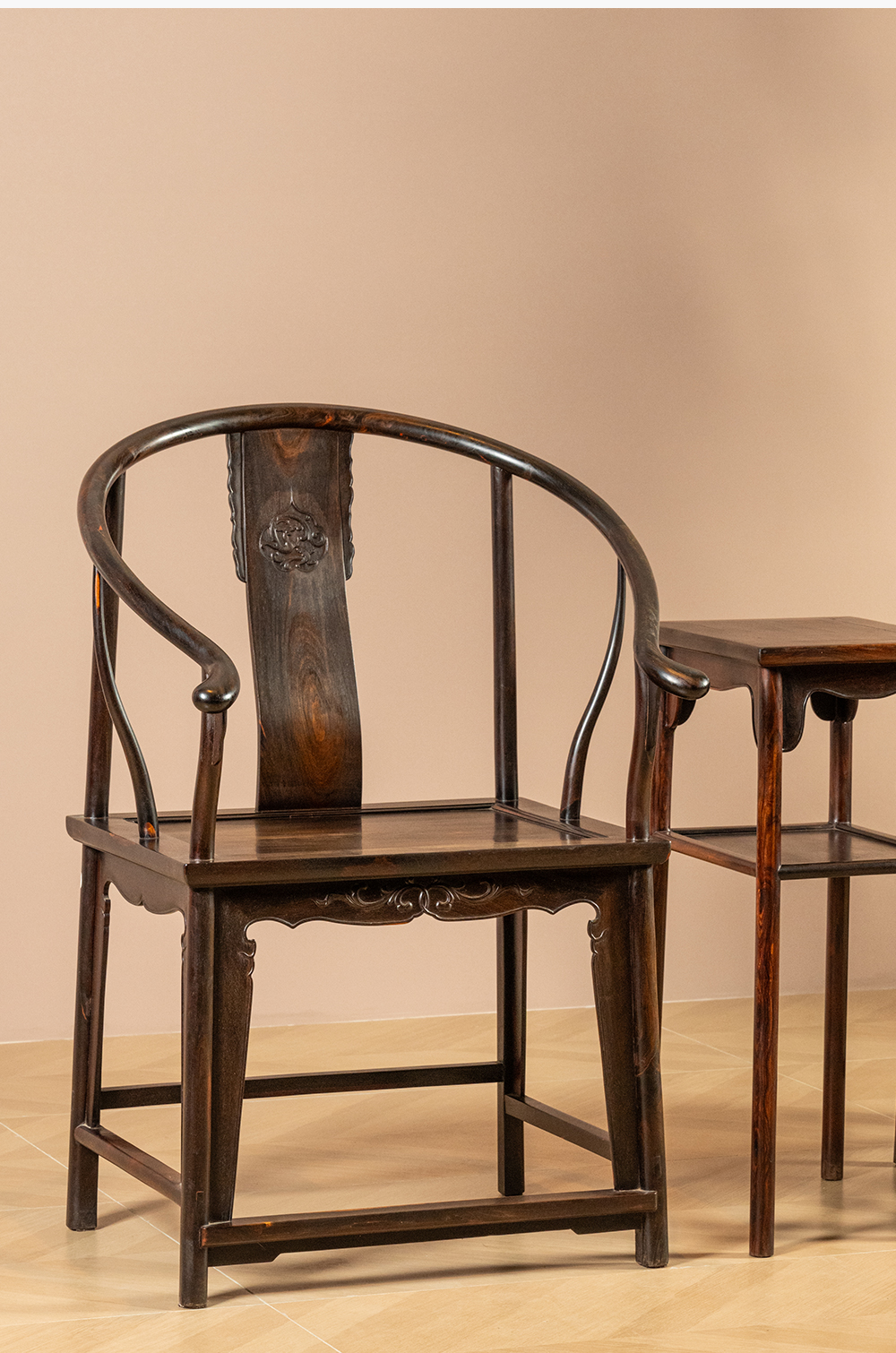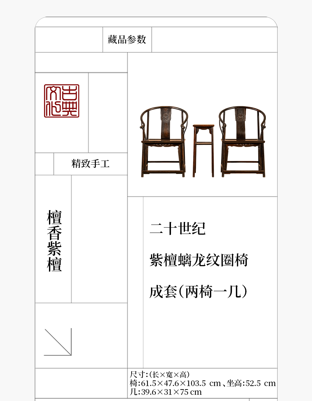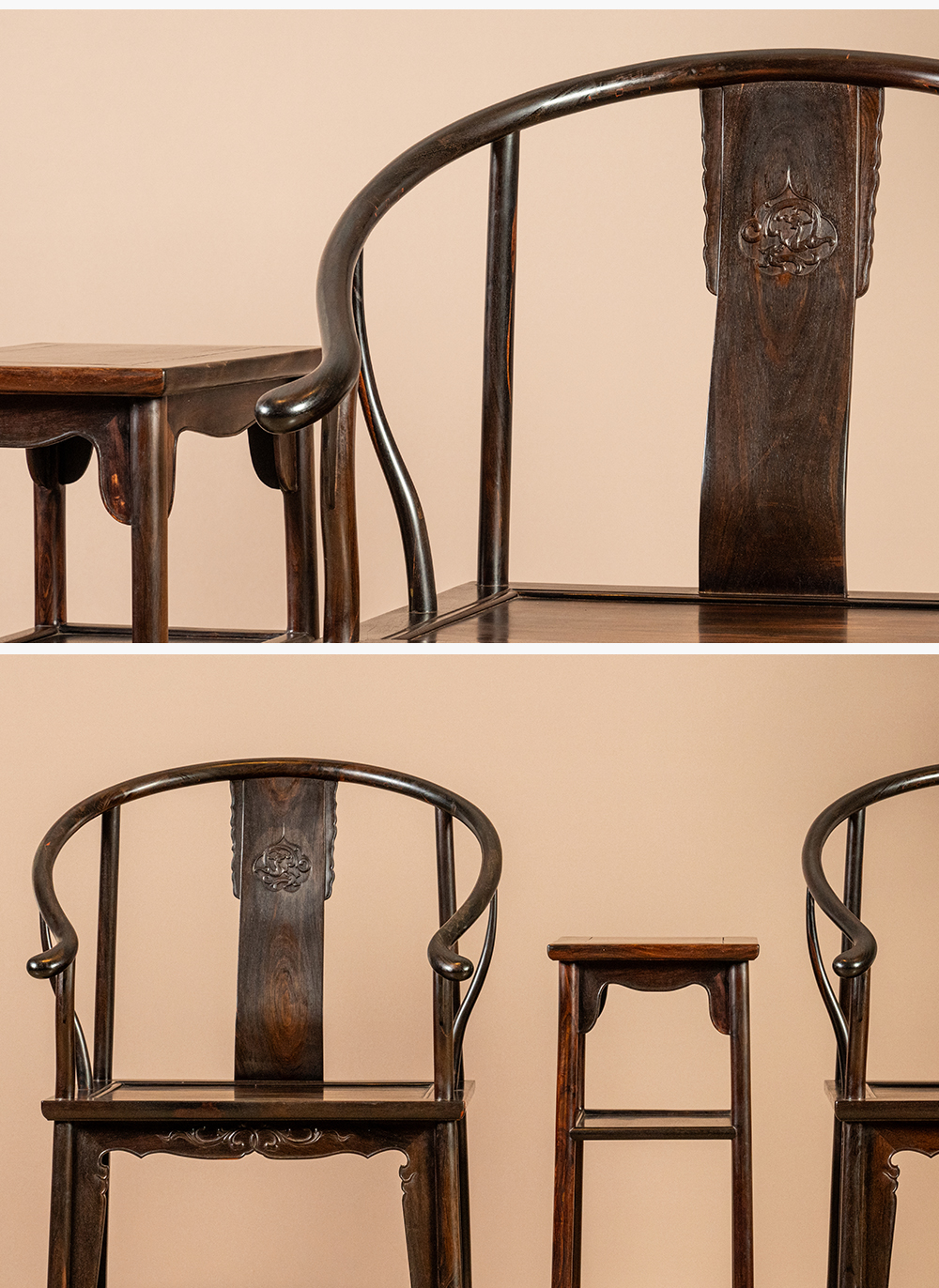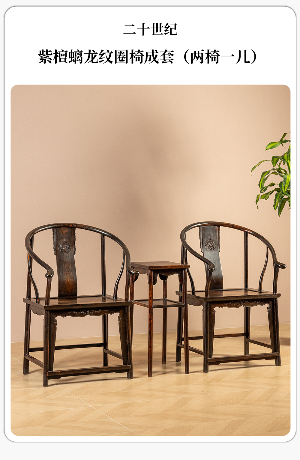 二十世纪 紫檀螭龙纹圈椅成套(两椅一几)