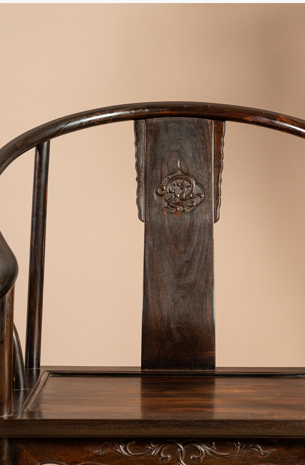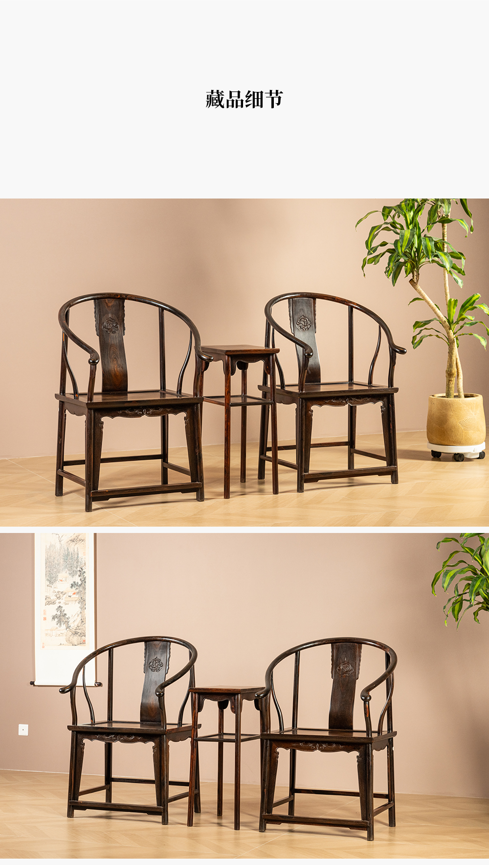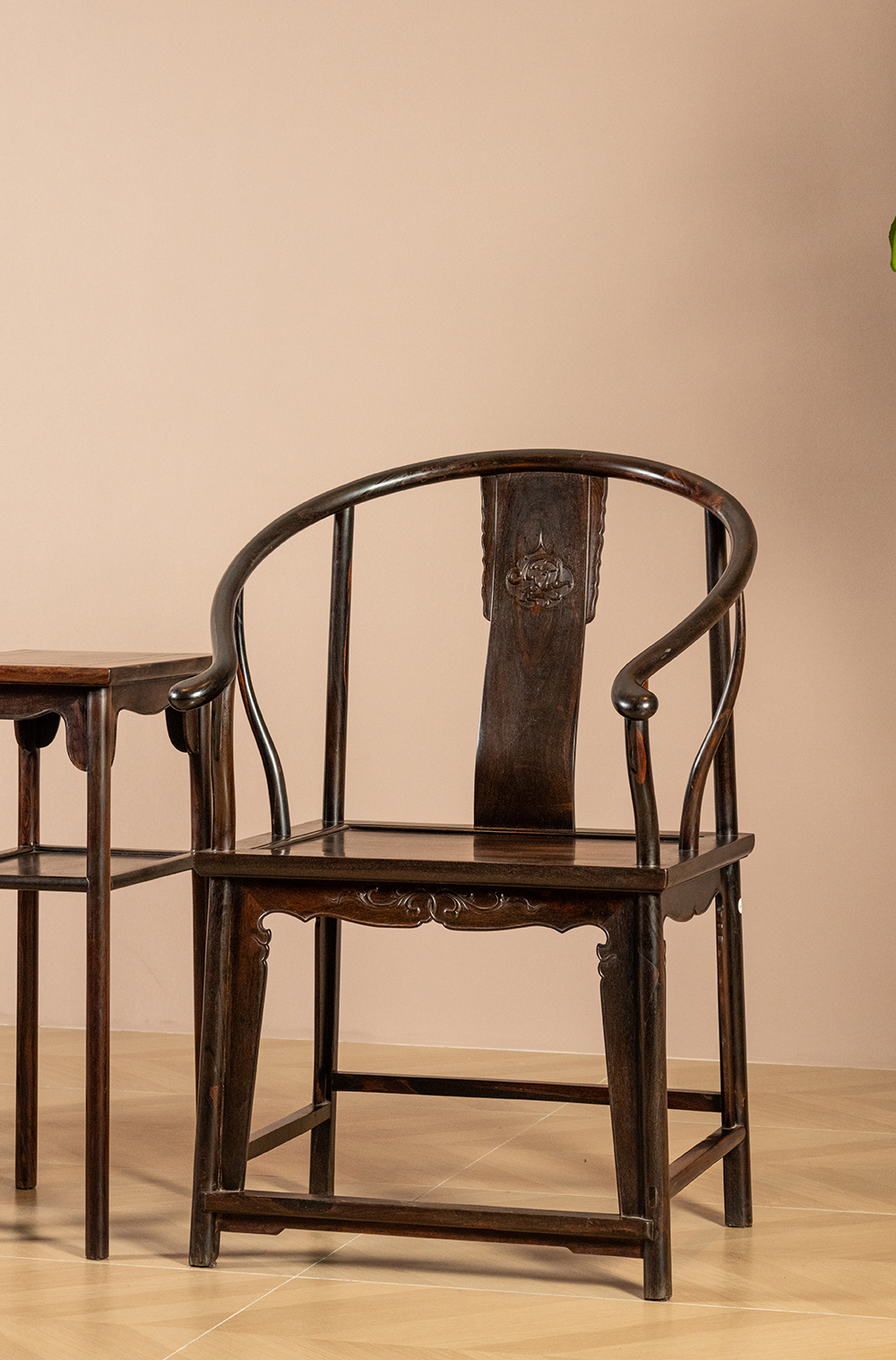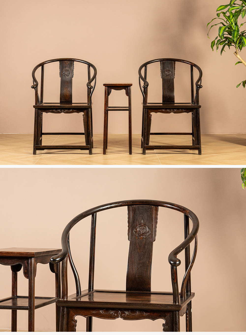 二十世纪 紫檀螭龙纹圈椅成套(两椅一几)