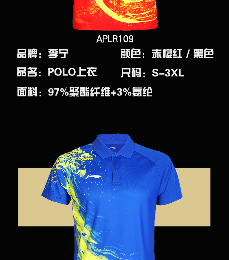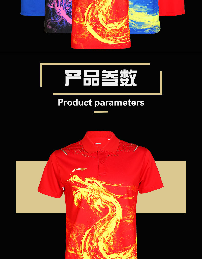 2022新款Lining李宁比赛服短袖男运动服东京比赛带领子半袖透气POLO衫