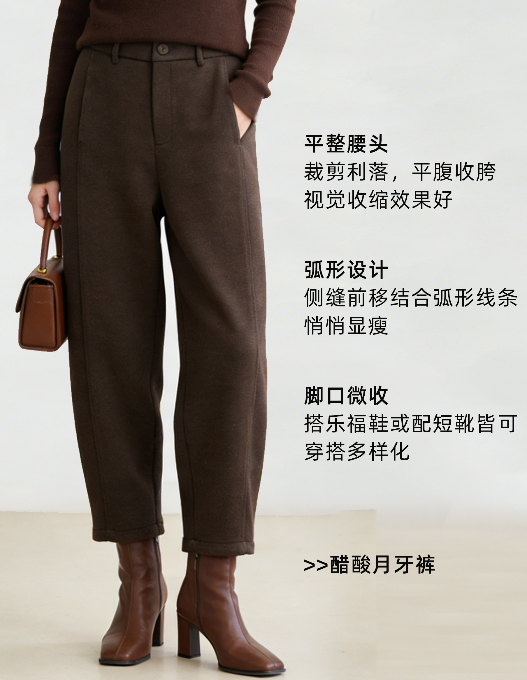 臣禾 【醋酸月牙裤】保暖显瘦毛呢休闲裤JZ244060203春秋 JZ254060103冬加绒