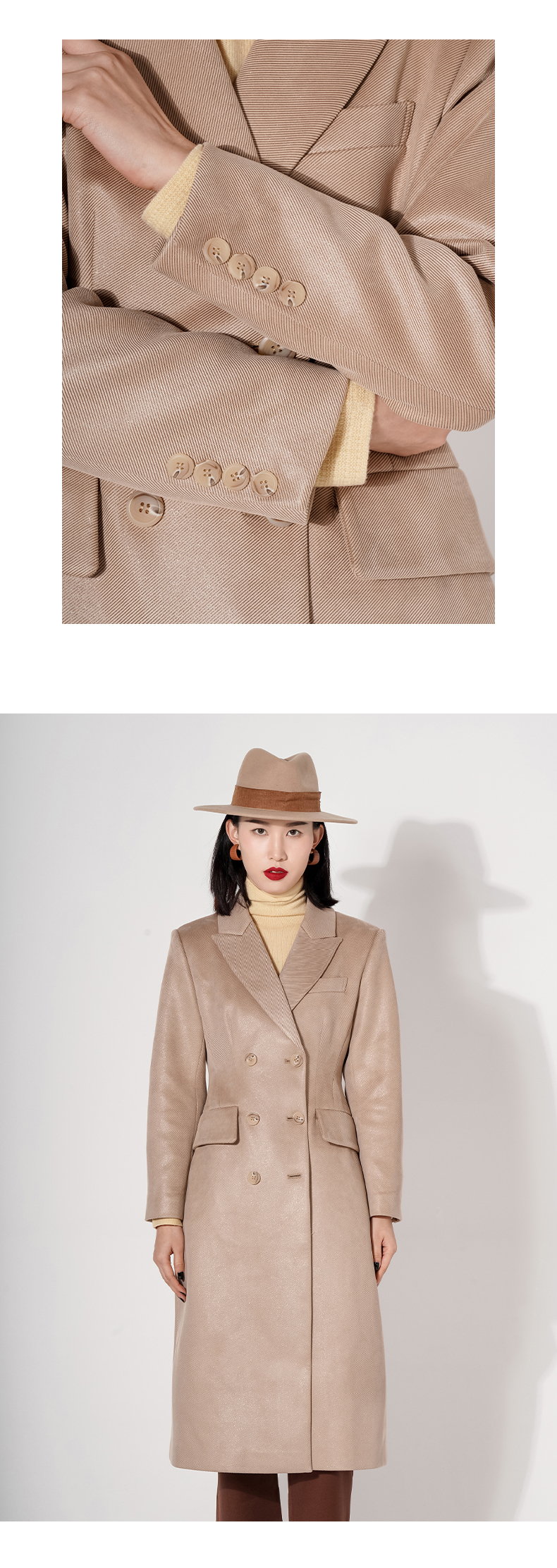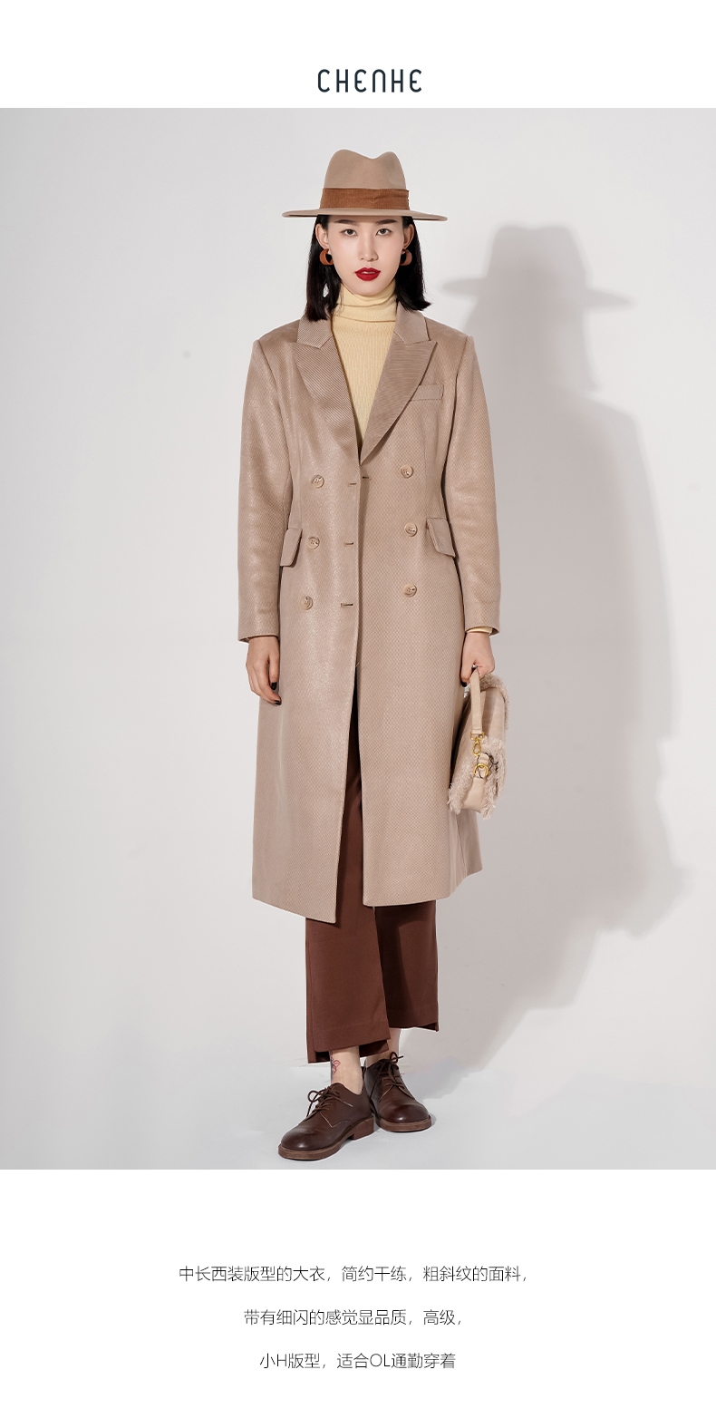 臣禾经典双排扣斜纹立体西装版大衣K214011577