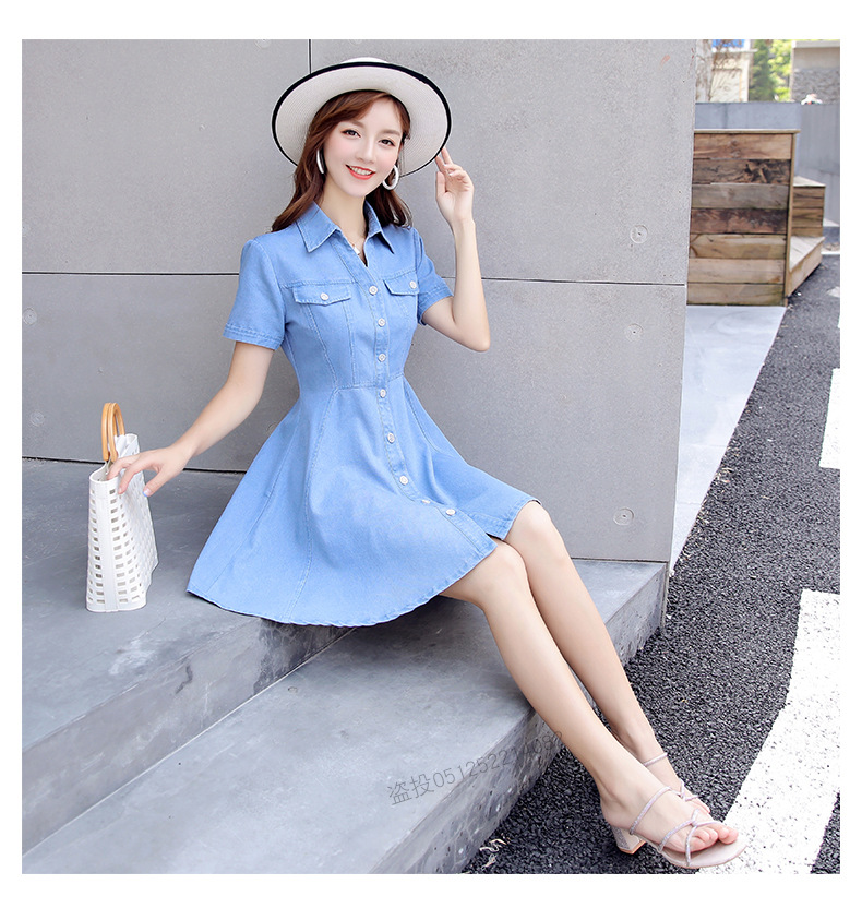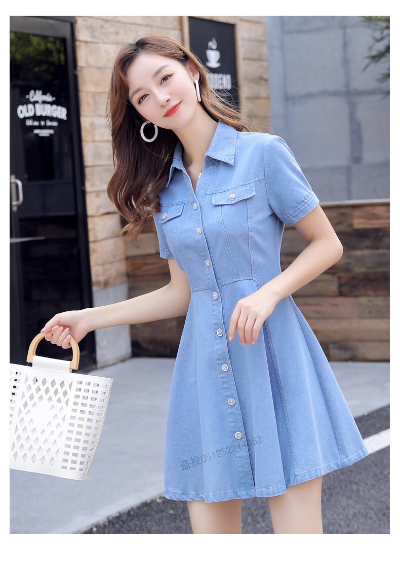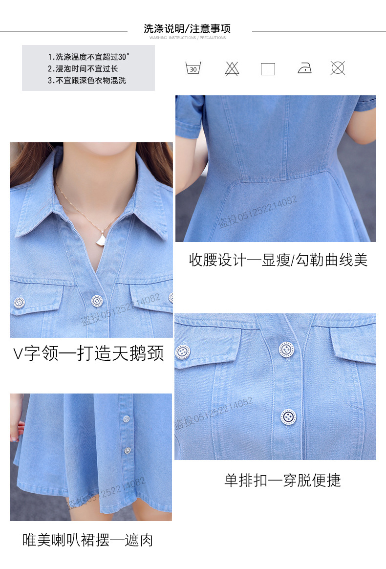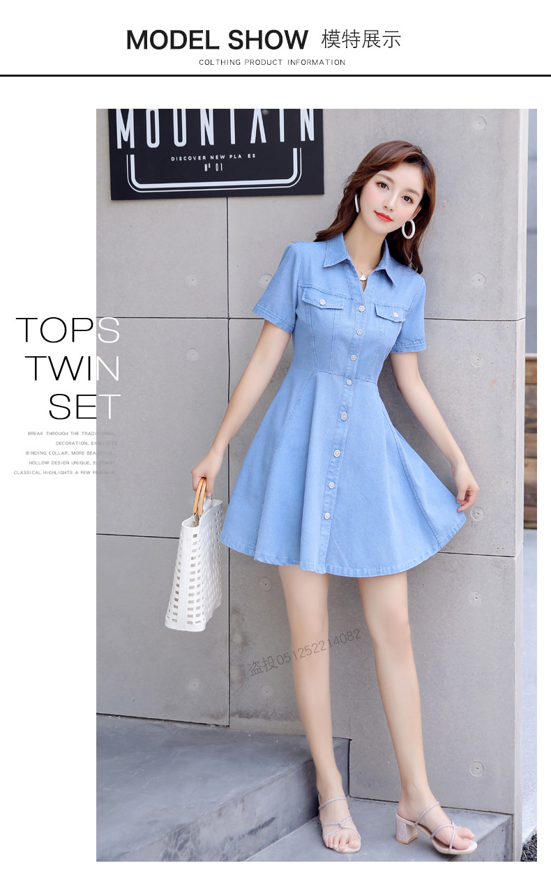牛仔裙V字领连衣裙收腰显瘦时尚甜美喇叭裙 ZMLM1920
