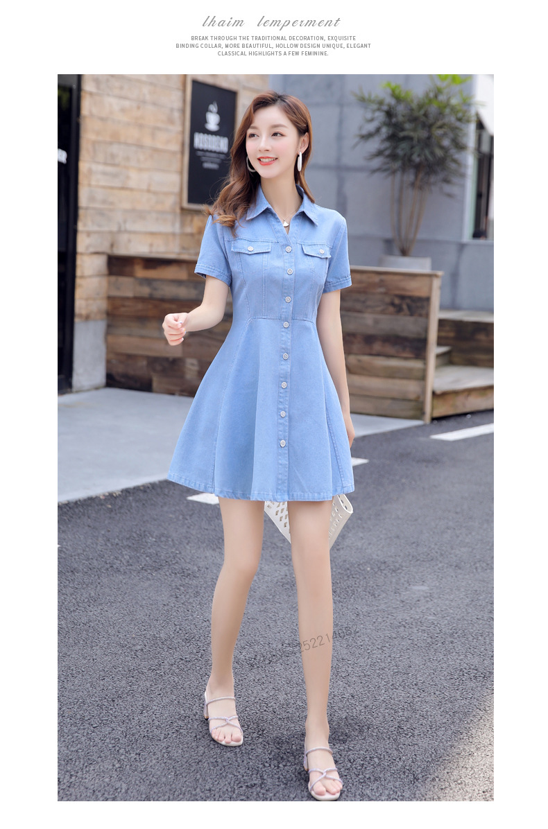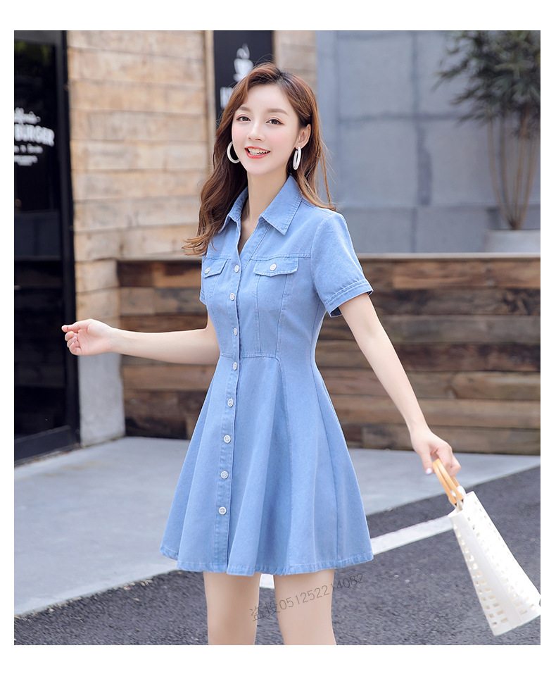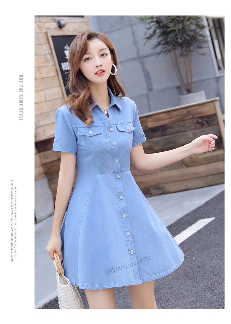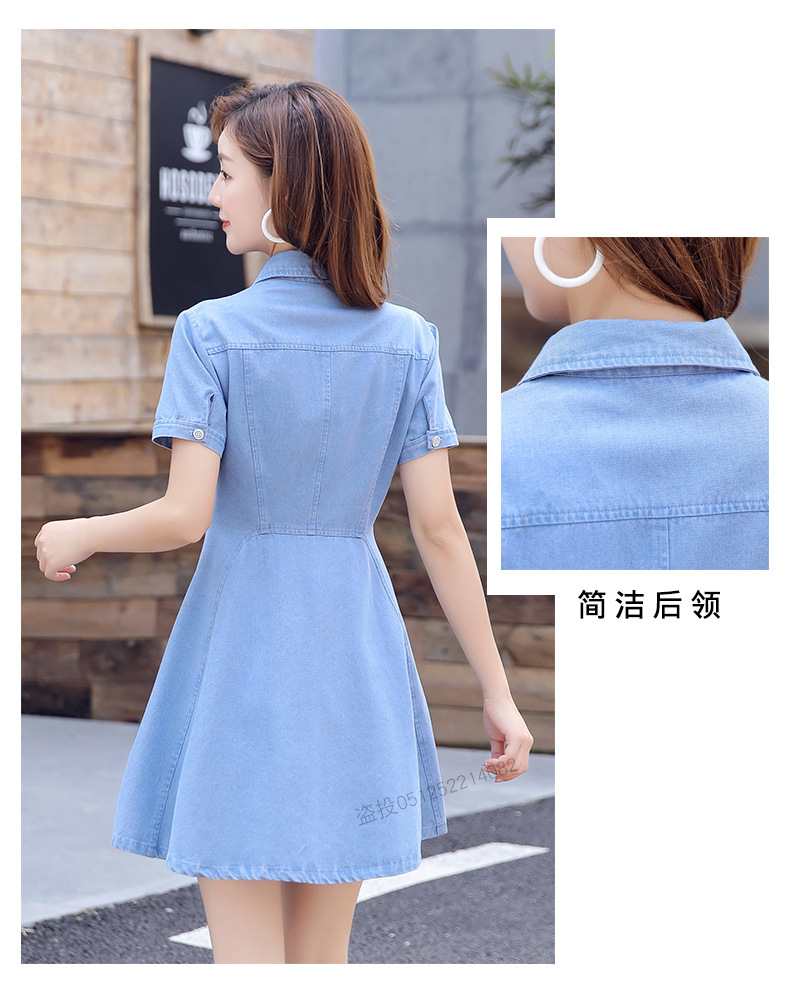 牛仔裙V字领连衣裙收腰显瘦时尚甜美喇叭裙 ZMLM1920