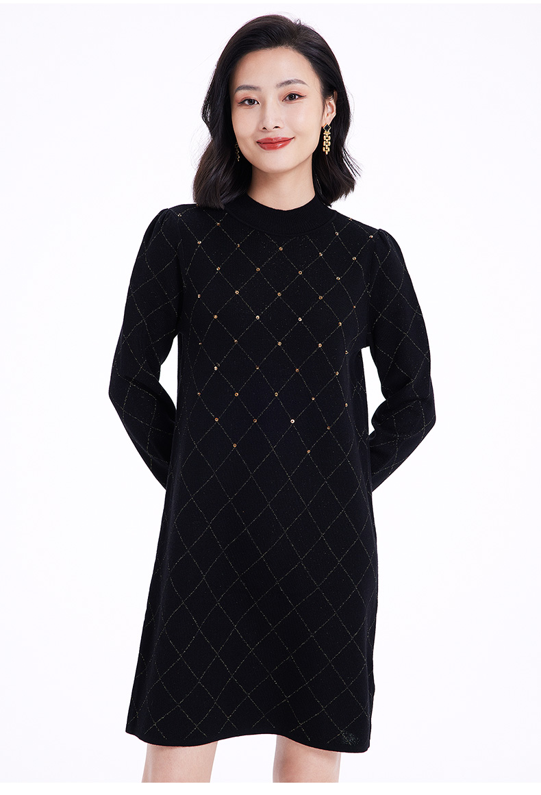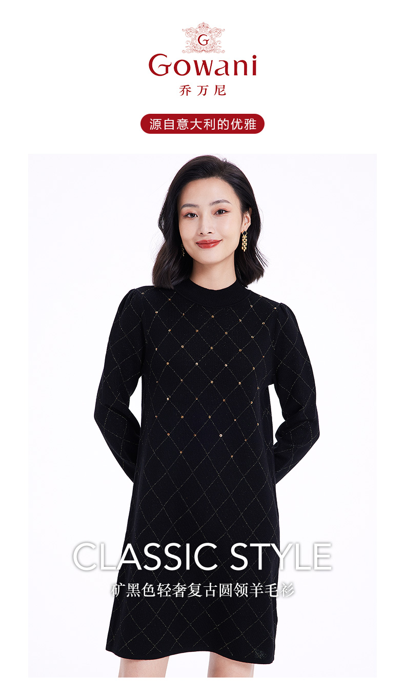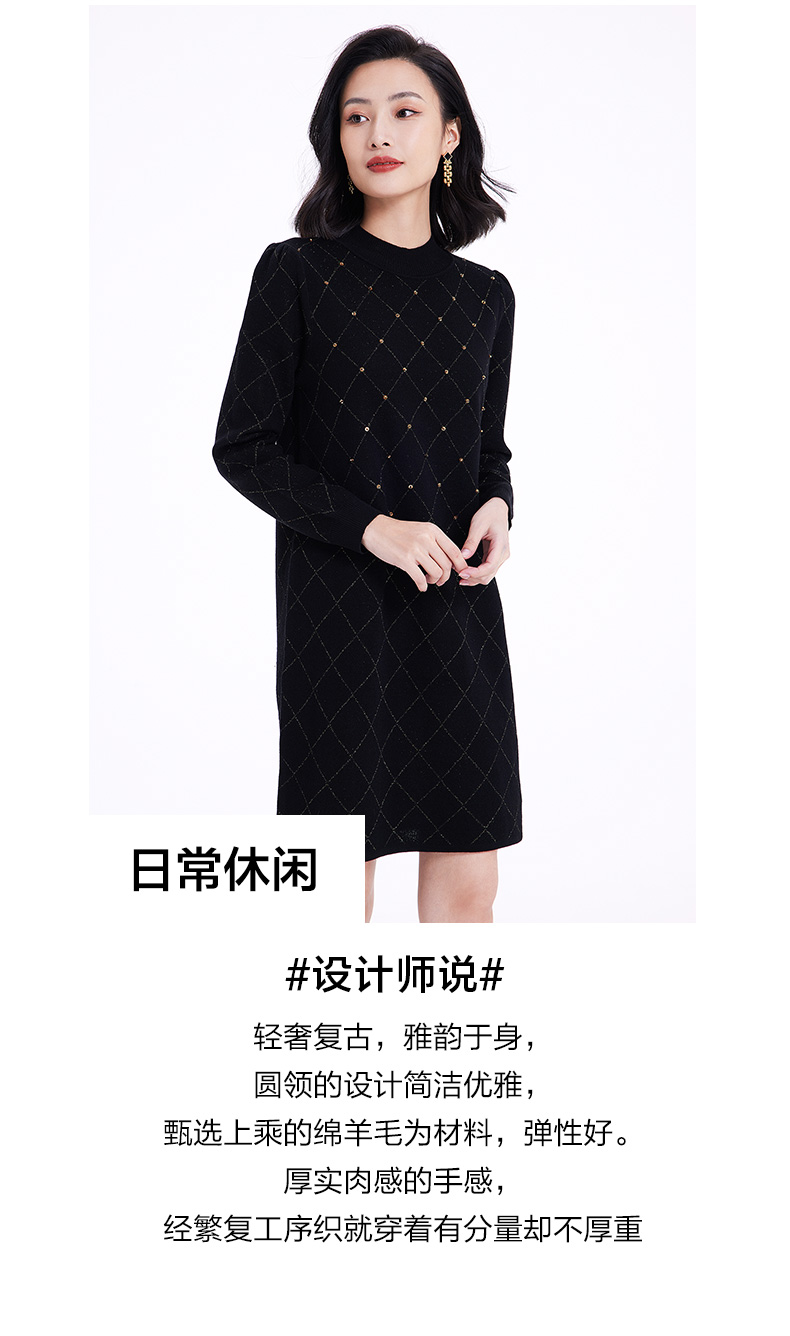 乔万尼秋冬羊毛连衣裙新款黑色针织长袖法式高级感小个子打底EF4M247