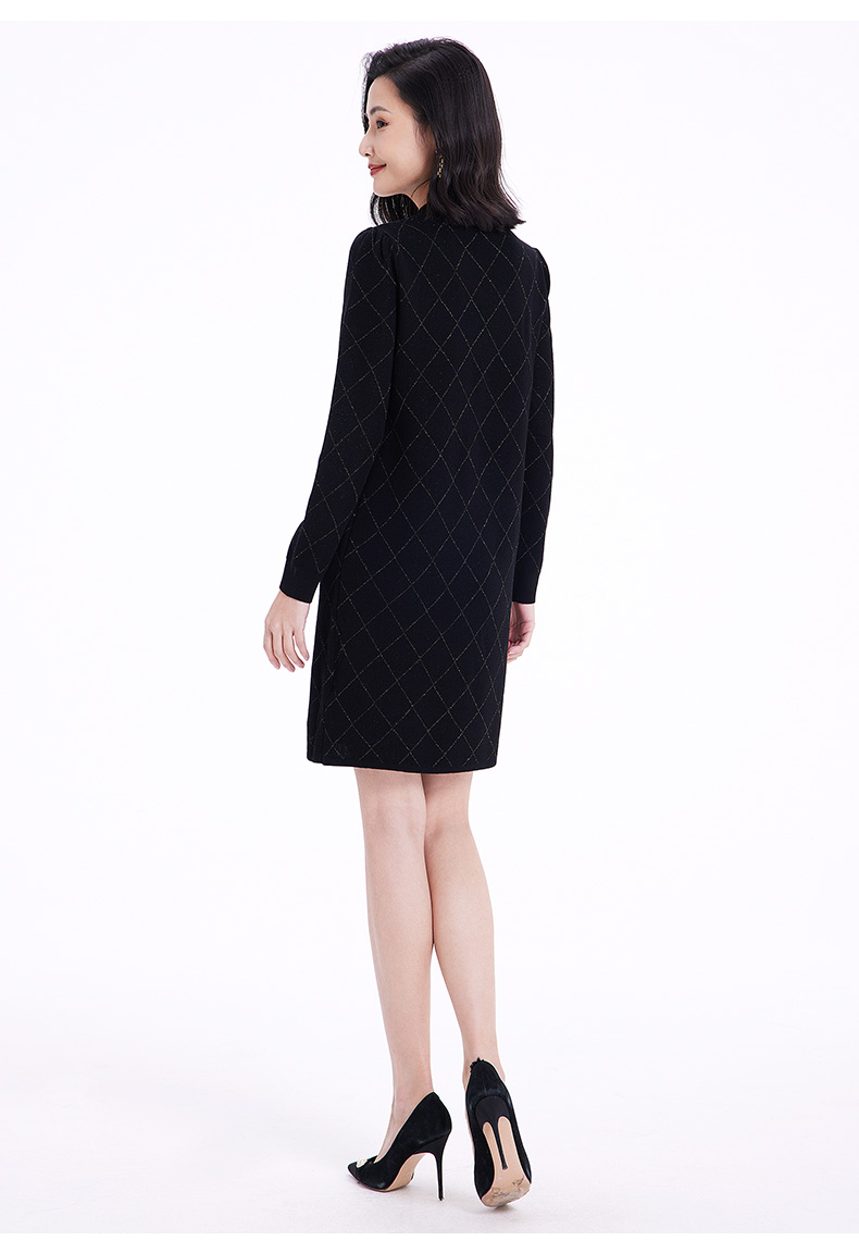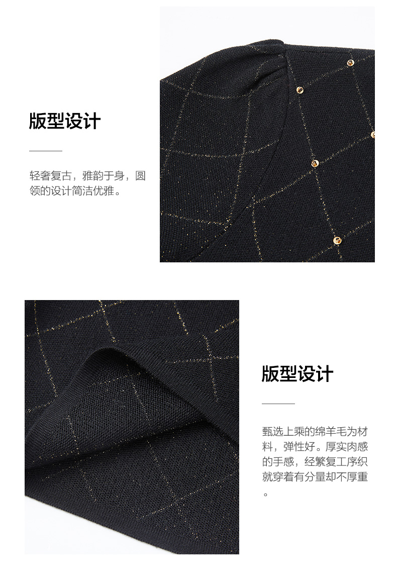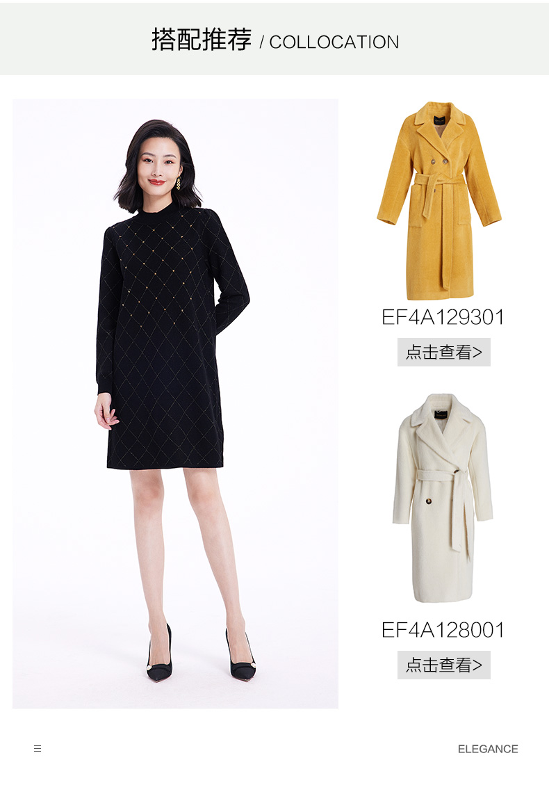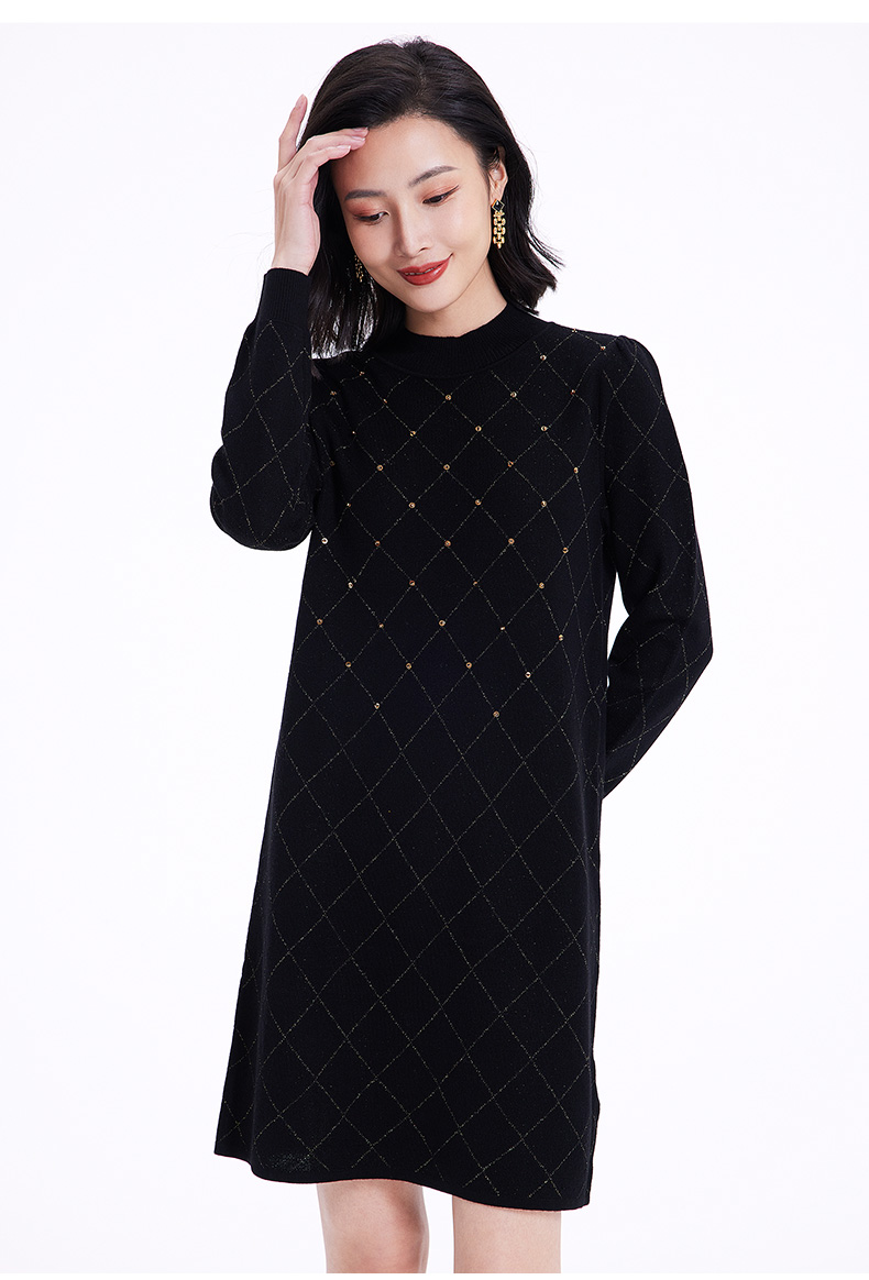 乔万尼秋冬羊毛连衣裙新款黑色针织长袖法式高级感小个子打底EF4M247