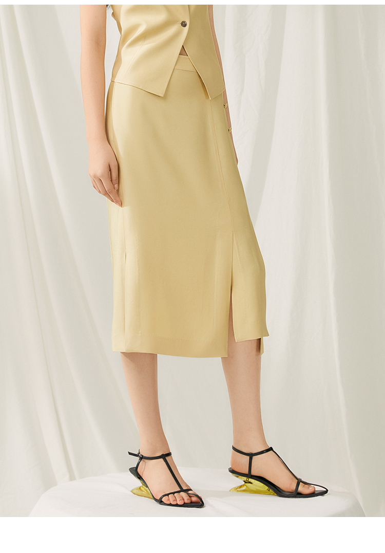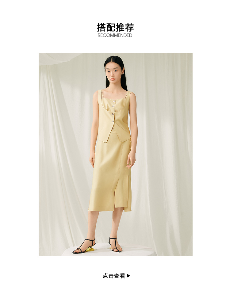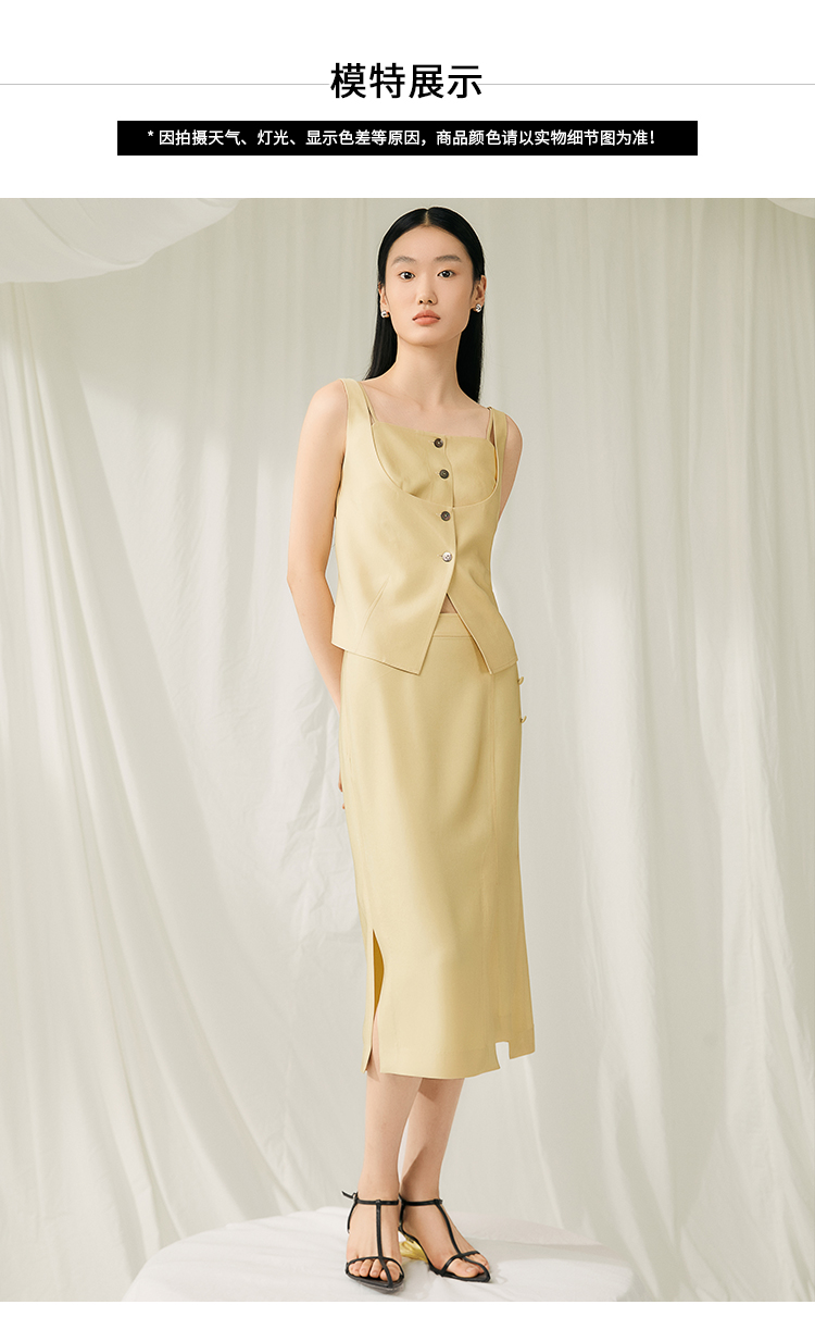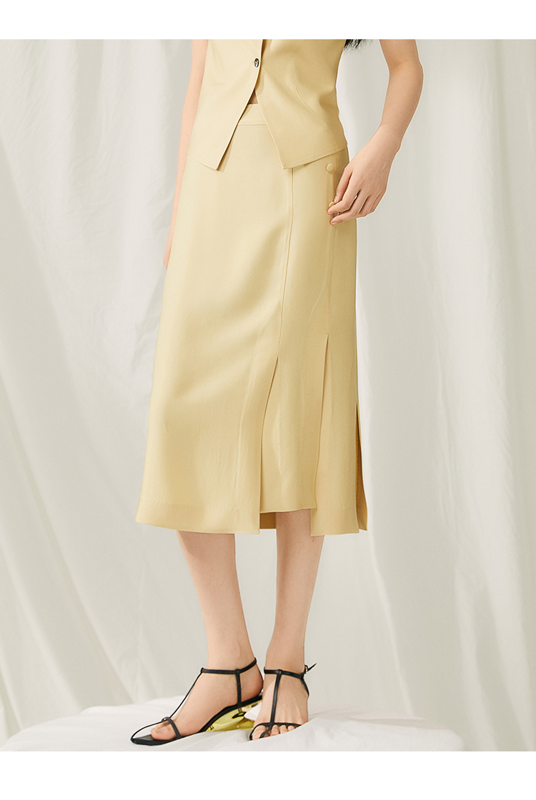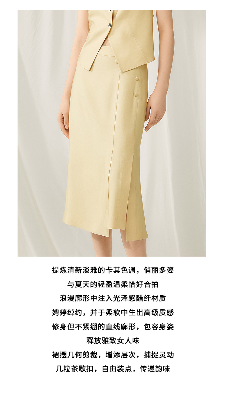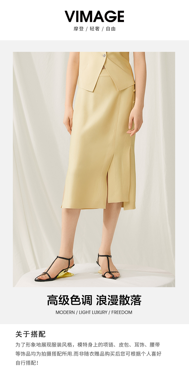VIMAGE纬漫纪夏季新款高腰不规则下摆优雅半身裙V1906519