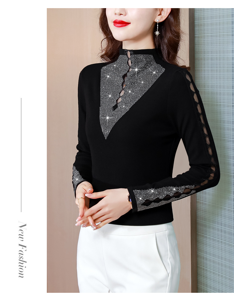 2022春季新款韩版修身长袖烫钻打底衫女 CXHL8235