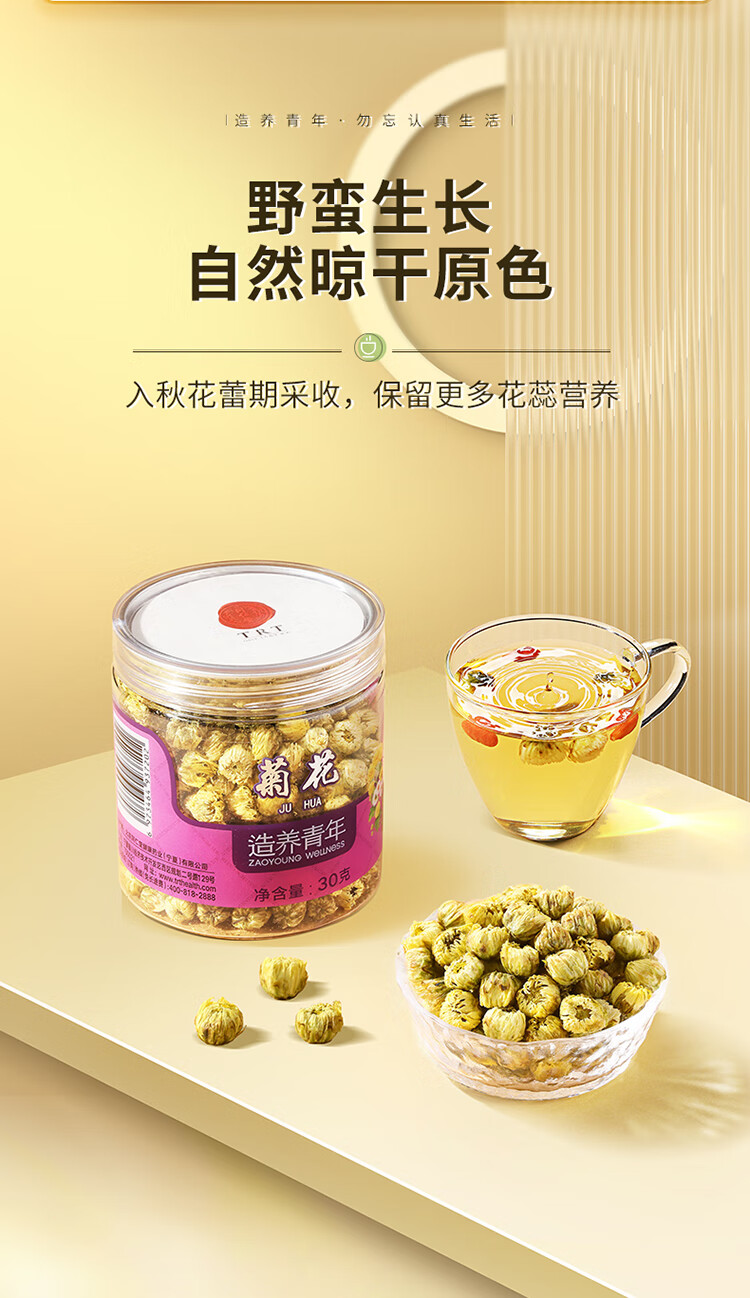 【99元任选3件】【正宗同仁堂品牌】北京同仁堂 造养青年 胎菊30g菊花 杭白菊蕾 可搭配枸杞决明子胖大海金银花玫瑰养生花草茶SY