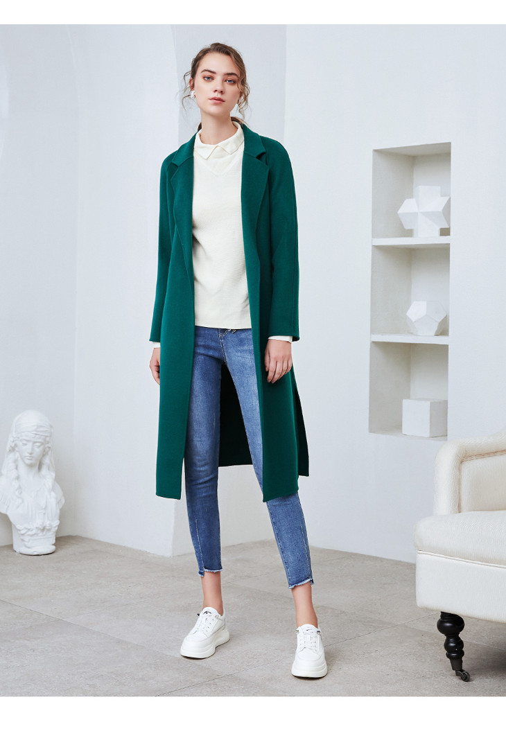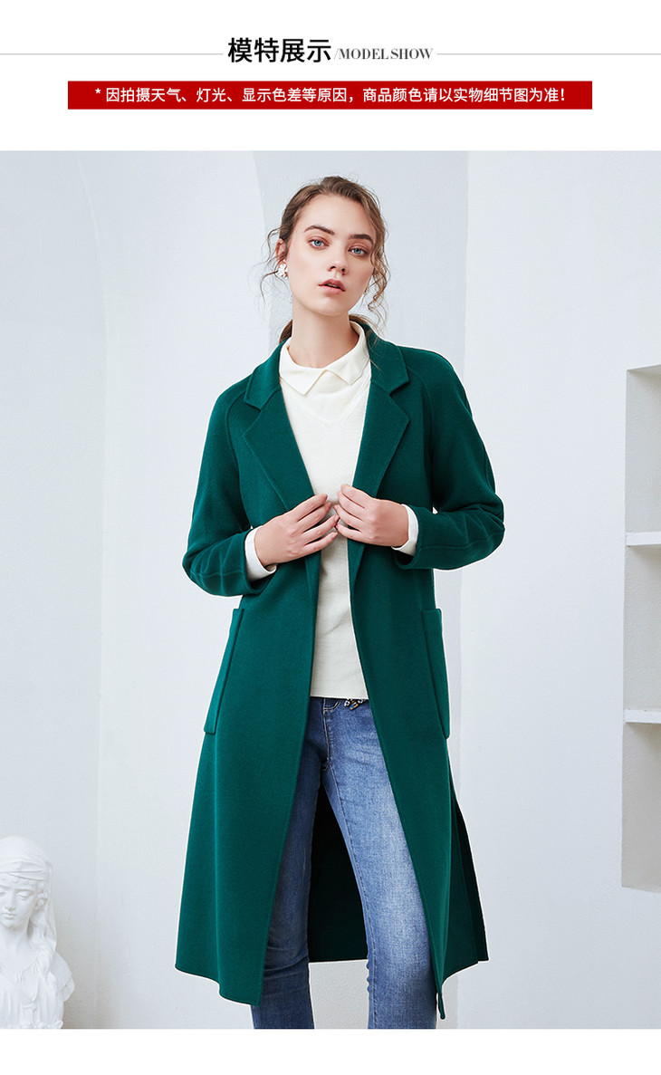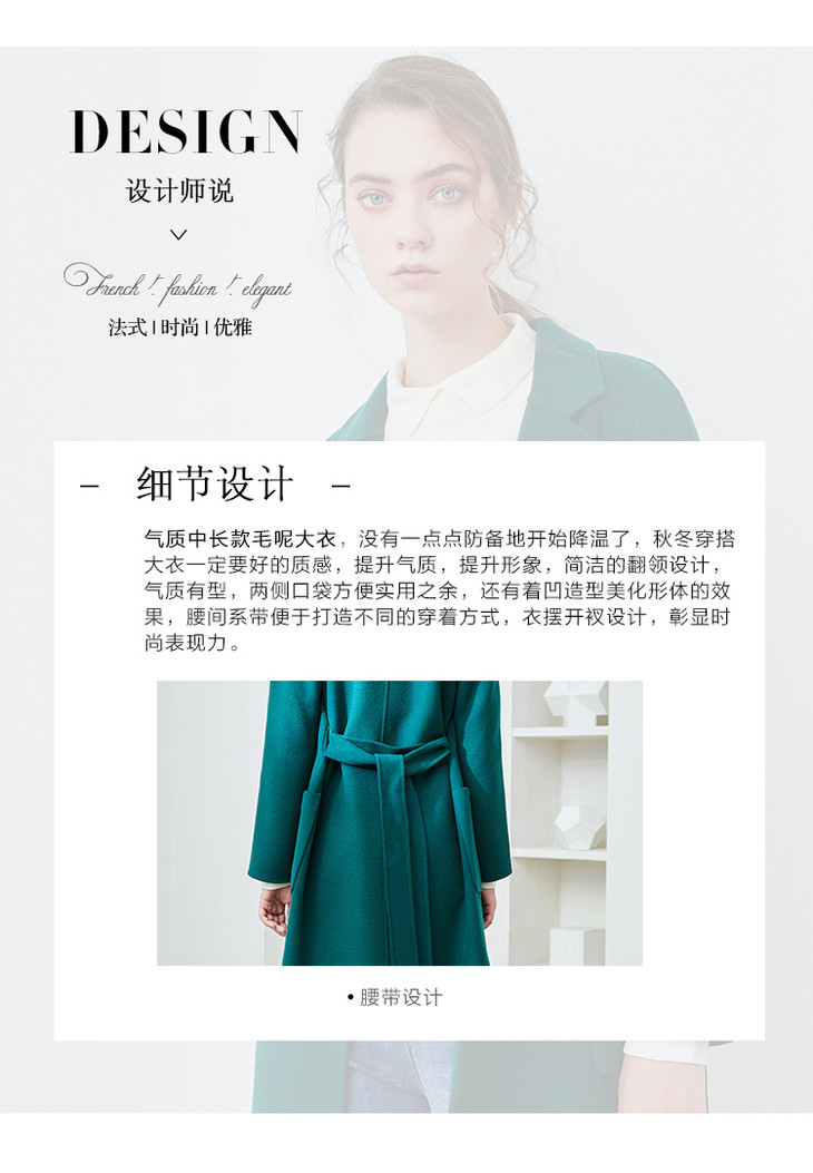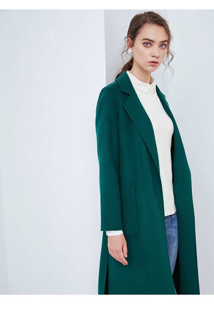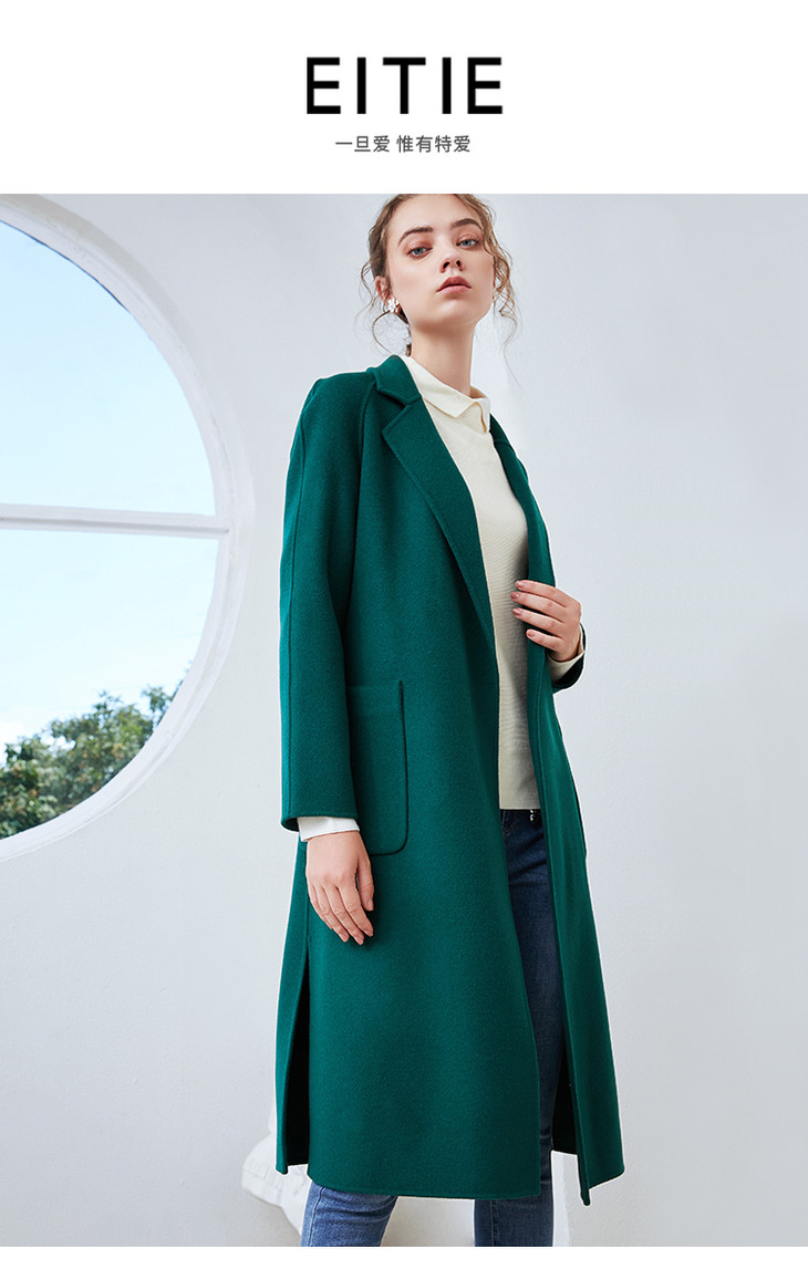 EITIE爱特爱秋季新款时尚通勤百搭显瘦直筒翻领双面呢大衣女D2014509