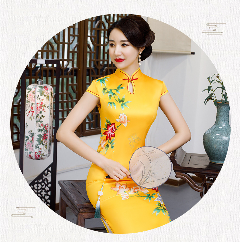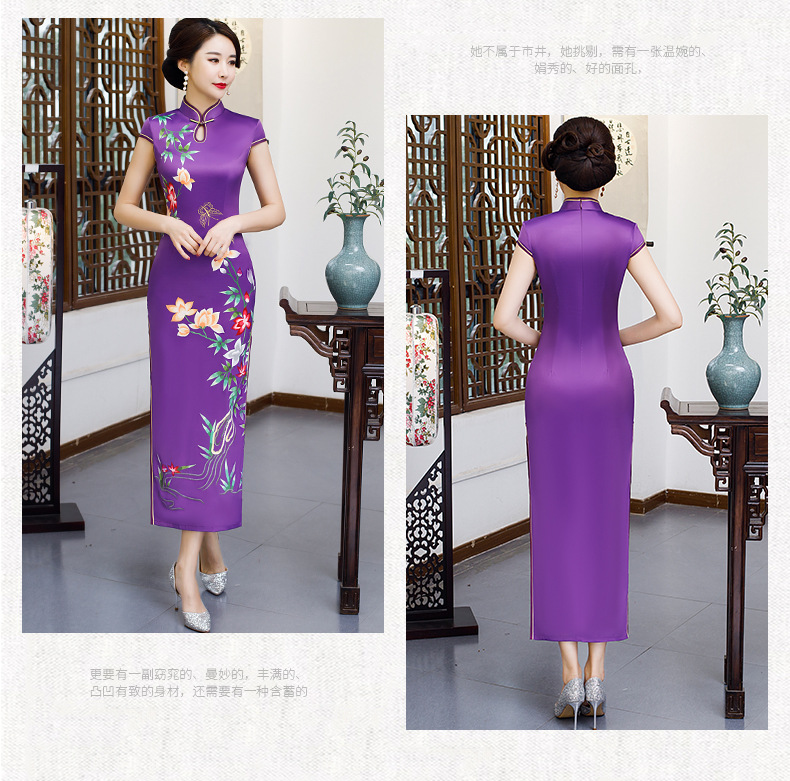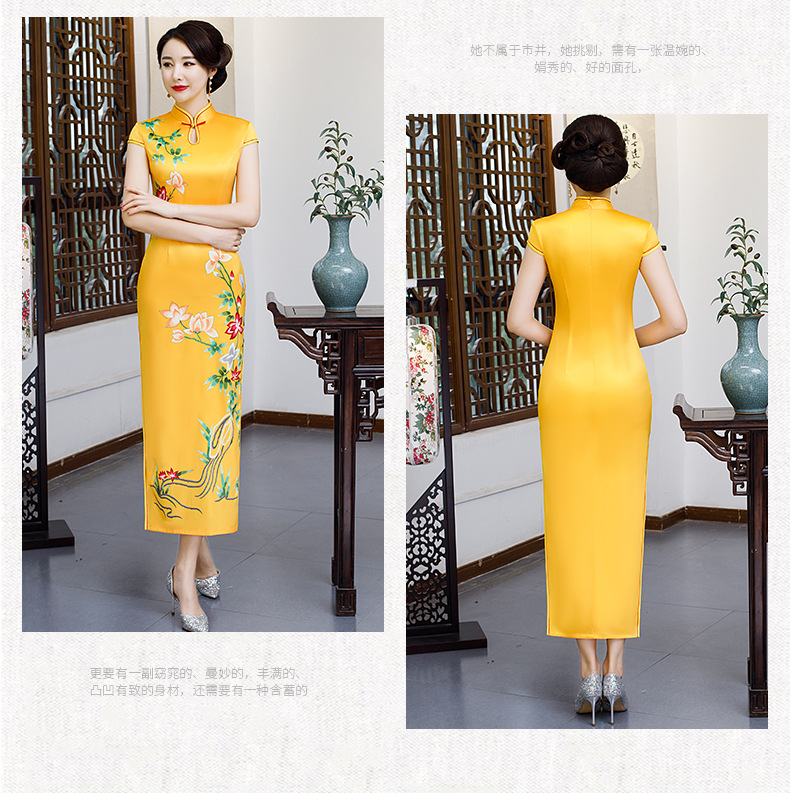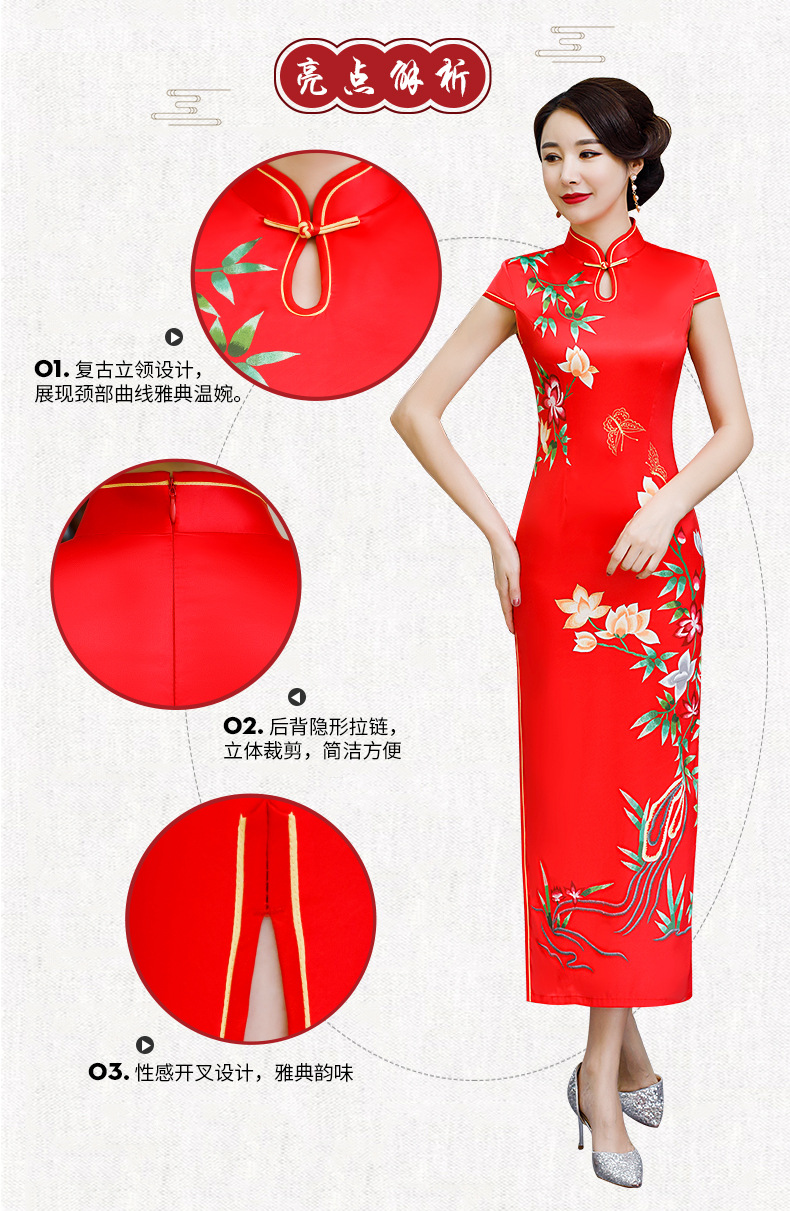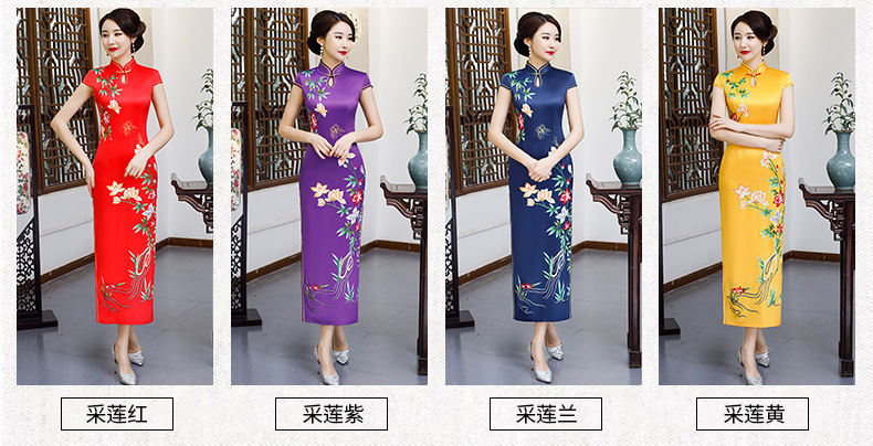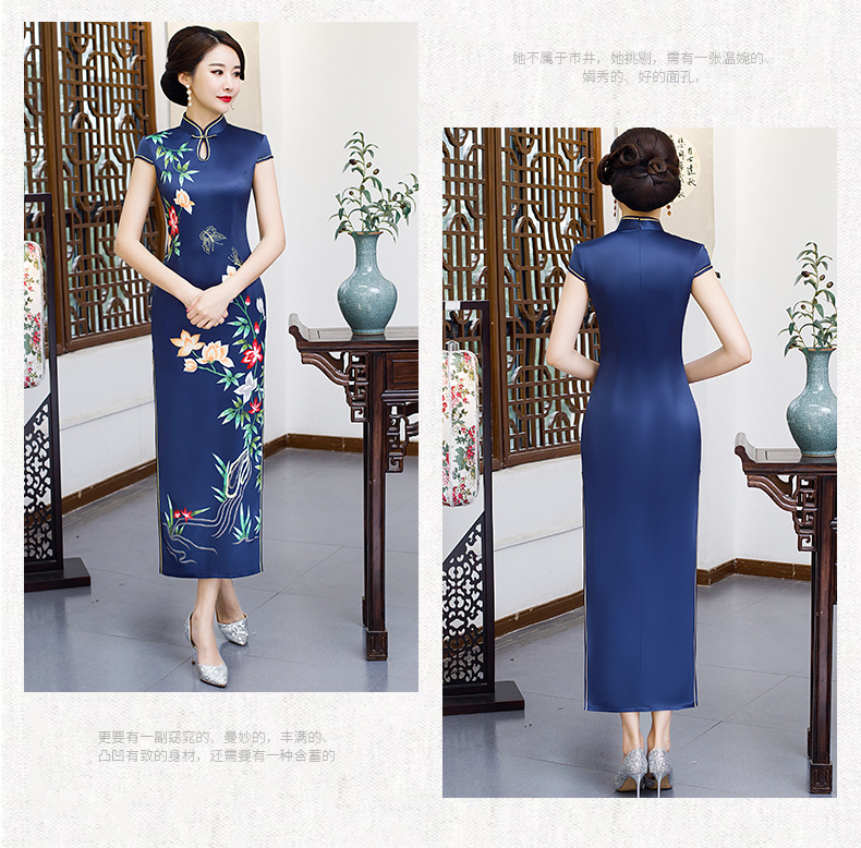 ZA-采莲新款丝绸大码长款中国风旗袍连衣裙