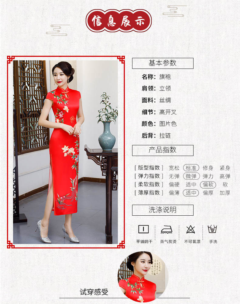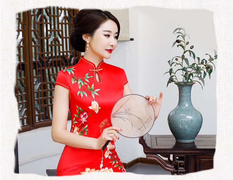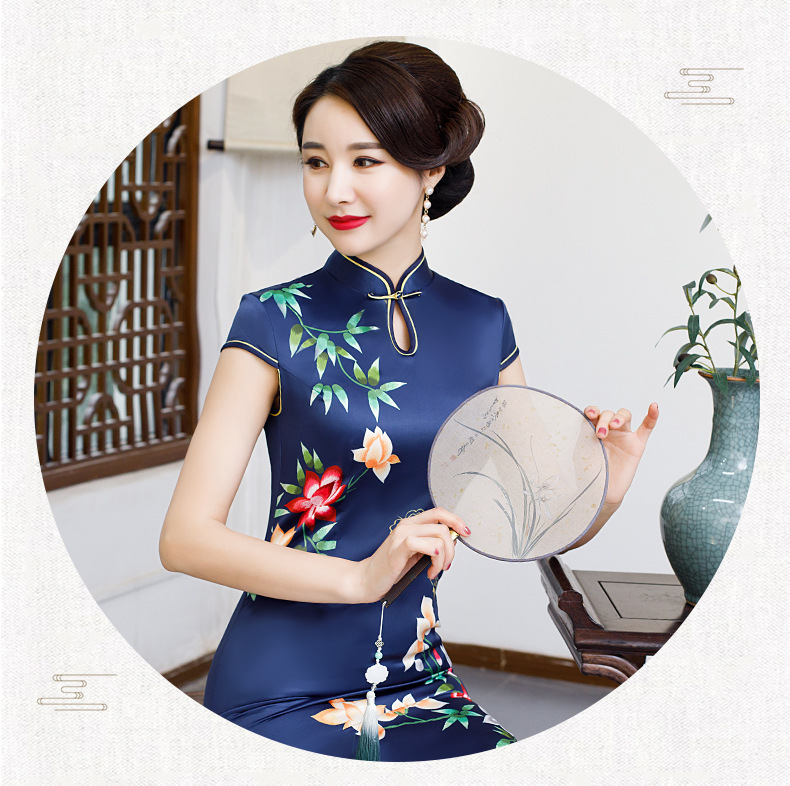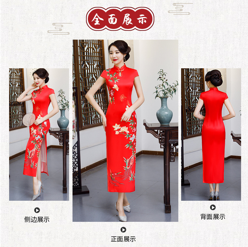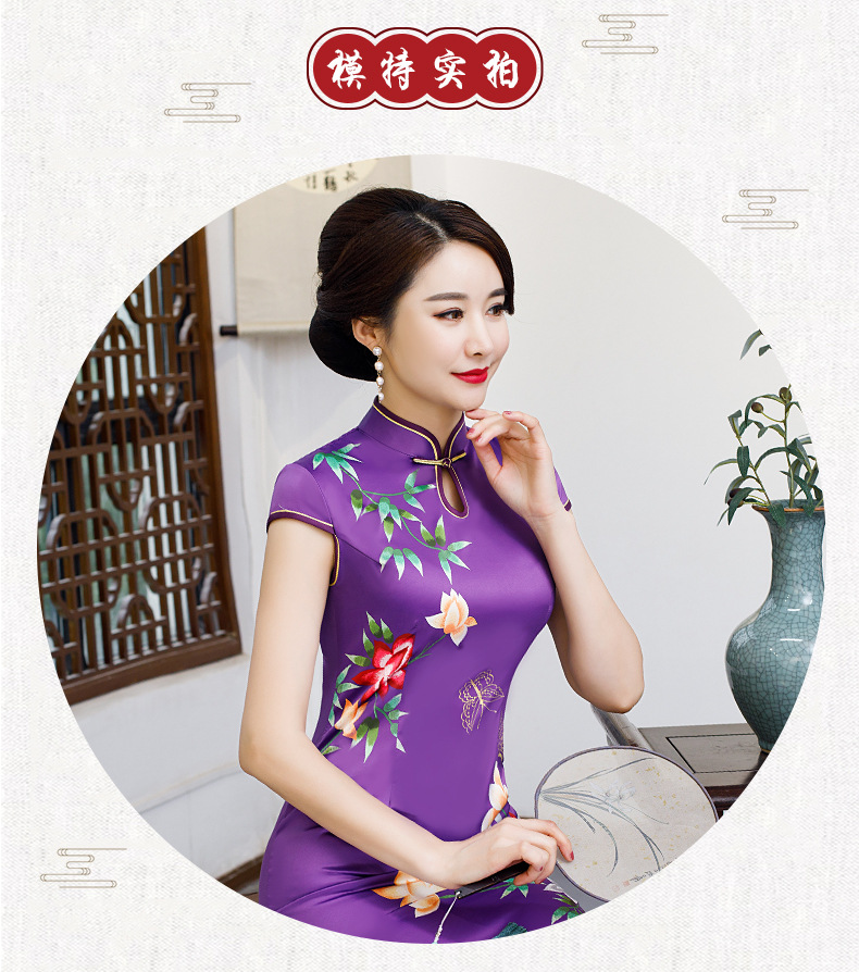 ZA-采莲新款丝绸大码长款中国风旗袍连衣裙