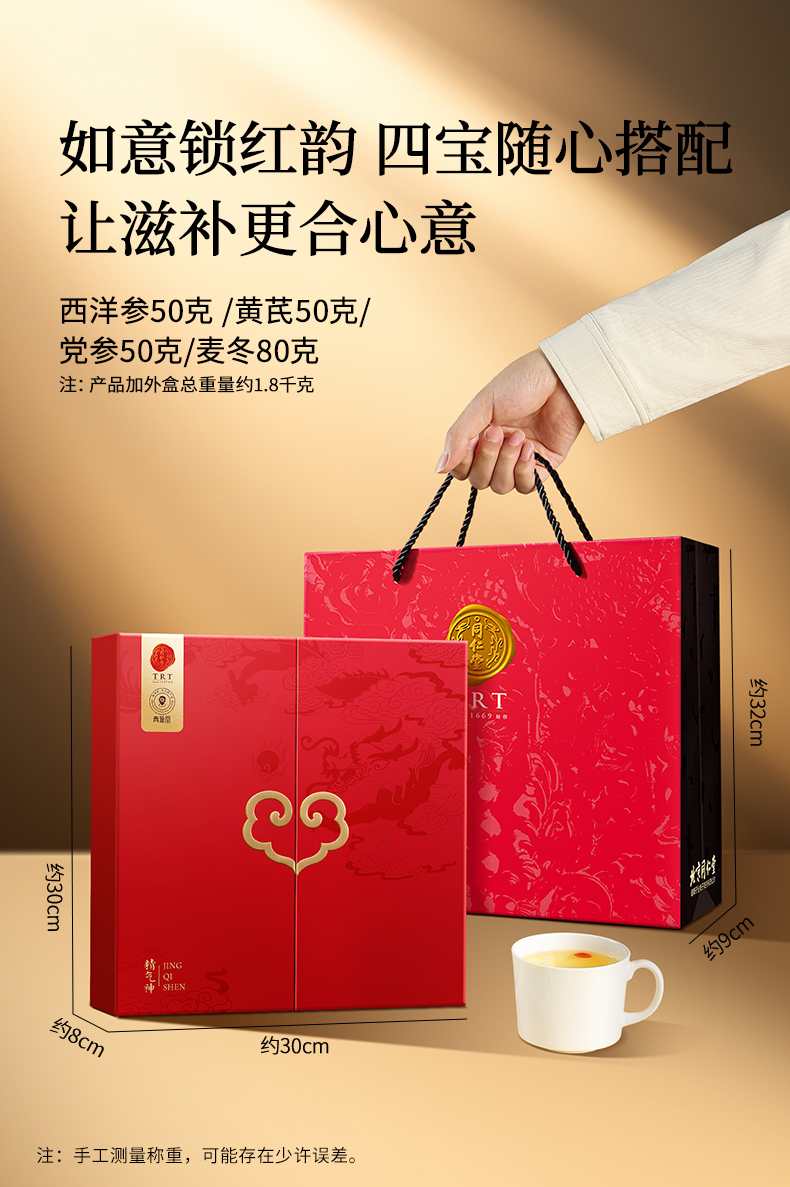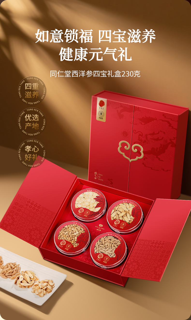 【正宗同仁堂品牌】北京同仁堂 青源堂 西洋参四宝礼盒-230g(西洋参片50克+黄芪50克+党参50克+麦冬80克) SY