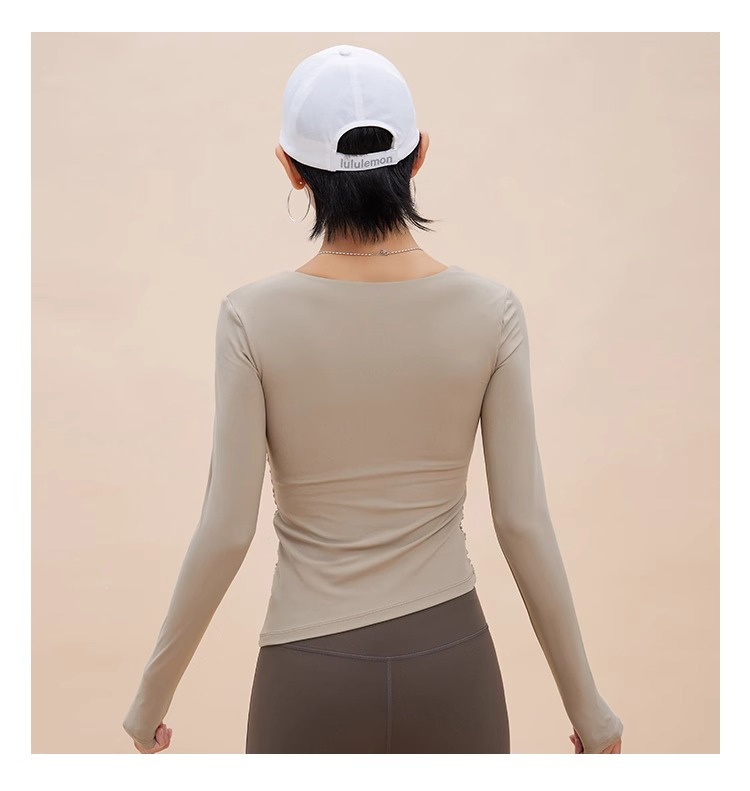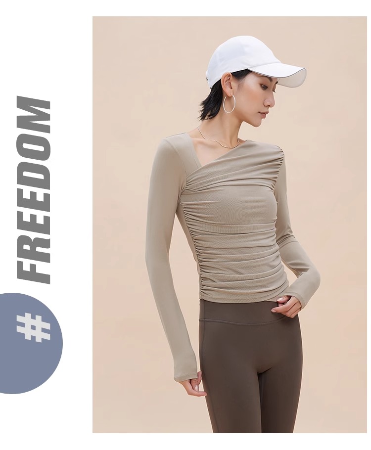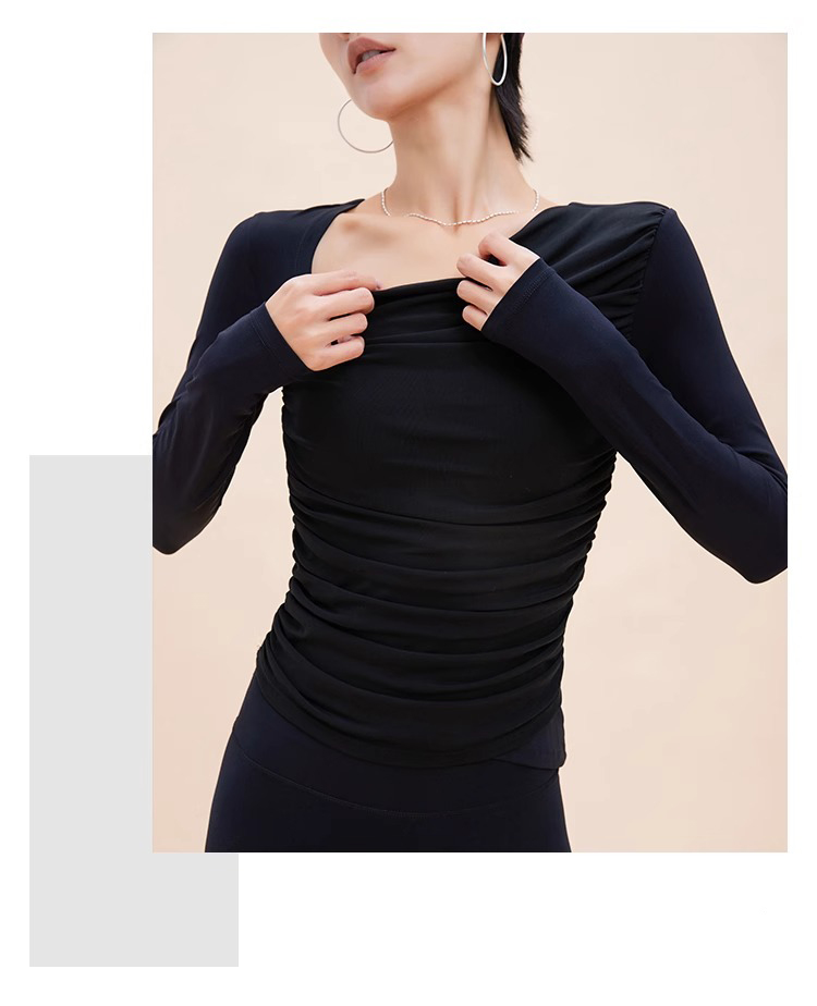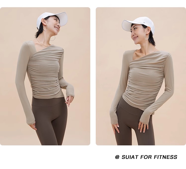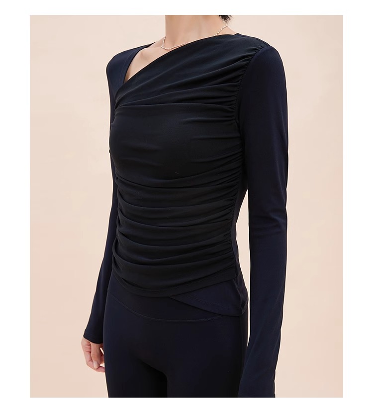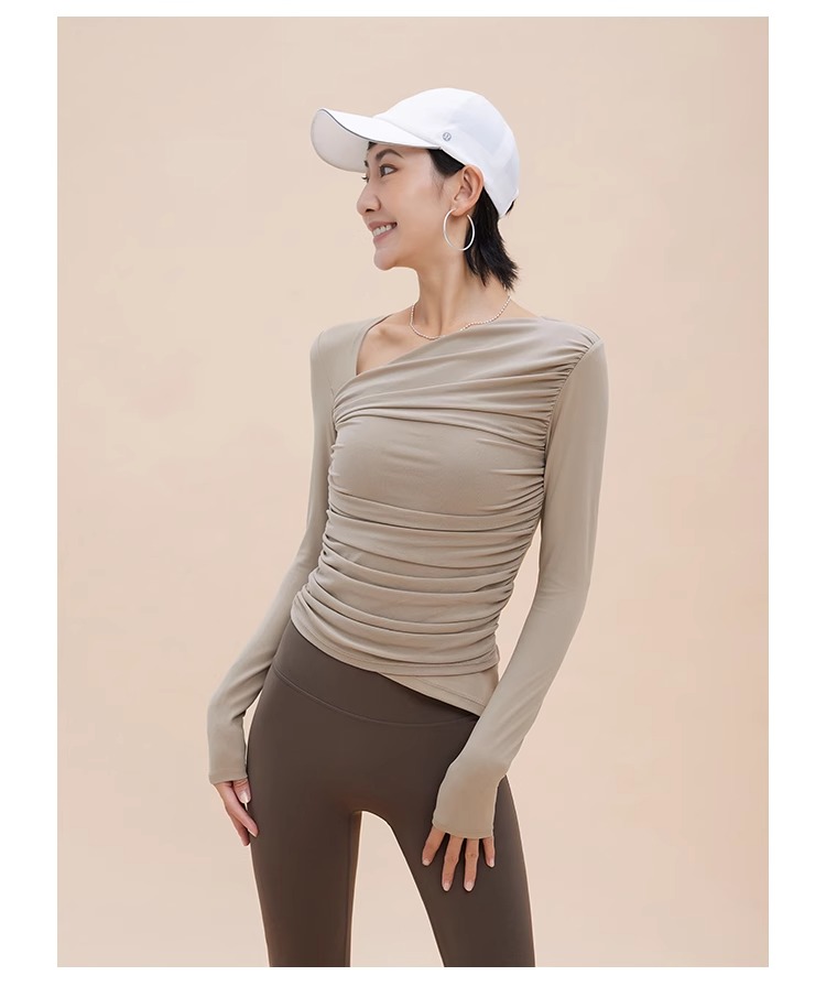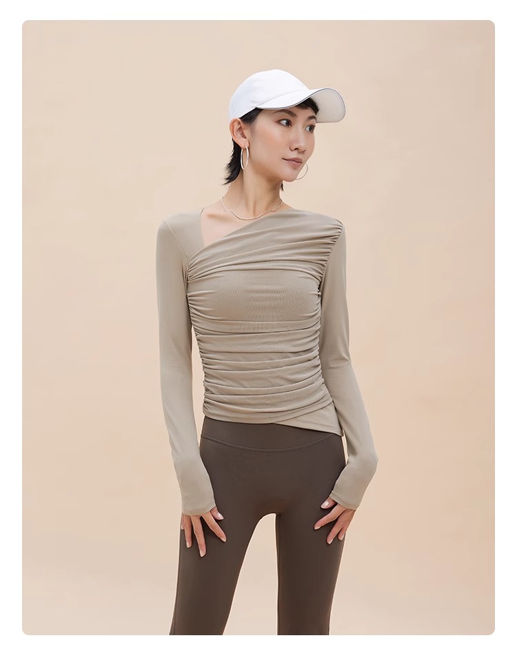 【限时秒】YOGACODE【火树银花系列】2024 欧美斜领瑜伽长袖T恤女网纱拼接带胸垫运动上衣DWTS124017