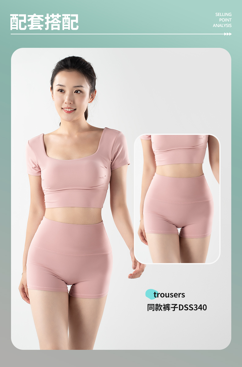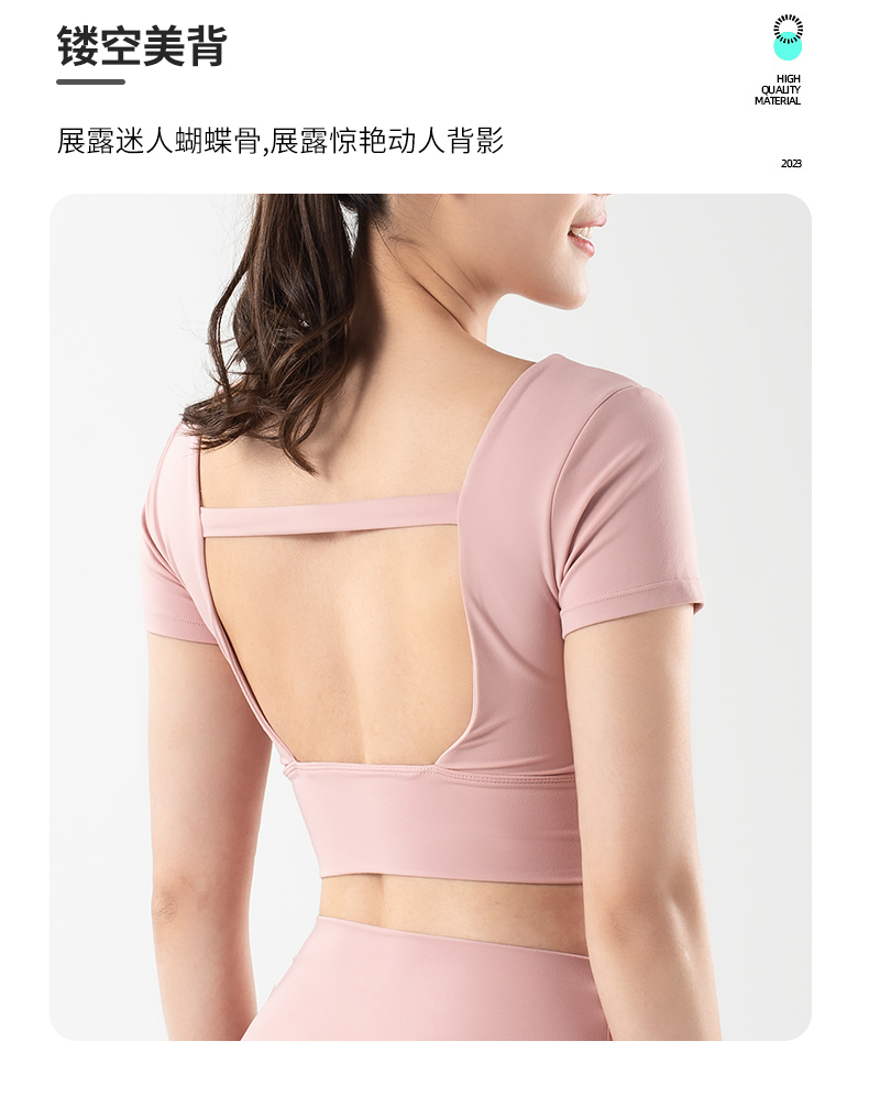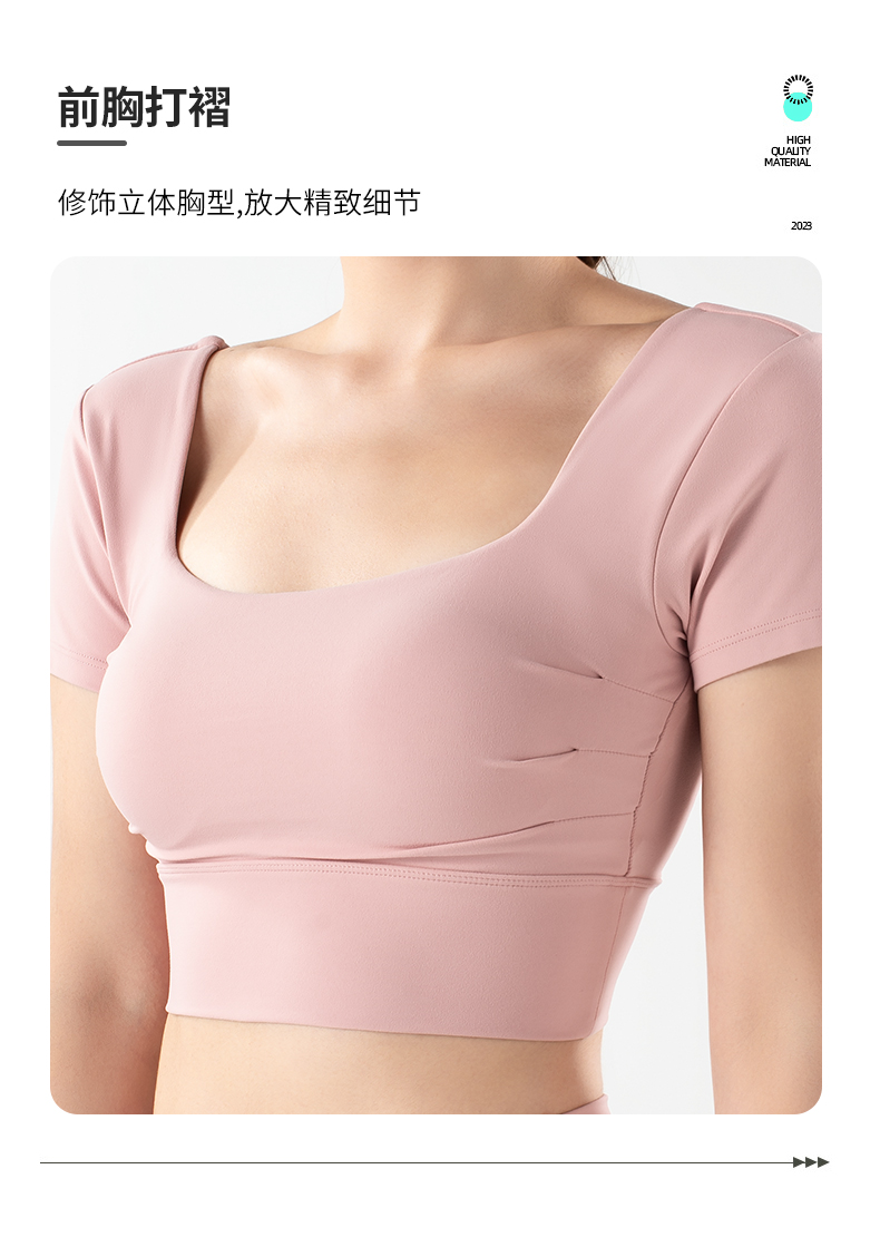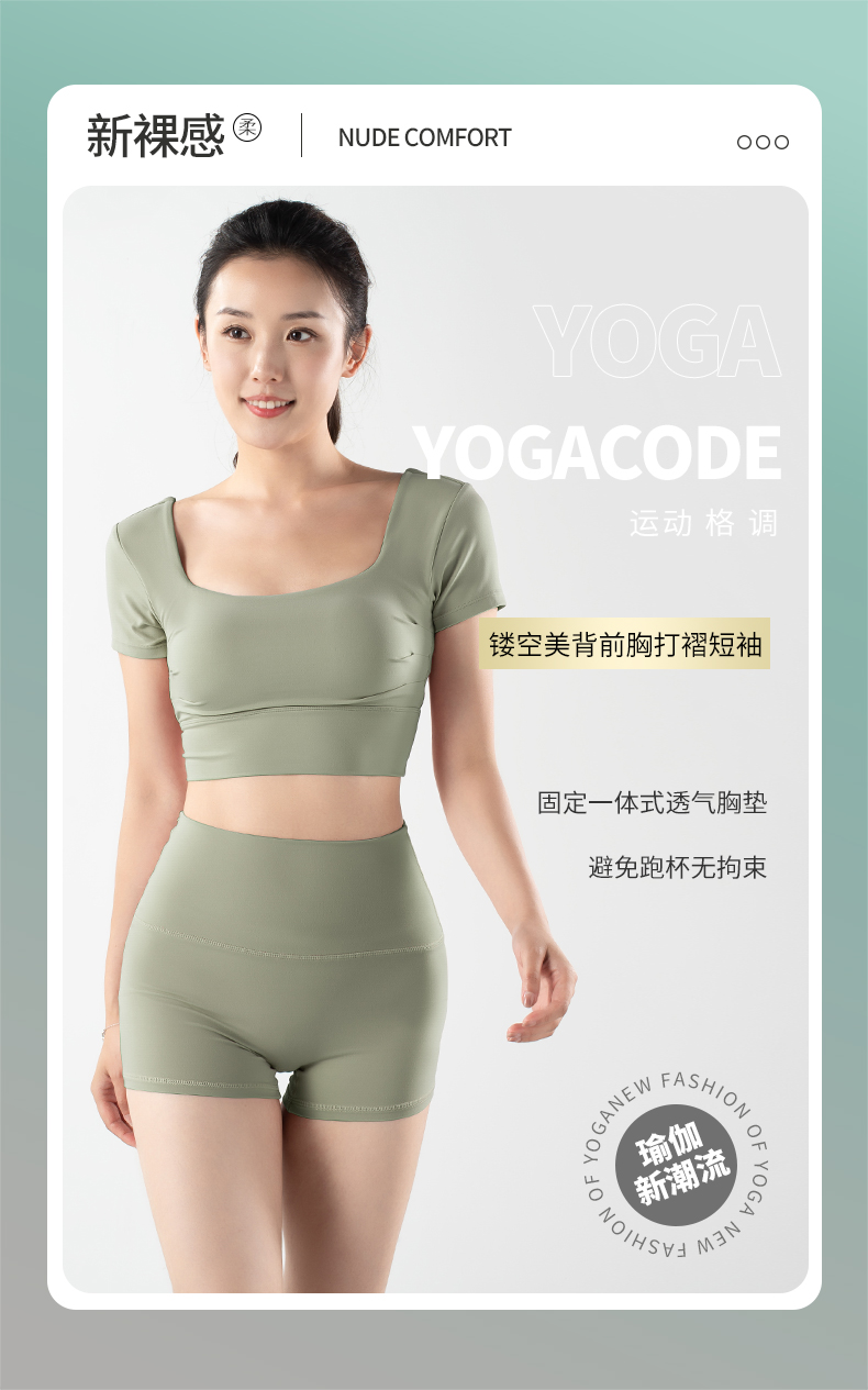 【限时秒】YOGACODE火树银花/镂空美背前胸打褶可拆卸胸垫瑜伽短袖YCDS498