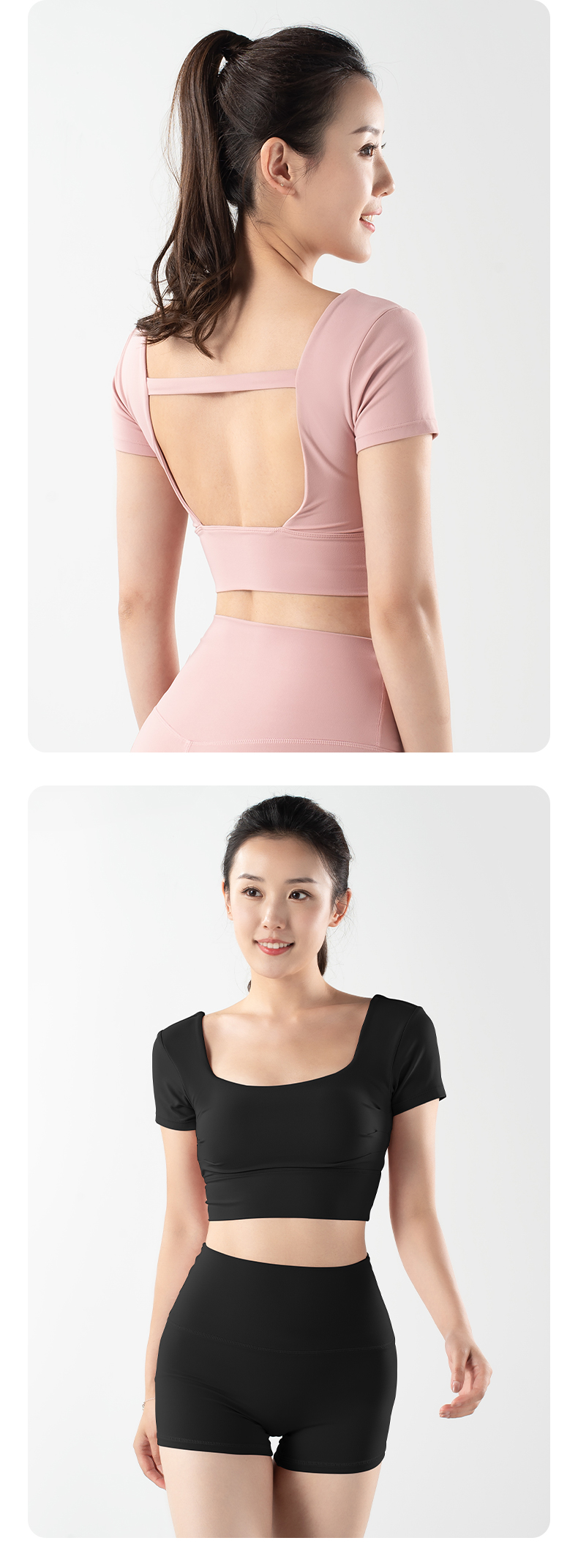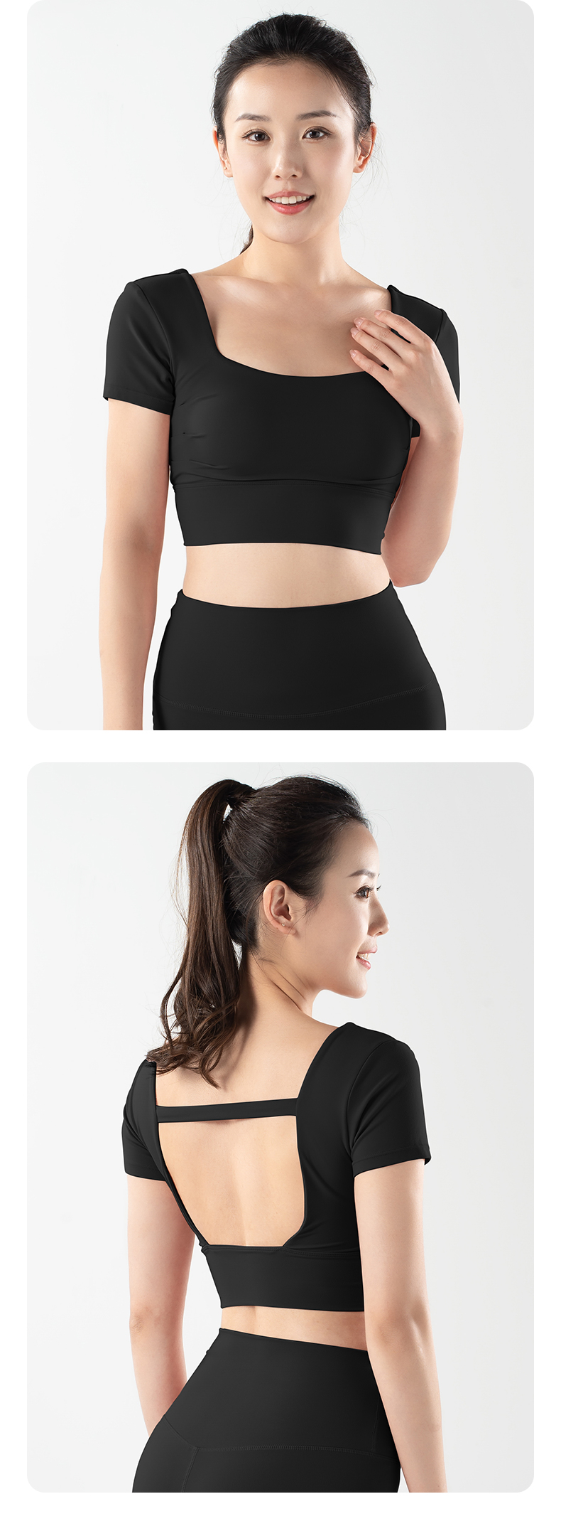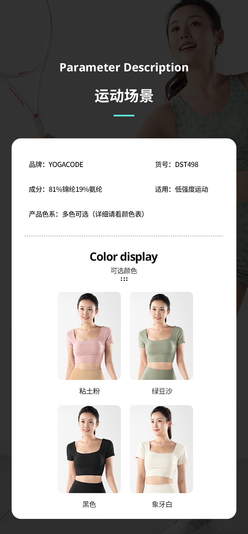 【限时秒】YOGACODE火树银花/镂空美背前胸打褶可拆卸胸垫瑜伽短袖YCDS498