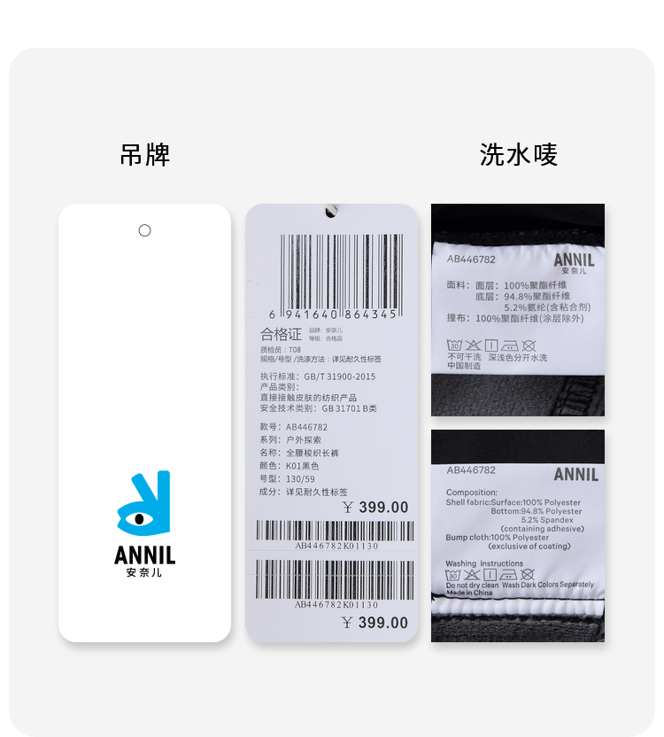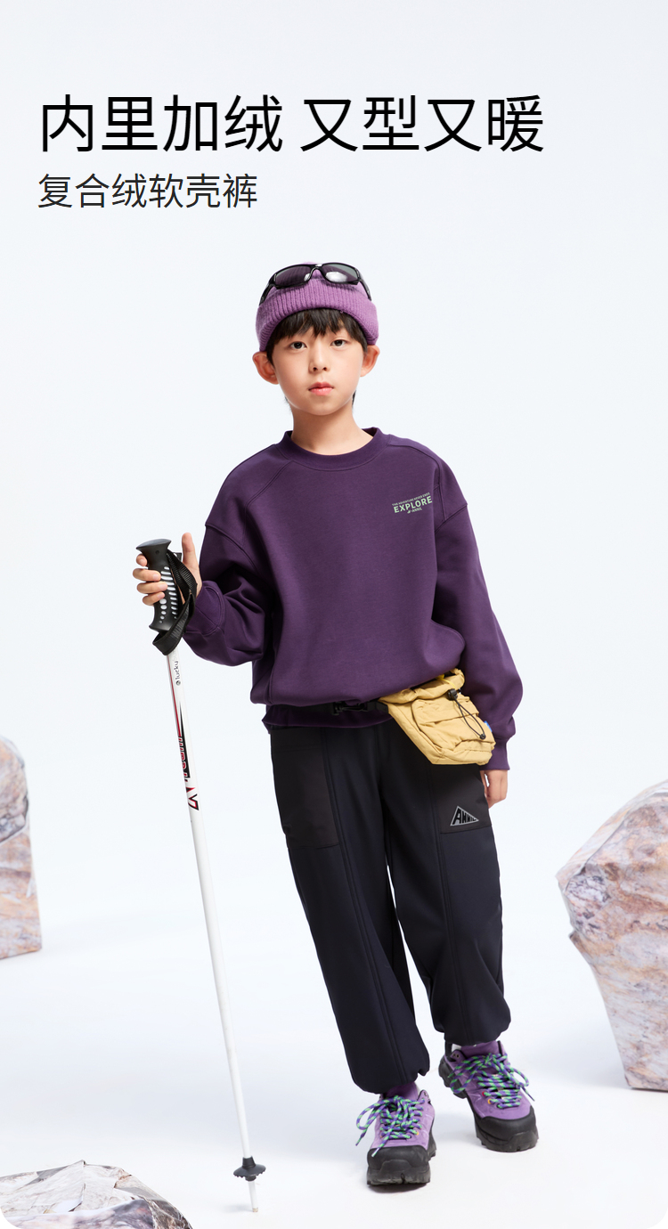 男童复合绒软壳长裤冬季新款安奈儿童装实体店同款AB446782