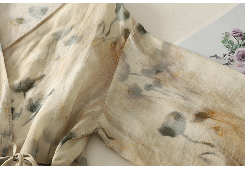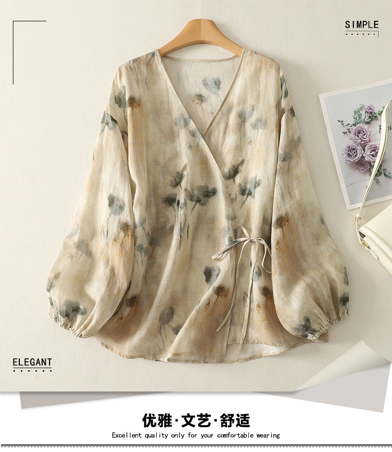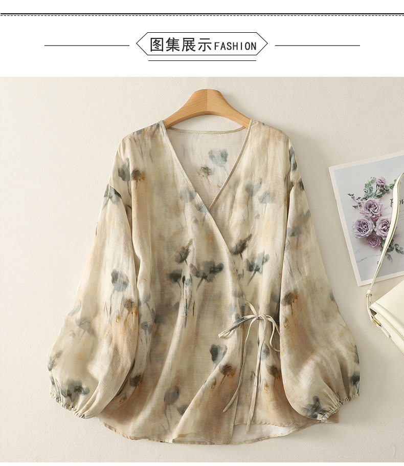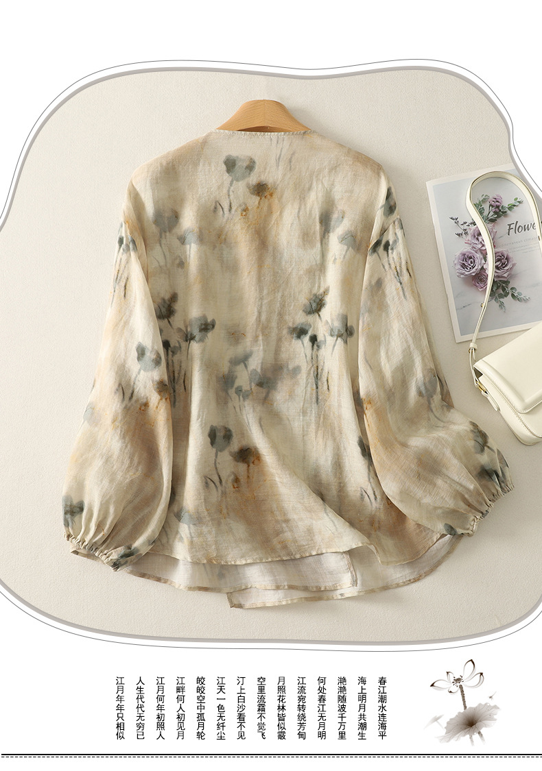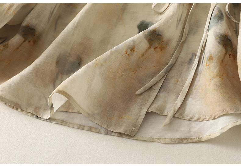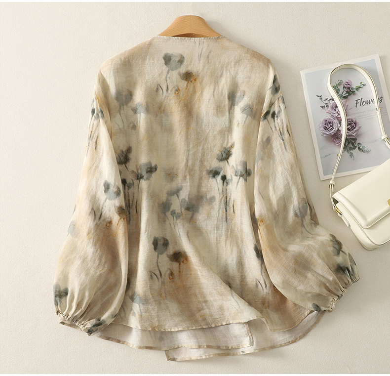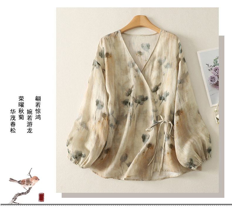 雀说棉麻冰感轻盈艺术花色斜襟气质开衫精致百搭上衣夏防晒衣AL2880