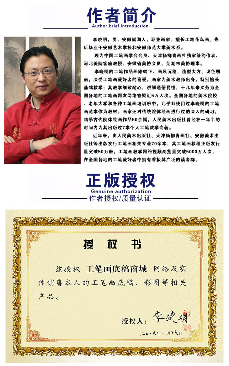 李晓明竖幅工笔花鸟白描底稿-牡丹双鸽-有步骤图及文字解析-KD25