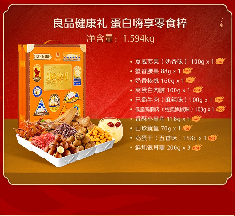 【良品铺子坚果礼盒】蛋白嗨享零食粹休闲零食干果混合装 1594g
