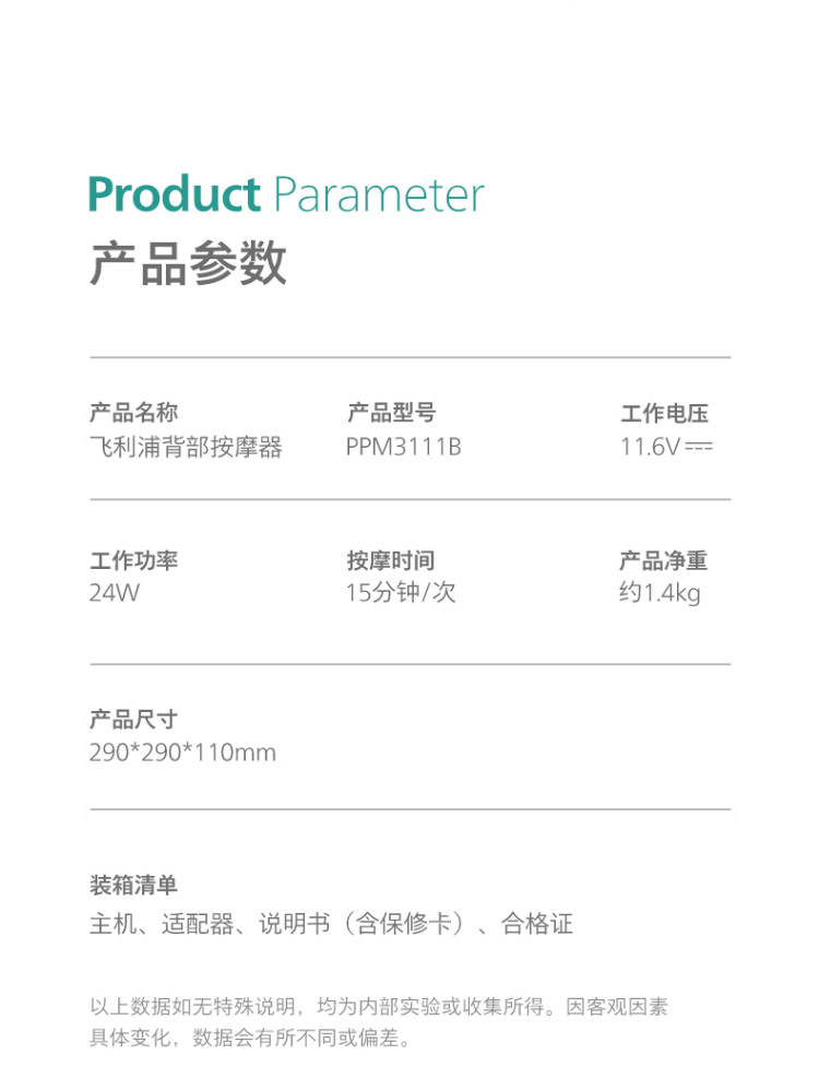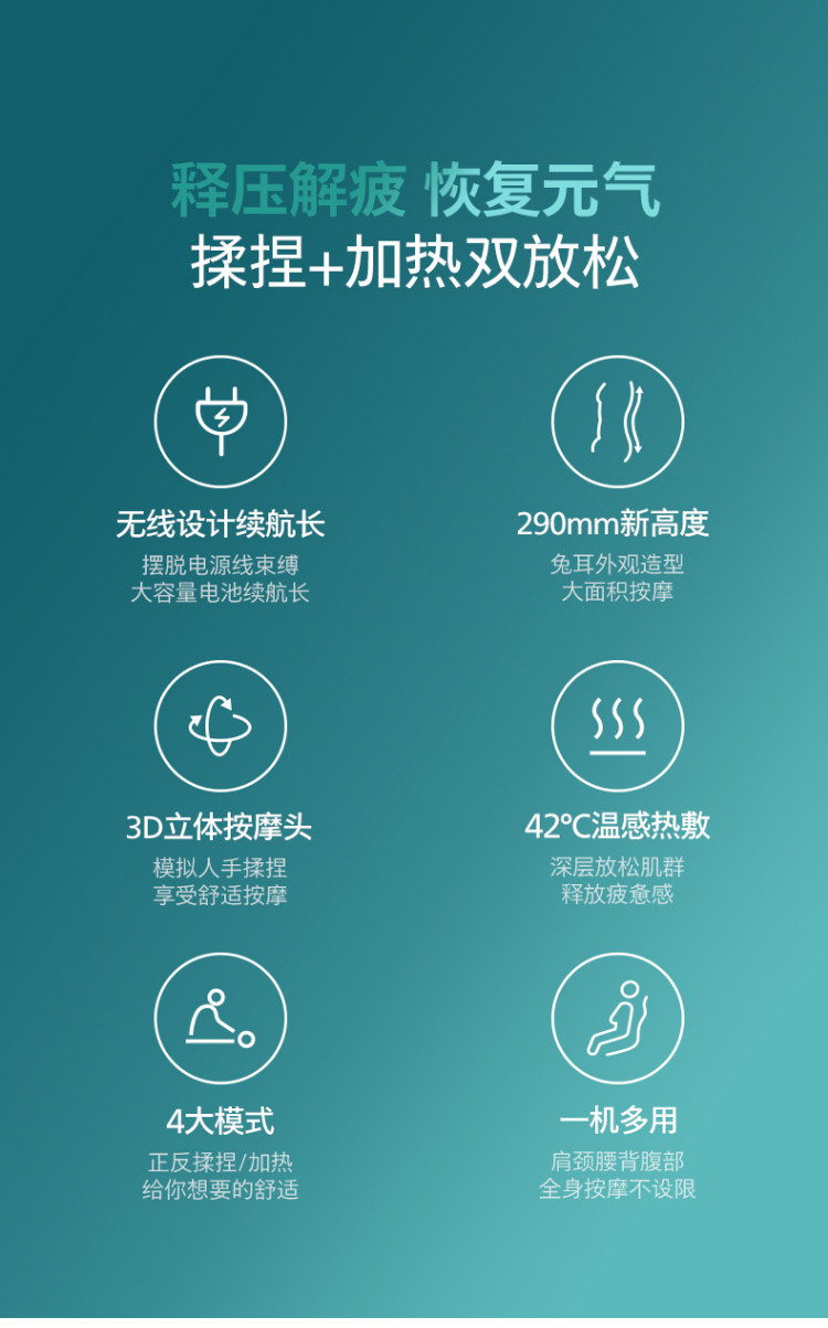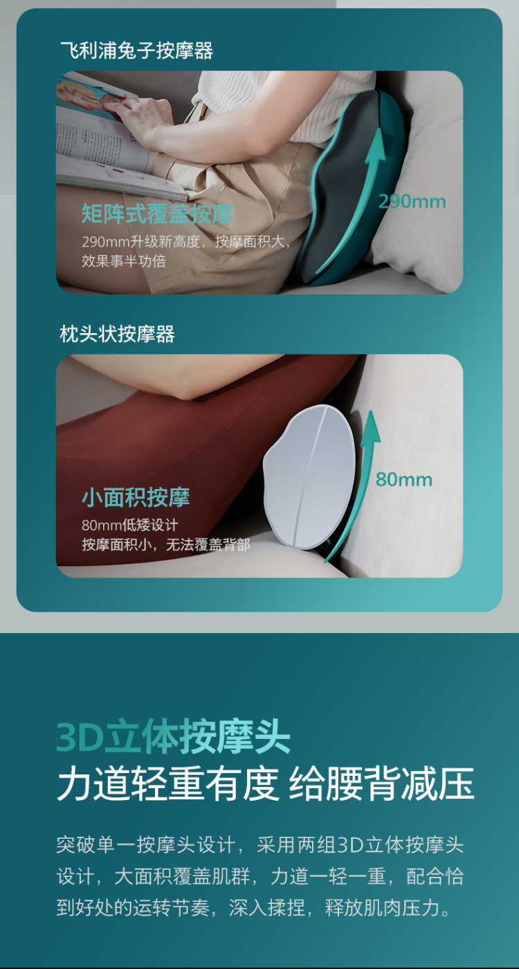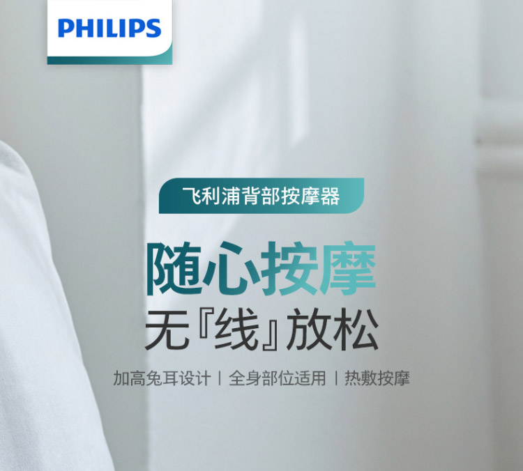 飞利浦PHILIPS按摩抱枕充电按摩仪无线抱枕全身肩颈部颈椎腰椎腰背部按摩器 热敷按摩靠垫枕送礼 PPM3111B