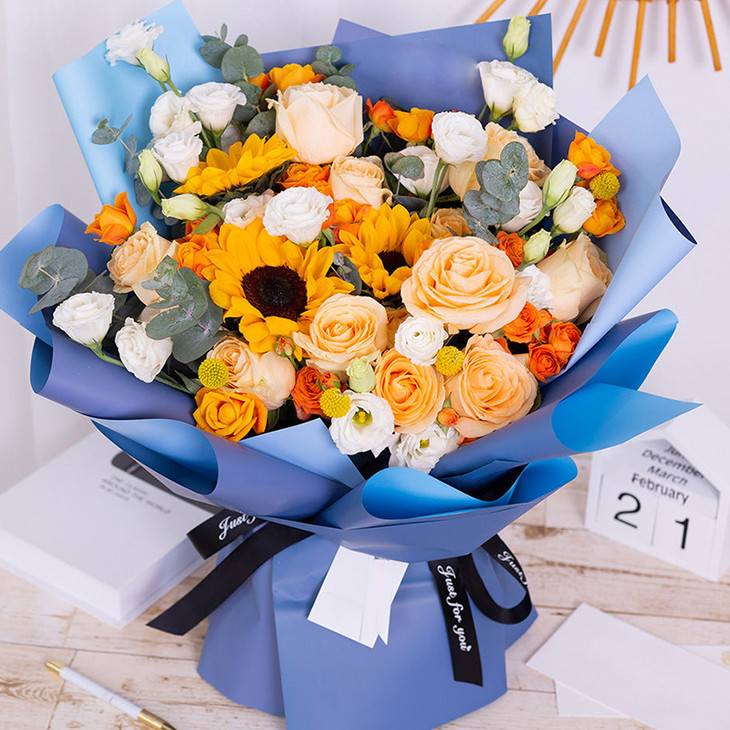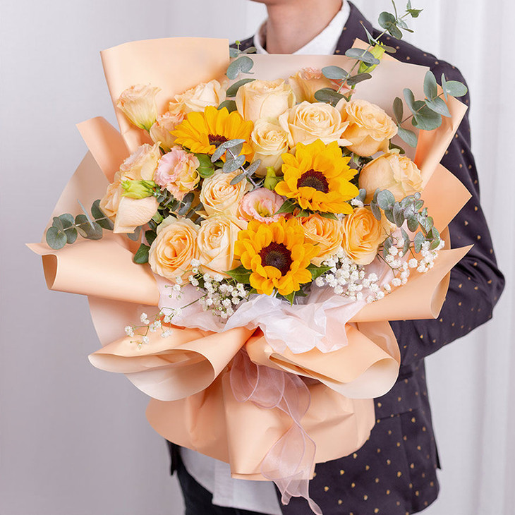 向日葵香槟玫瑰百合混搭花束送女友老婆老公朋友爸爸领导老师长辈生日祝福感谢老师毕业高考祝福送花