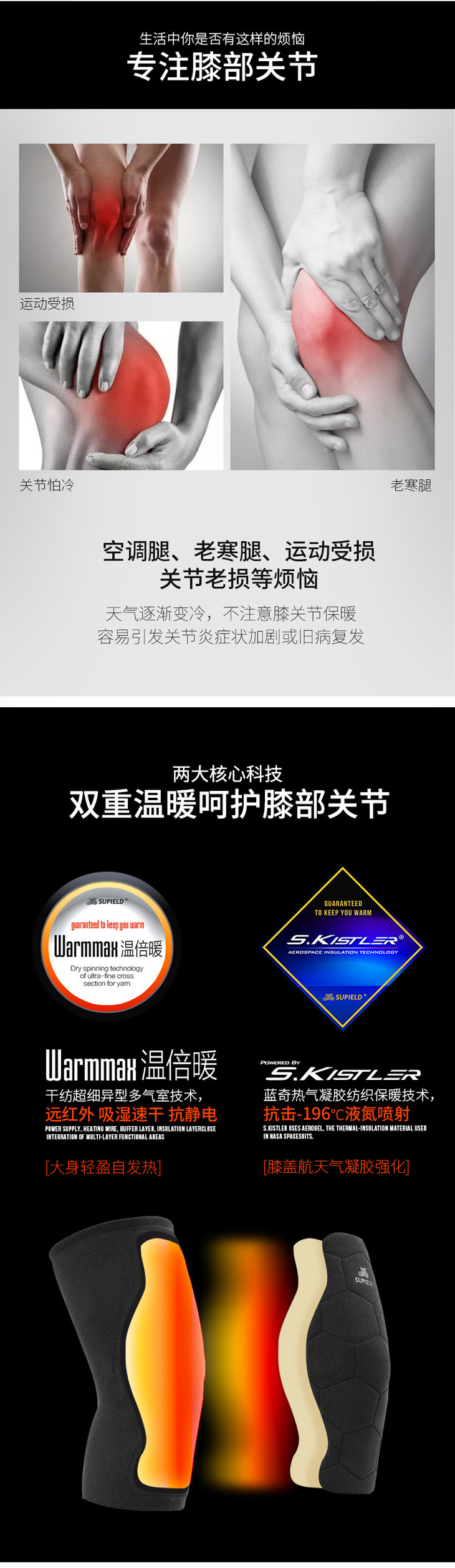 【下单需按详情页的腿围大小选择相应的码数】【气凝胶蓄热 薄暖无痕】素湃SUPIELD气凝胶护膝 柔软亲肤不紧绷