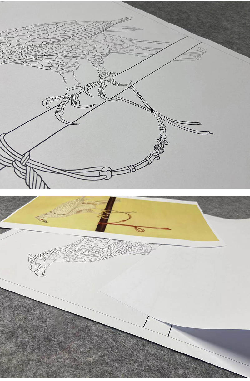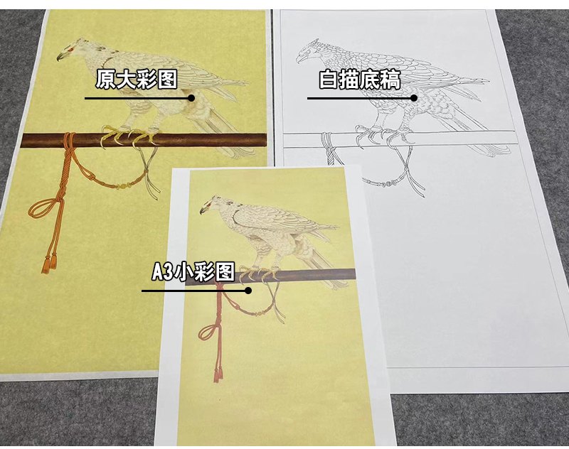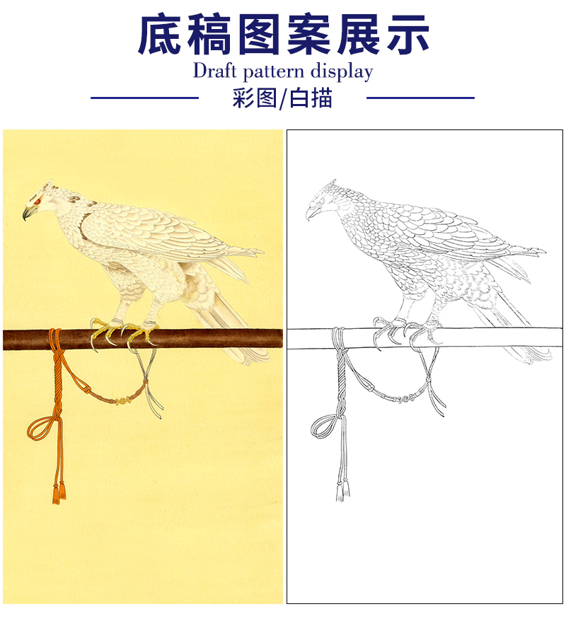 于非闇工笔画白描底稿《御鹰图》临摹勾线高清打印稿YL12