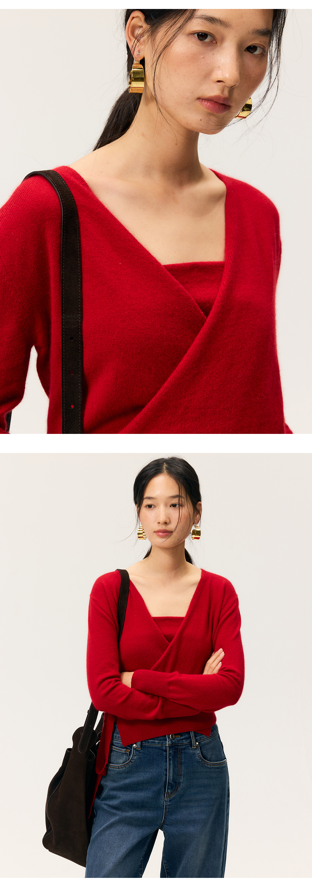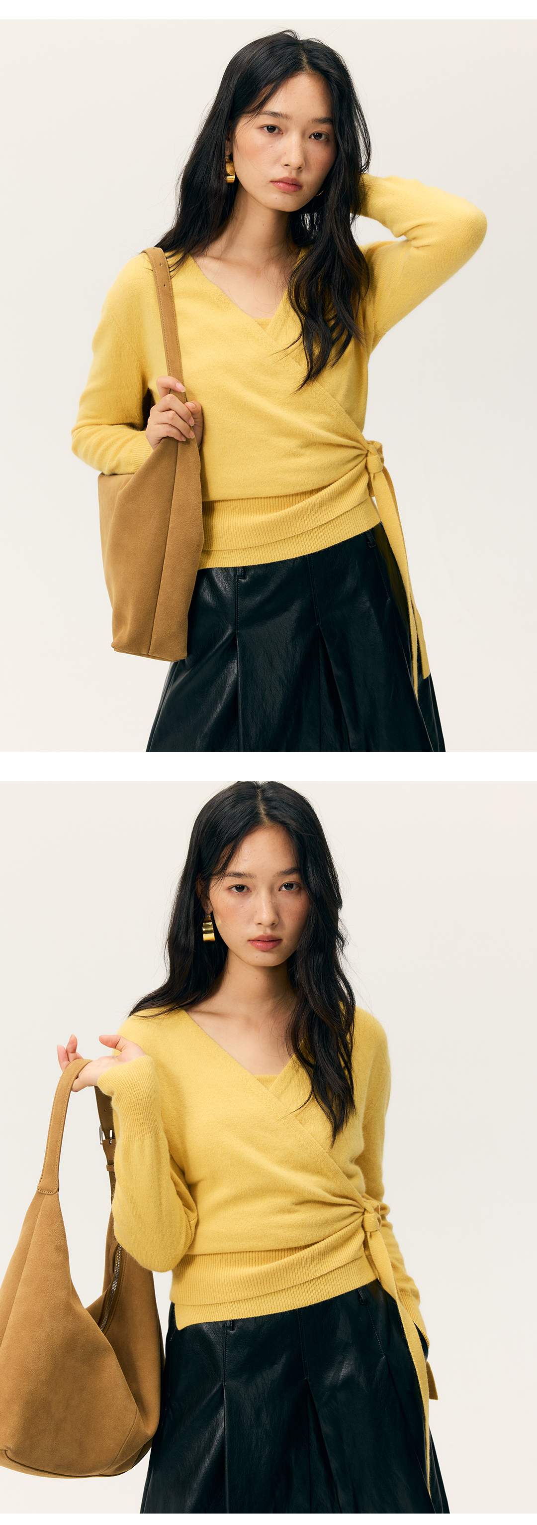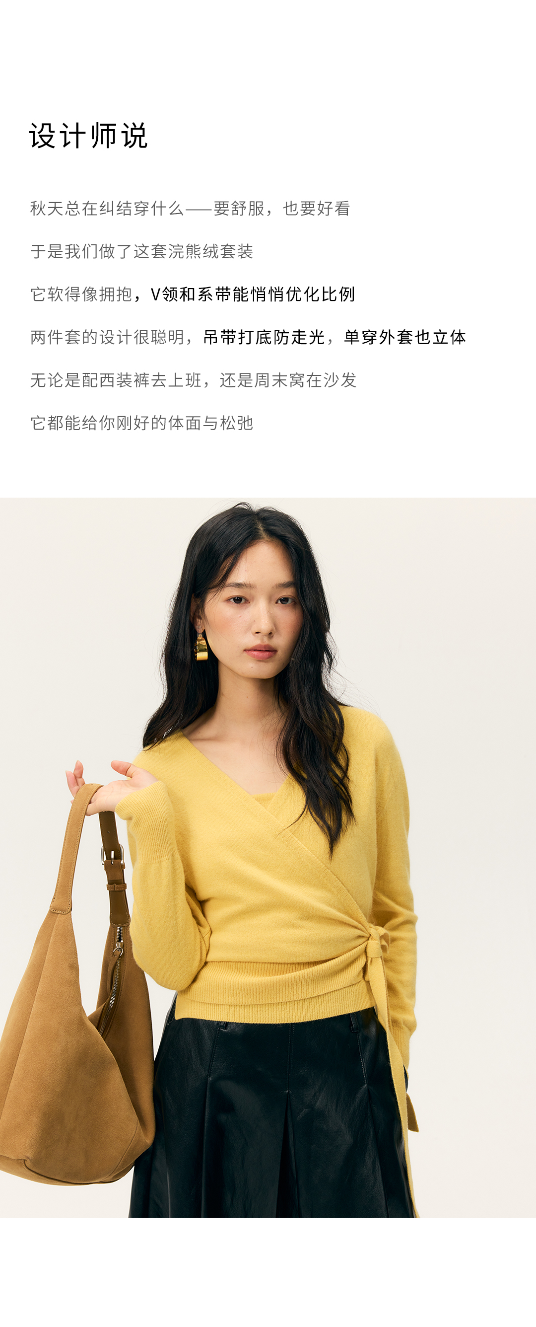 HeyDressV领裹身浣熊绒吊带针织衫套装