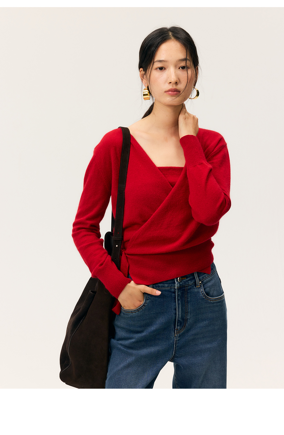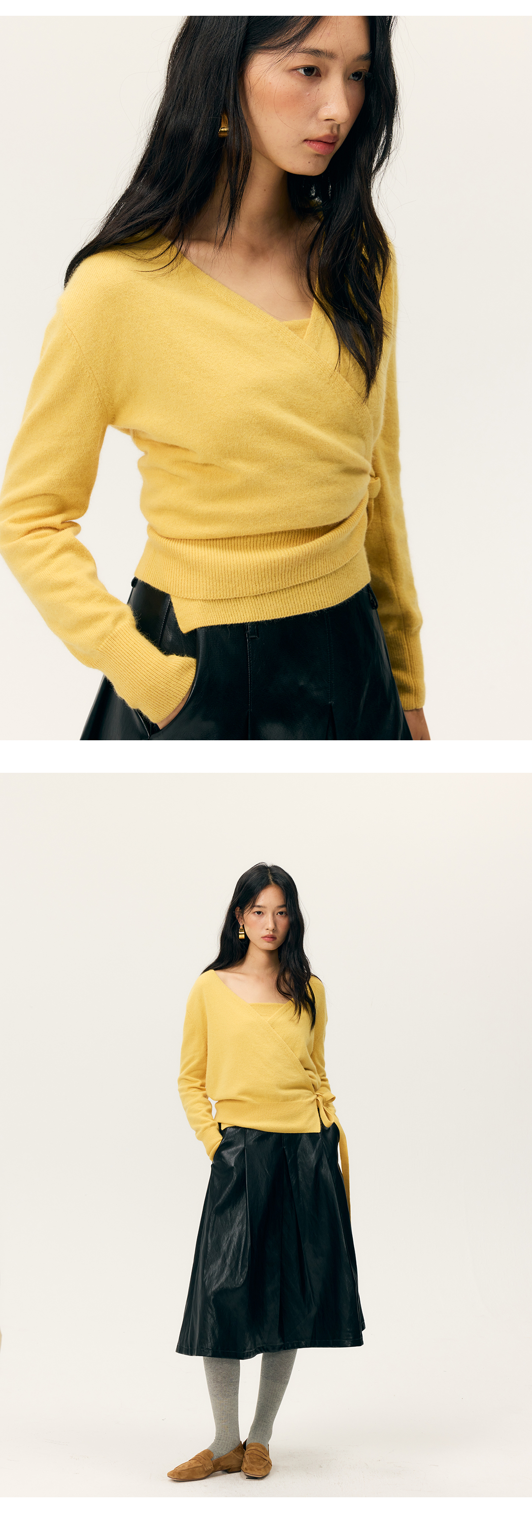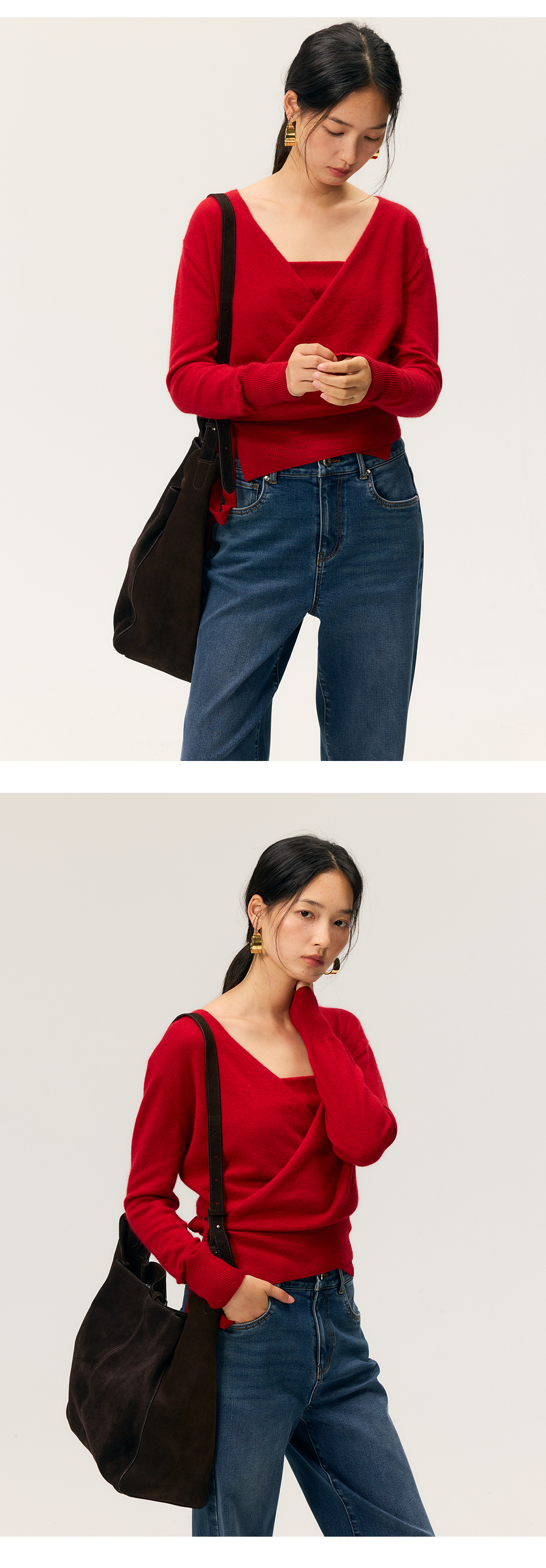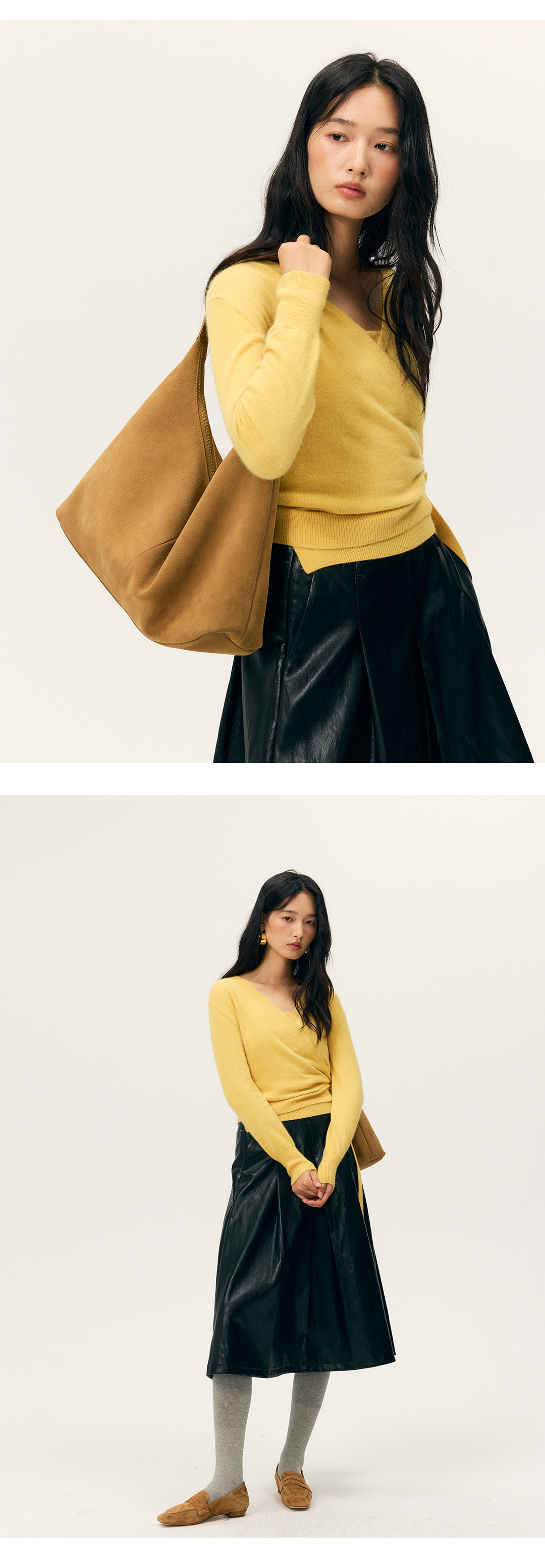HeyDressV领裹身浣熊绒吊带针织衫套装