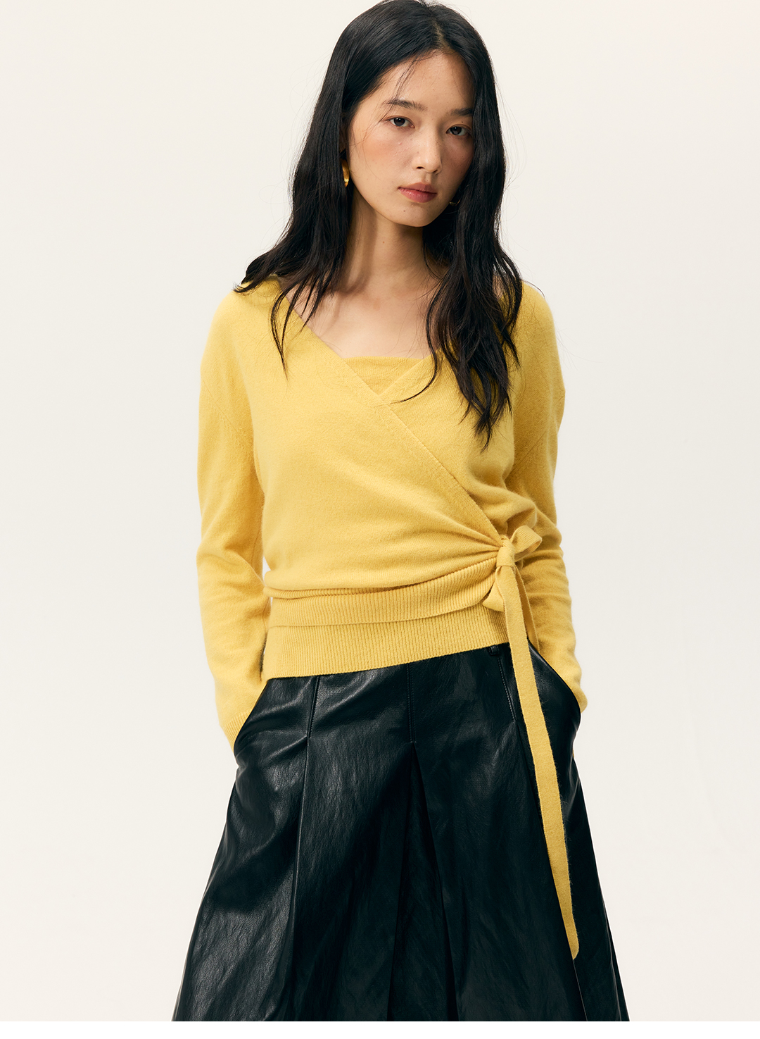 HeyDress叠褶八分阔腿毛呢裤