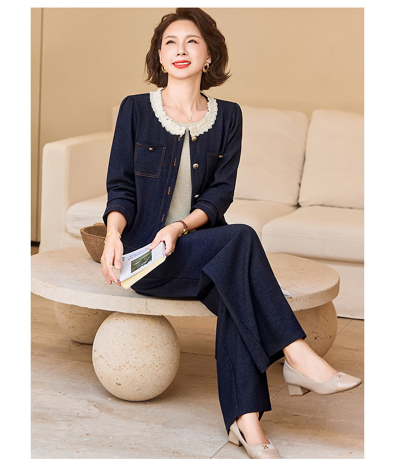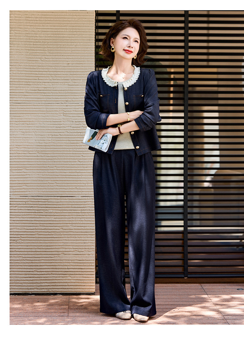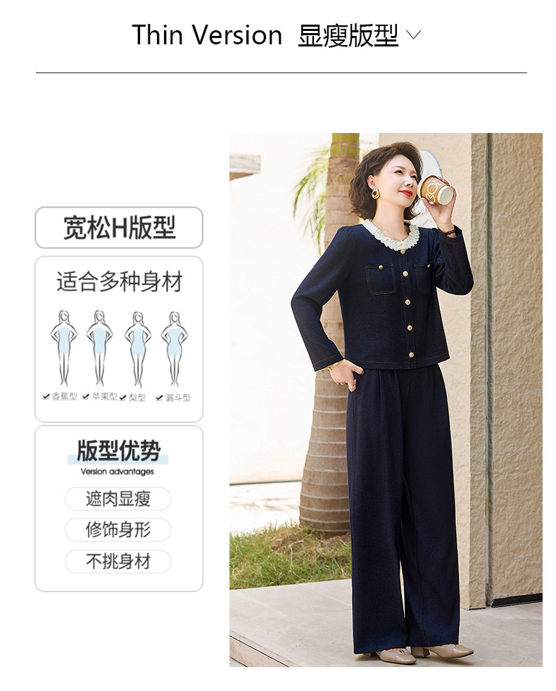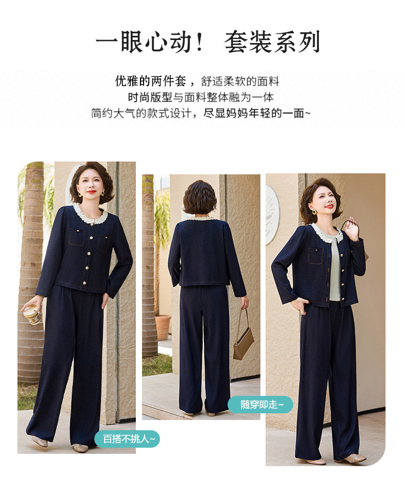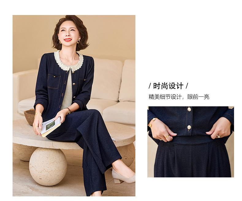 DL-LY170妈妈秋装时尚套装洋气2025新款中年小香风春秋牛仔外套40岁50