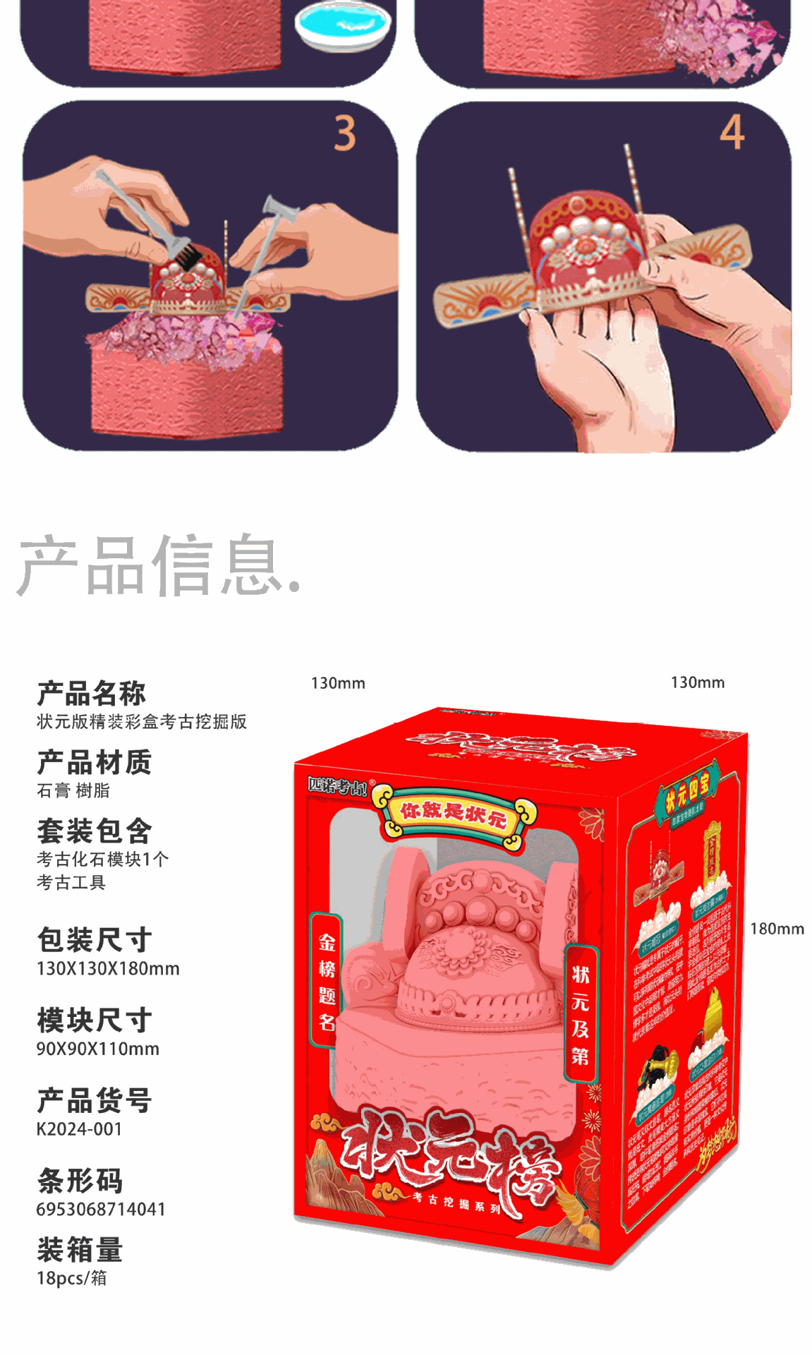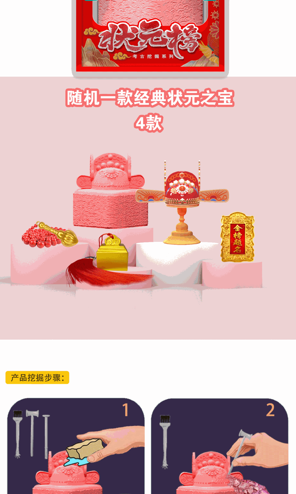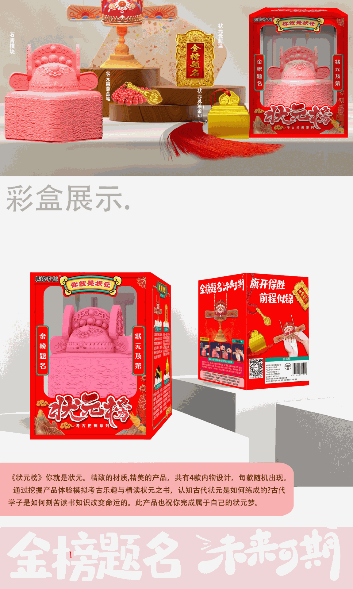 【状元榜你就是状元】礼盒装儿童考古挖掘状元榜令牌金榜题名状元帽盲盒儿童手工玩具礼物