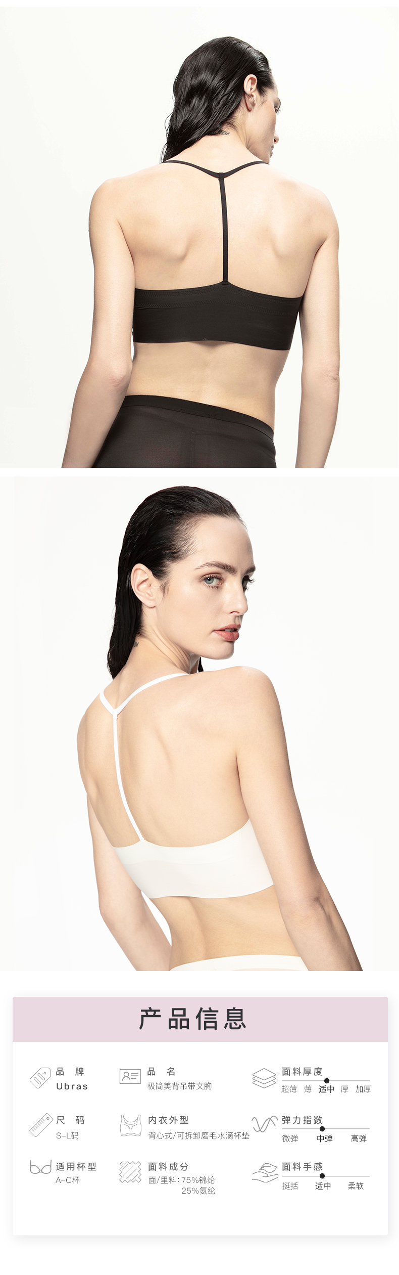 Ubras极简美背吊带文胸内衣女无钢圈薄款舒适透气女士胸罩