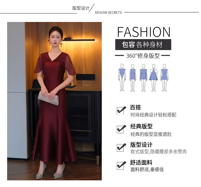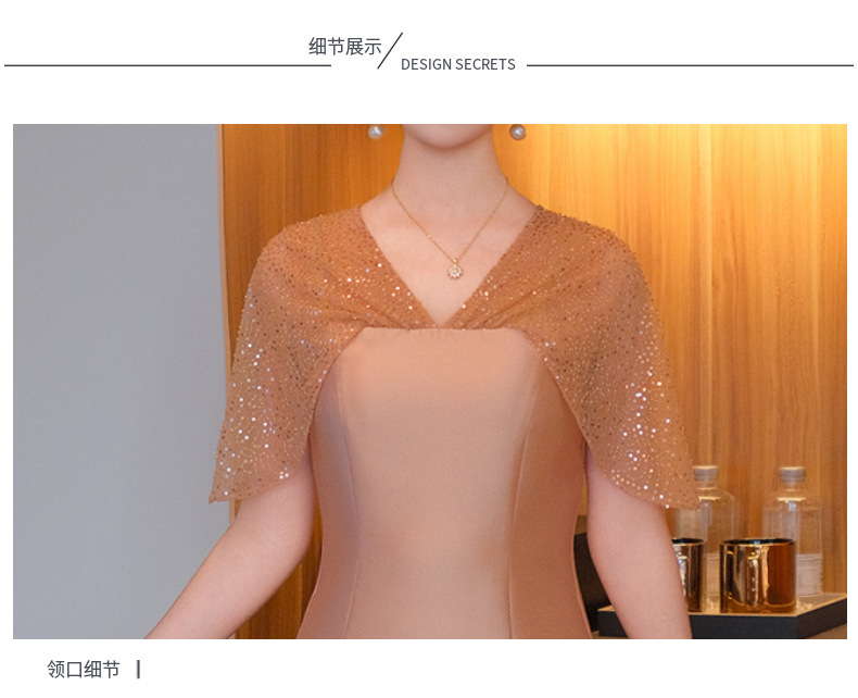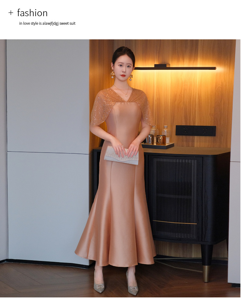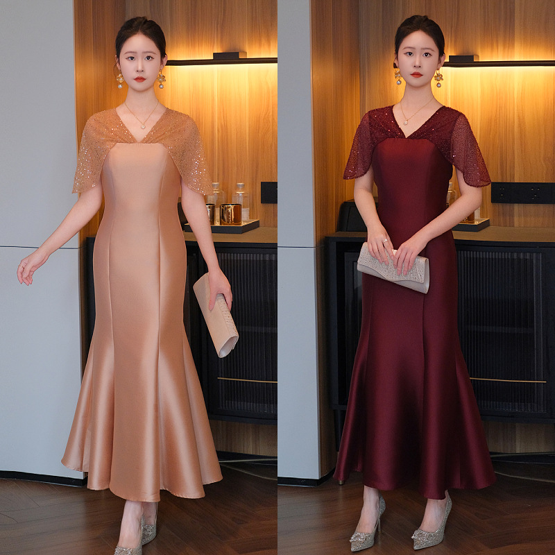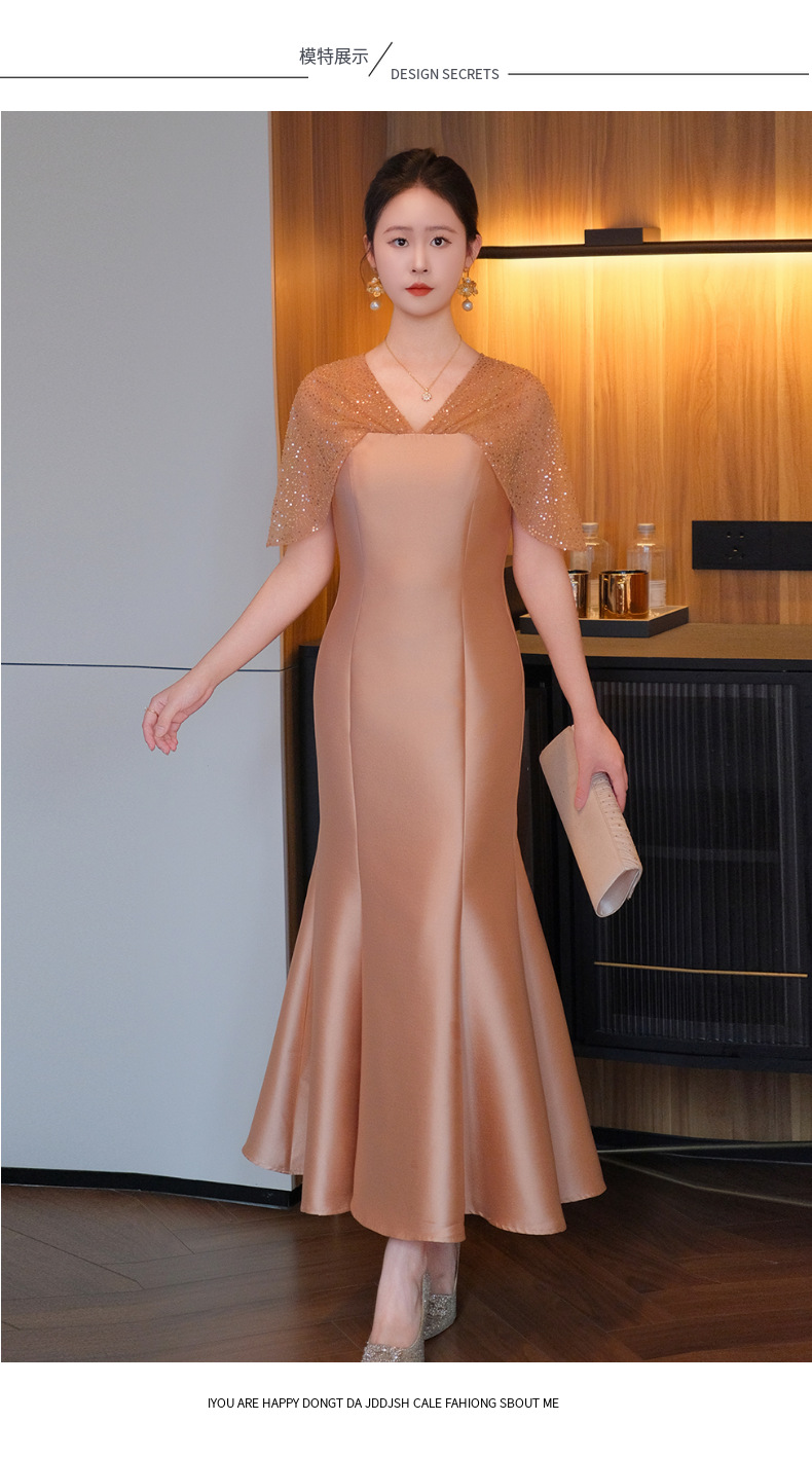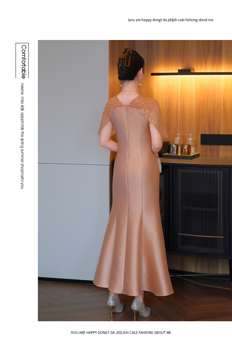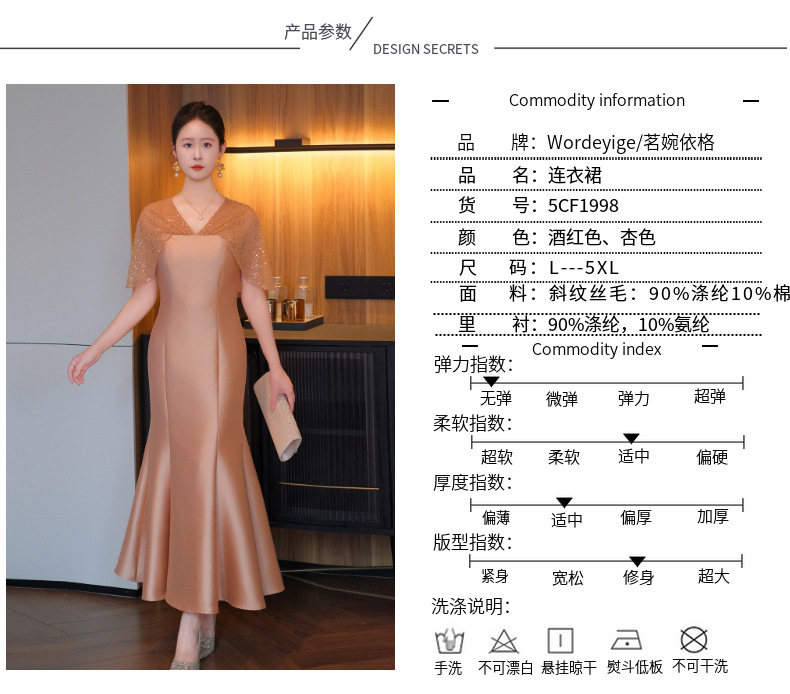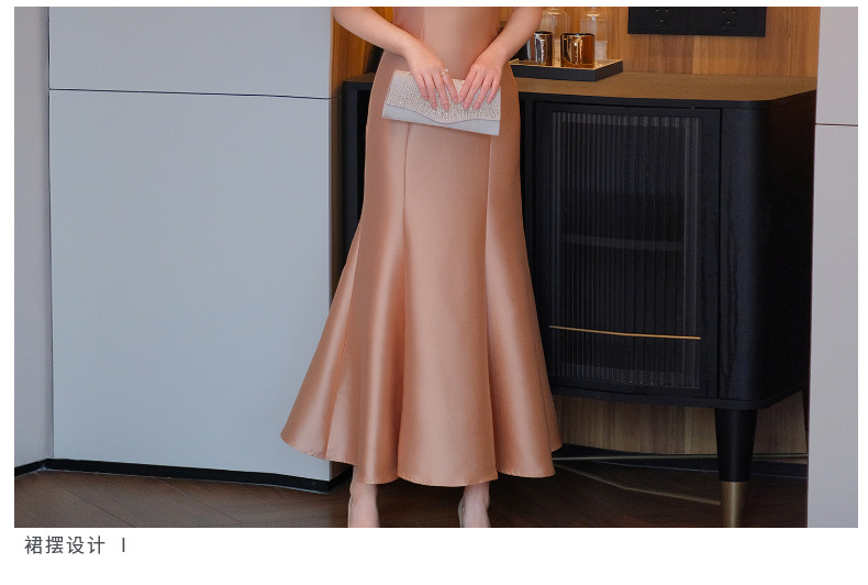 DNO-5CF1998时尚2025春季新品优雅气质大码女装连衣裙钉珠长款连衣裙