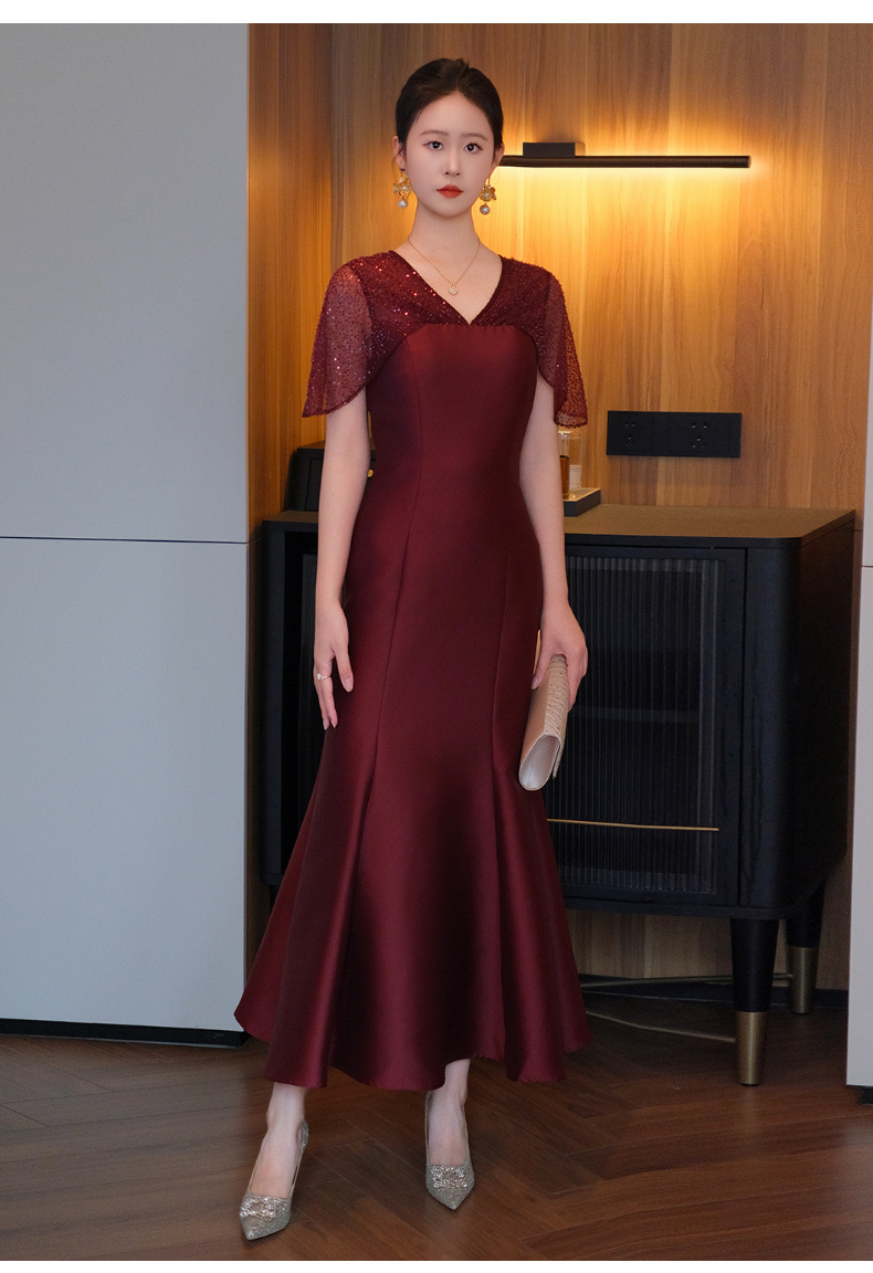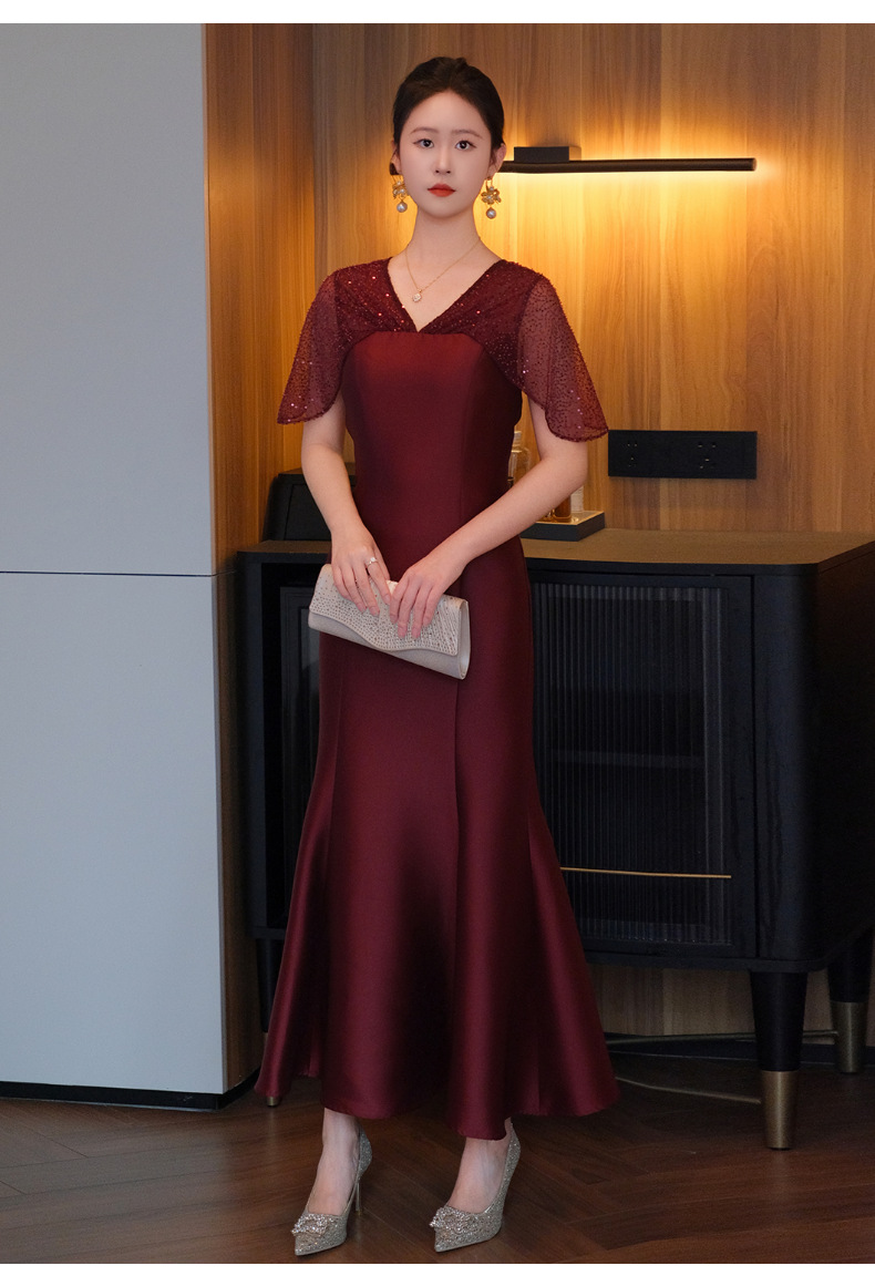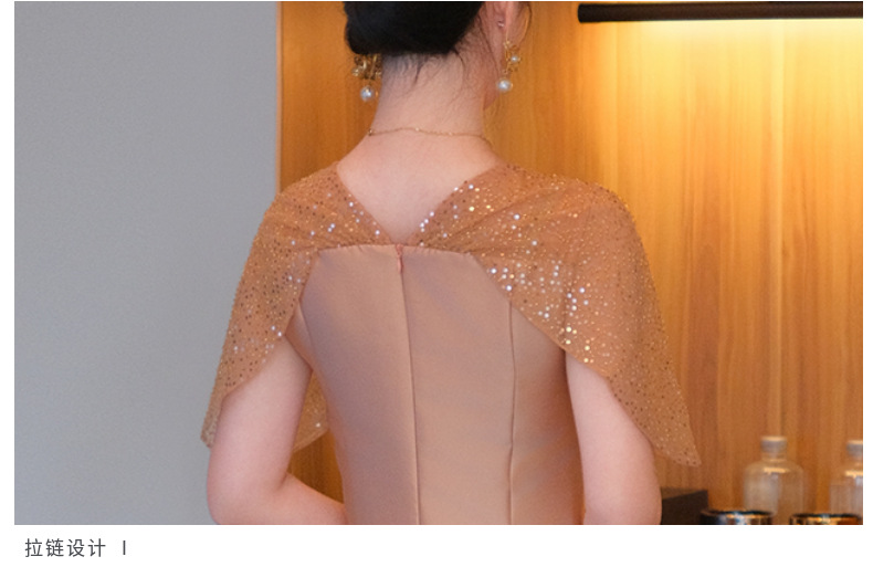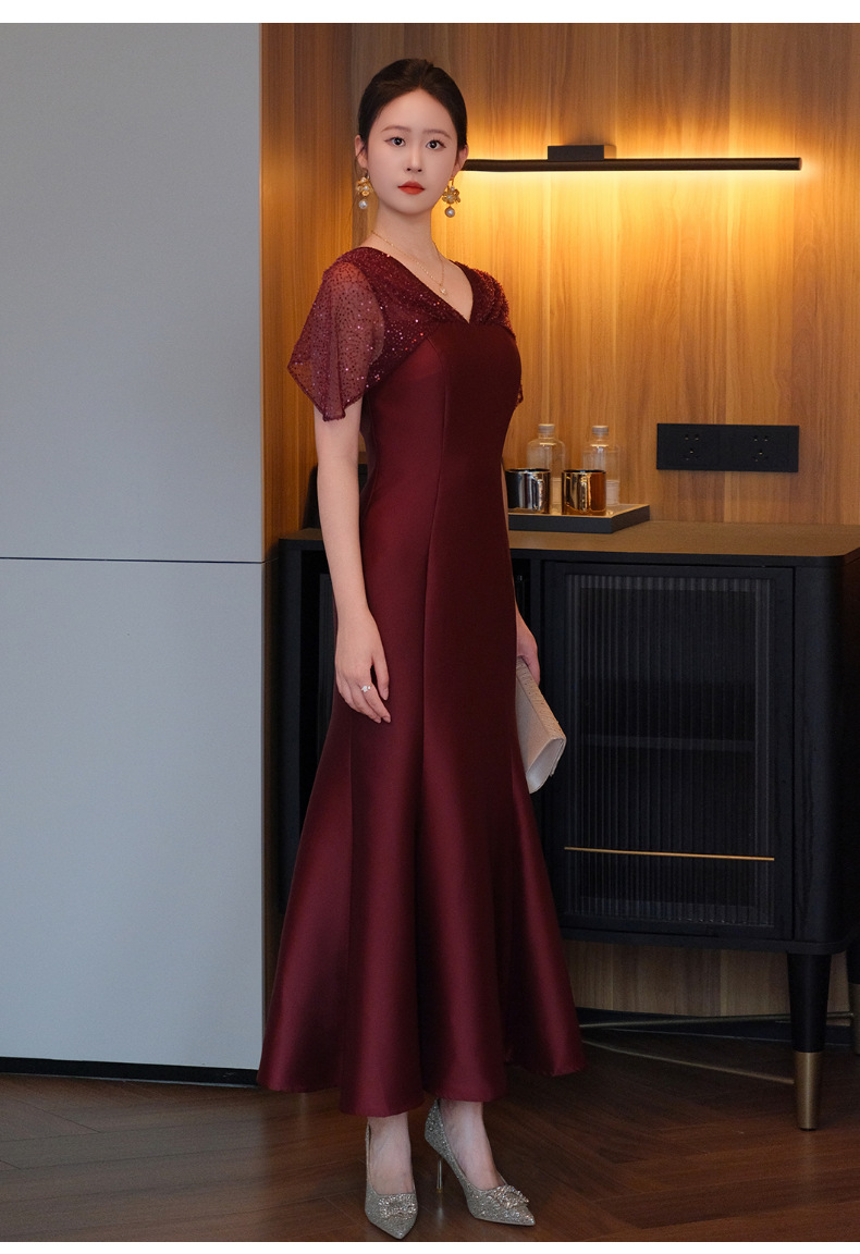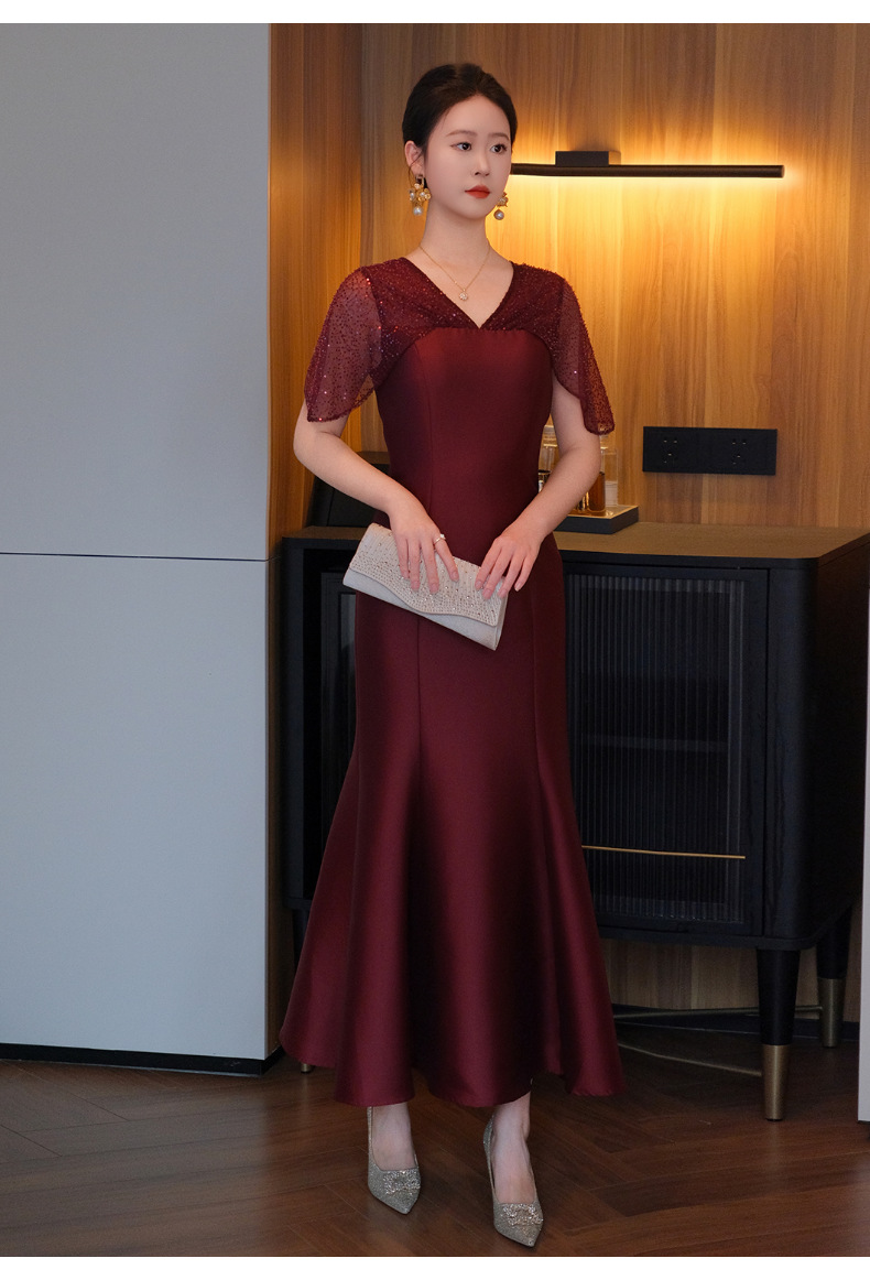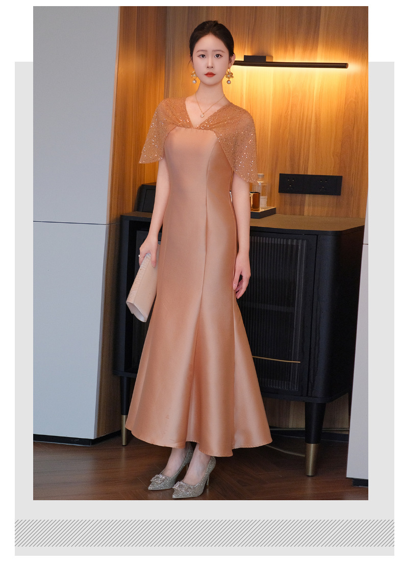 DNO-5CF1998时尚2025春季新品优雅气质大码女装连衣裙钉珠长款连衣裙