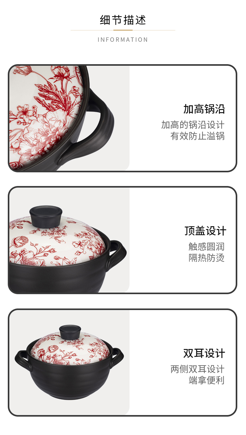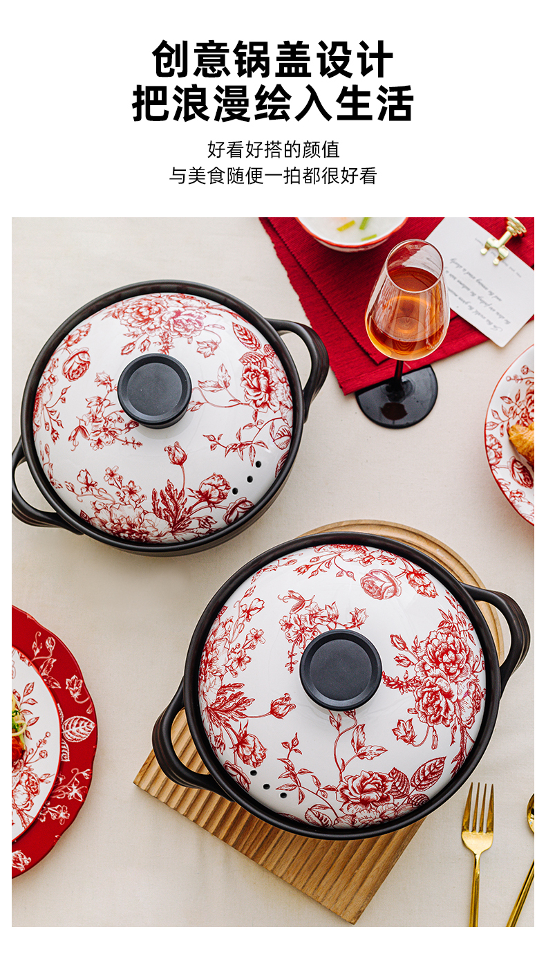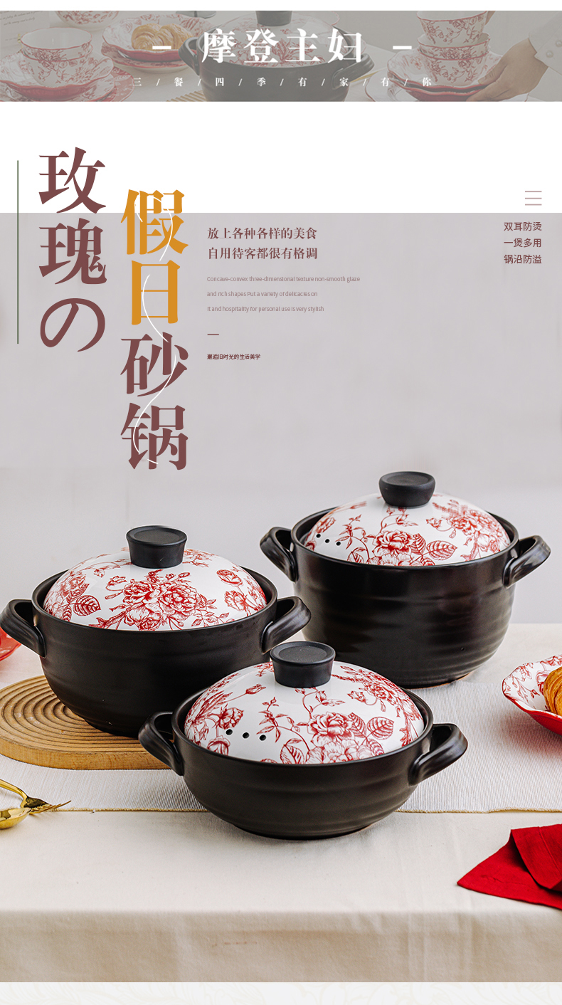 摩登主妇玫瑰假日砂锅炖锅家用燃气耐高温陶瓷锅煲汤沙锅石锅汤锅