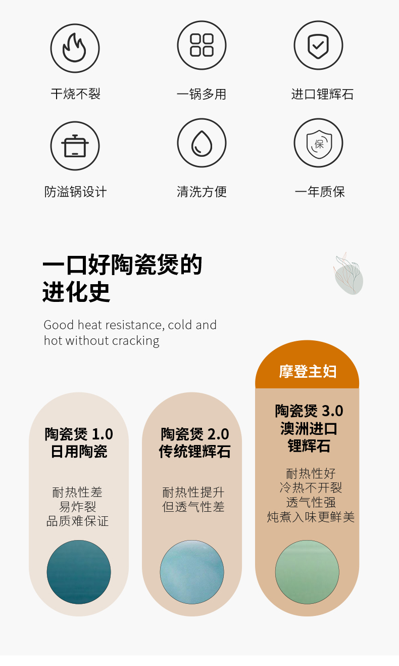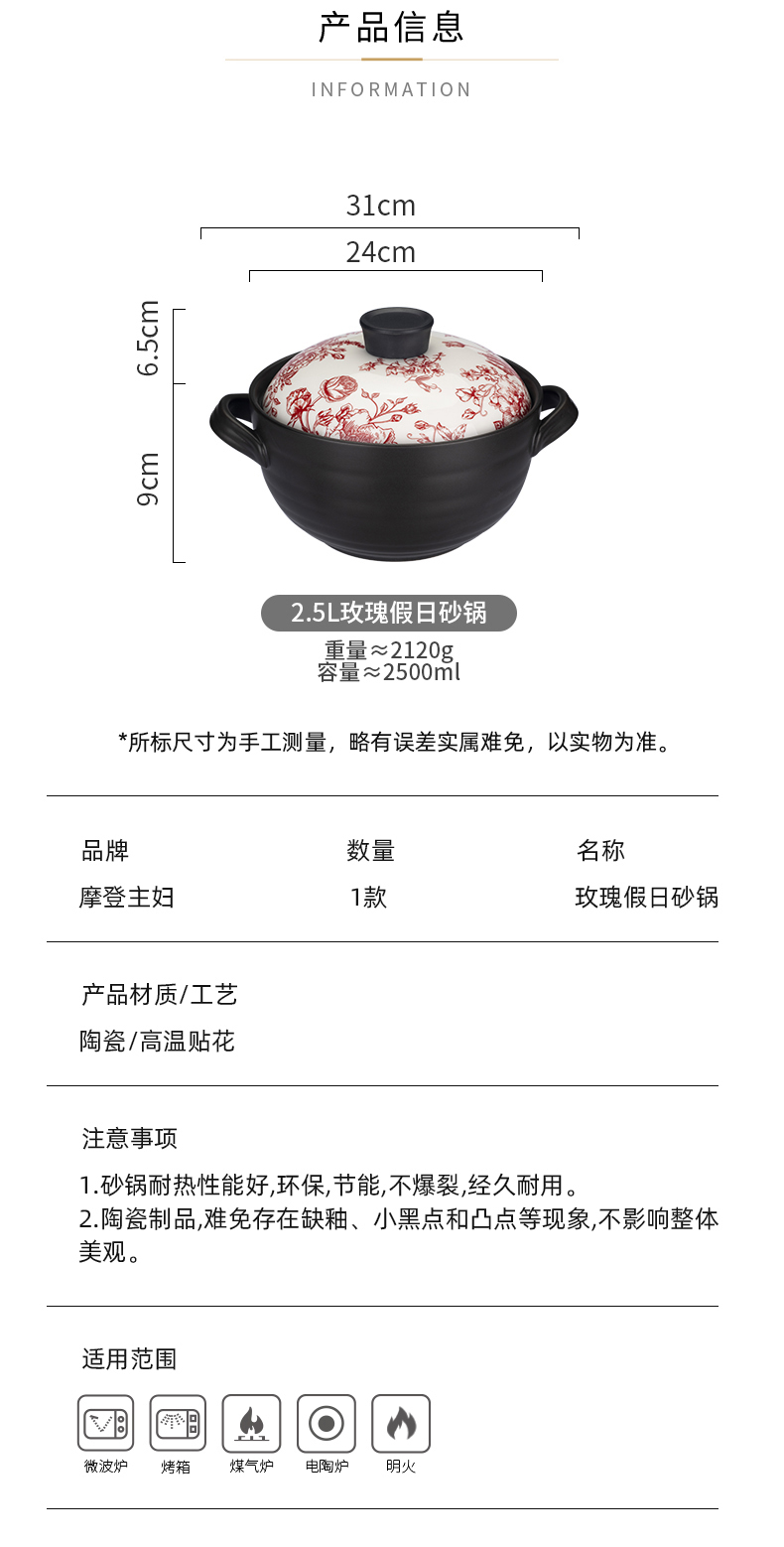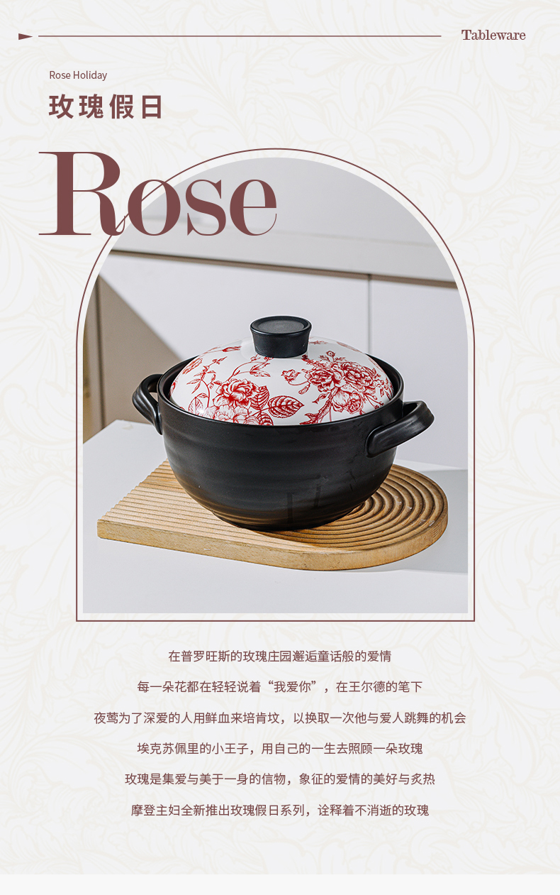 摩登主妇玫瑰假日砂锅炖锅家用燃气耐高温陶瓷锅煲汤沙锅石锅汤锅