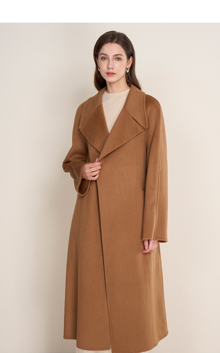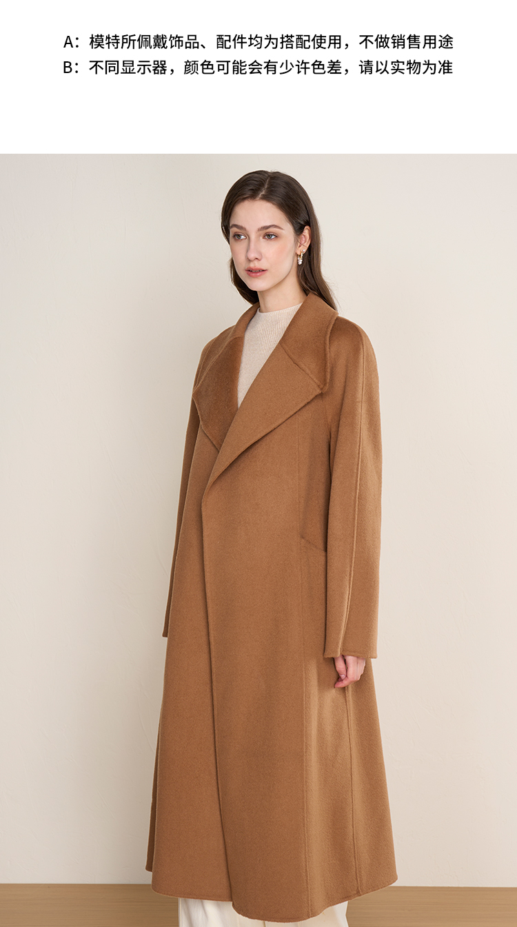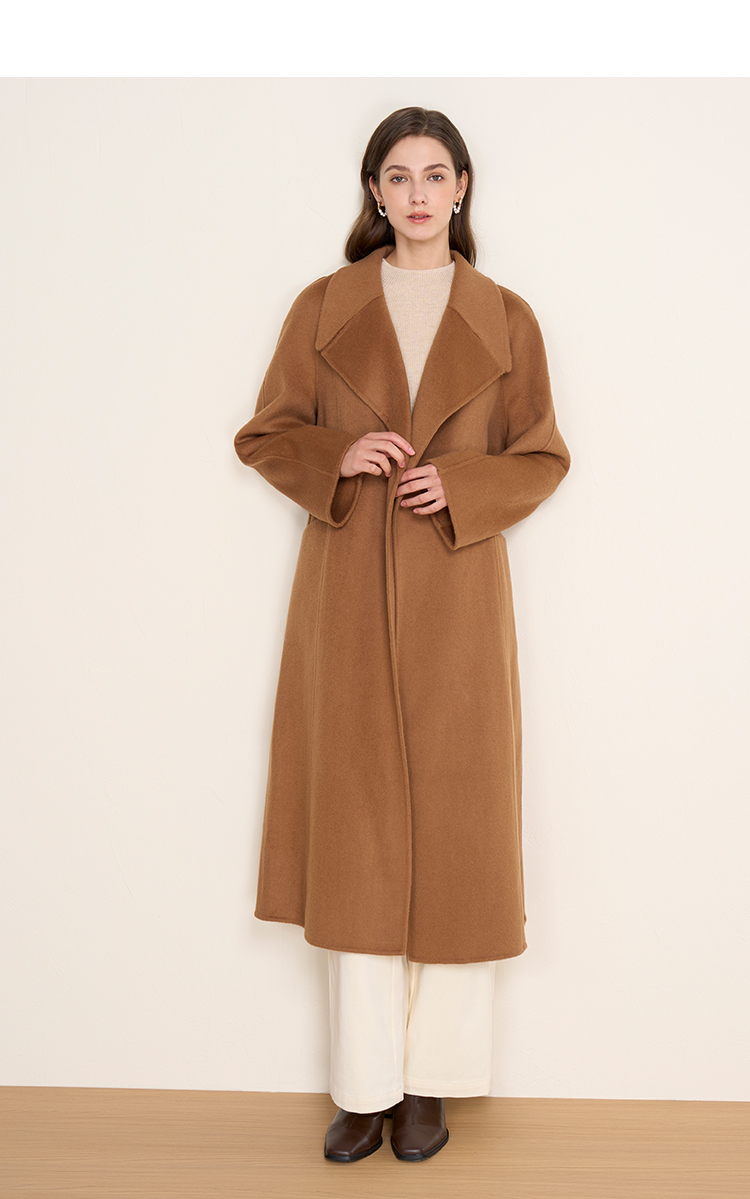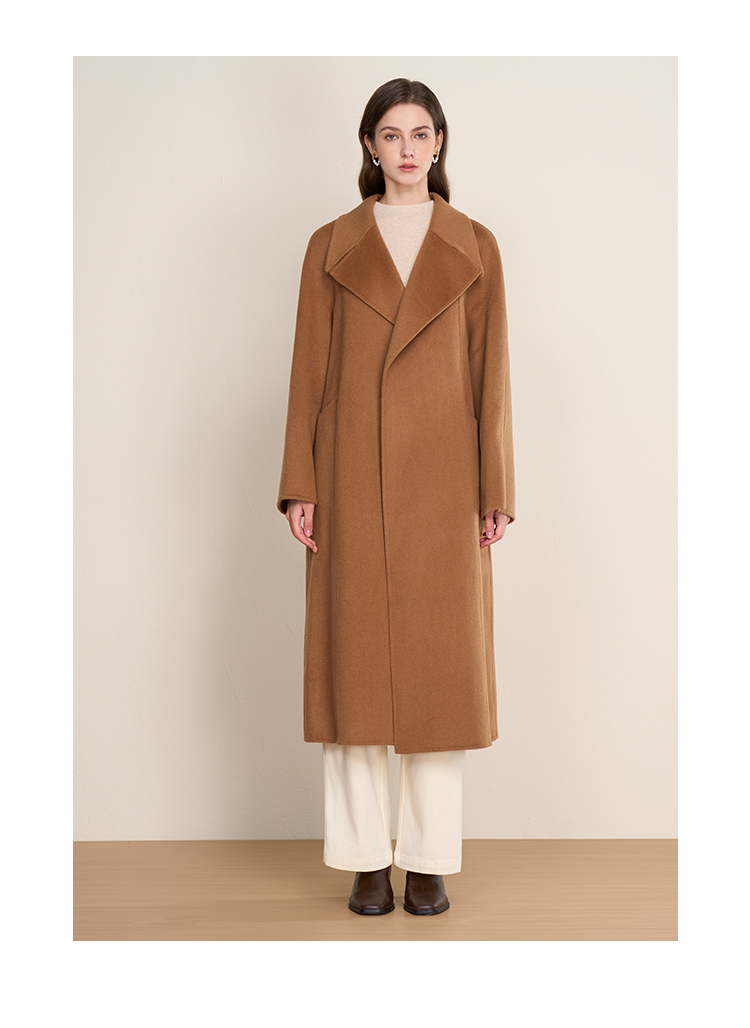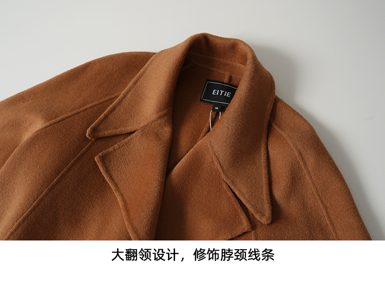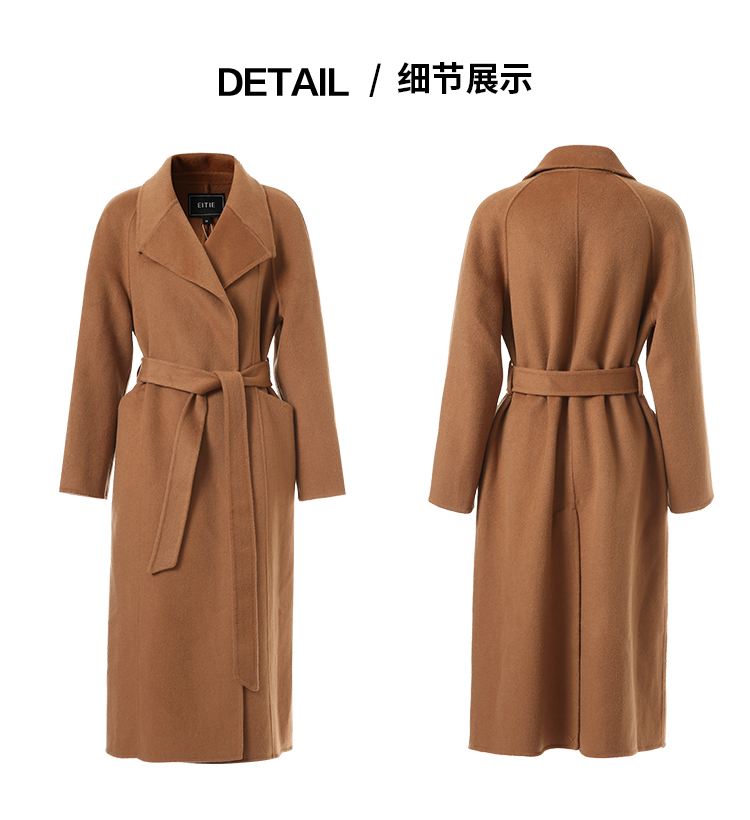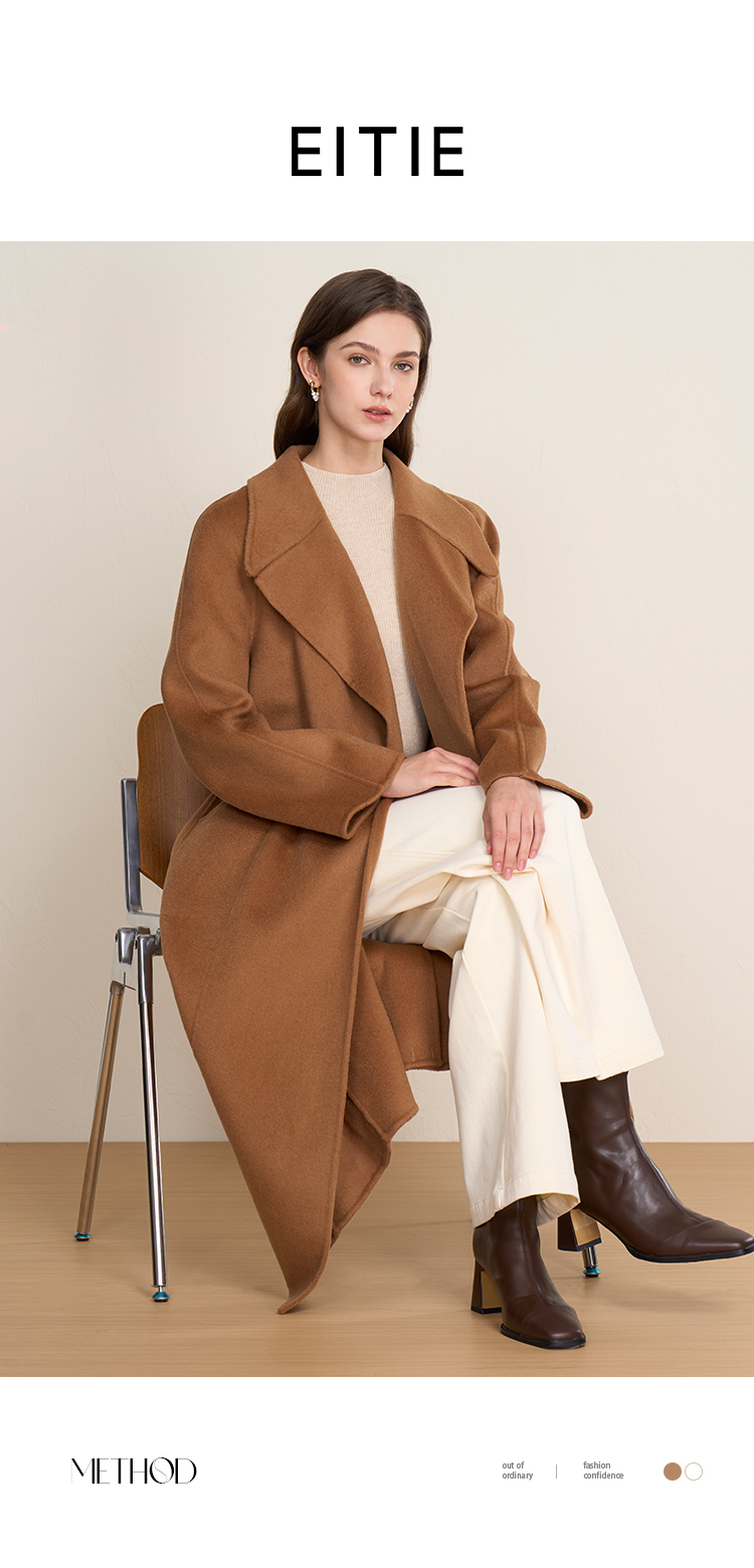 EITIE爱特爱宽松经典卡其色翻领长款纯羊毛呢大衣冬季新款D2514903
