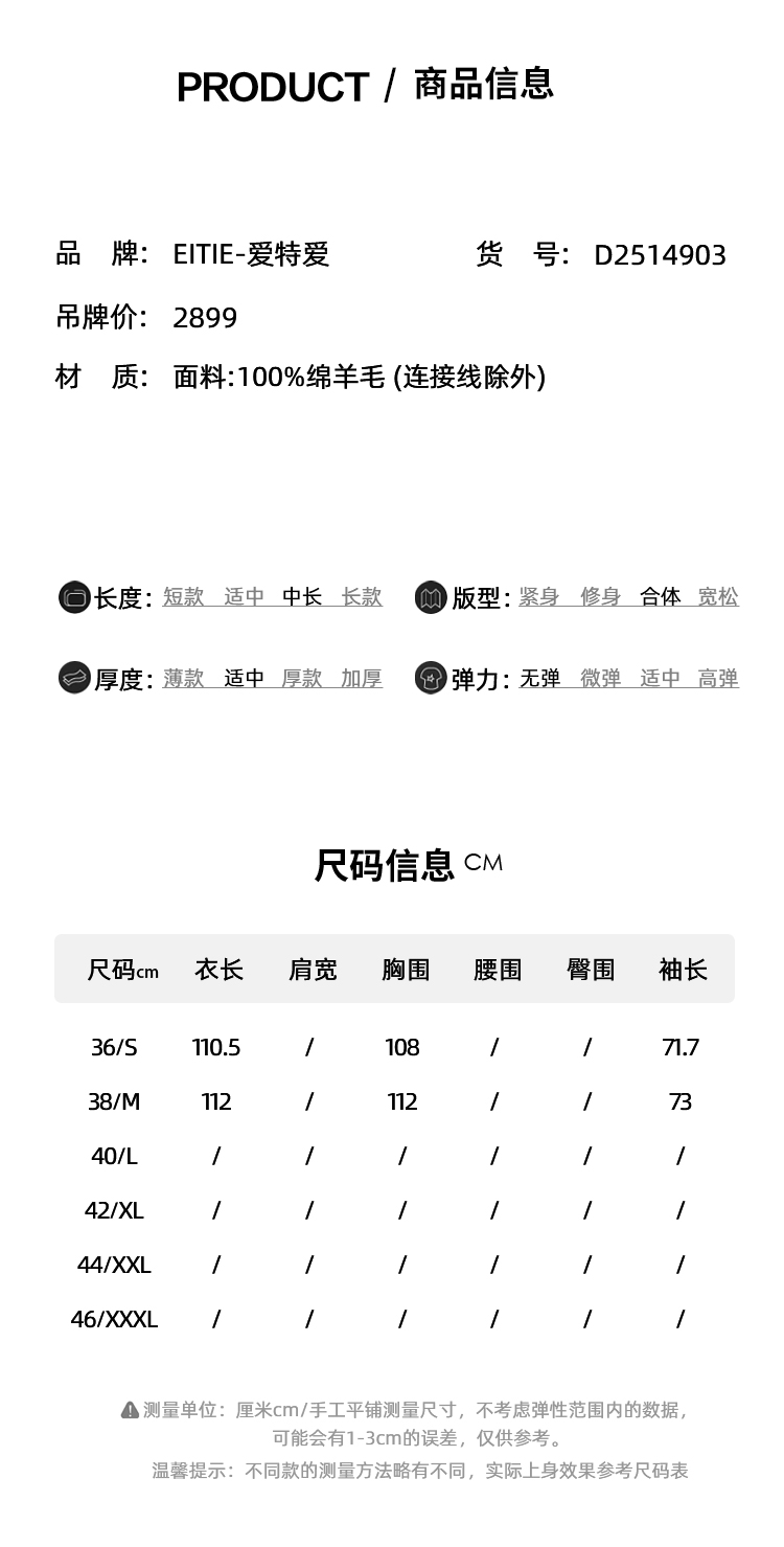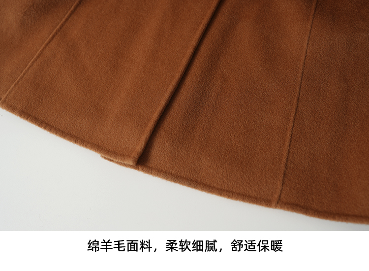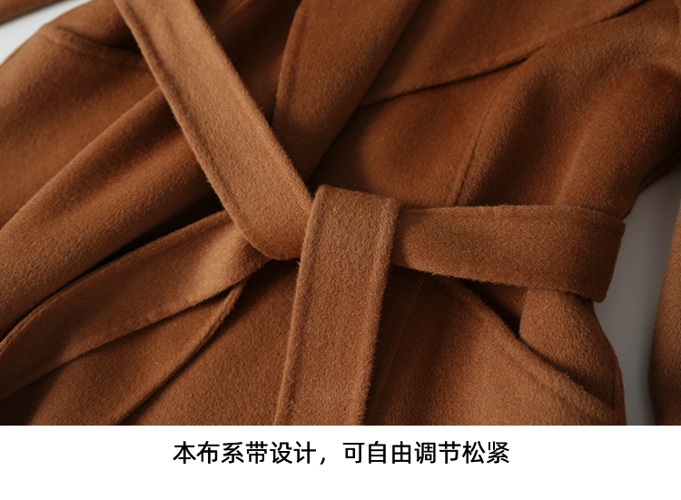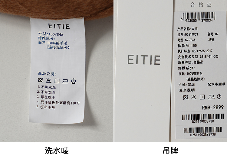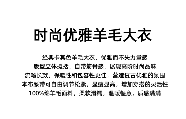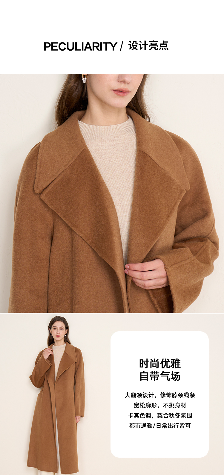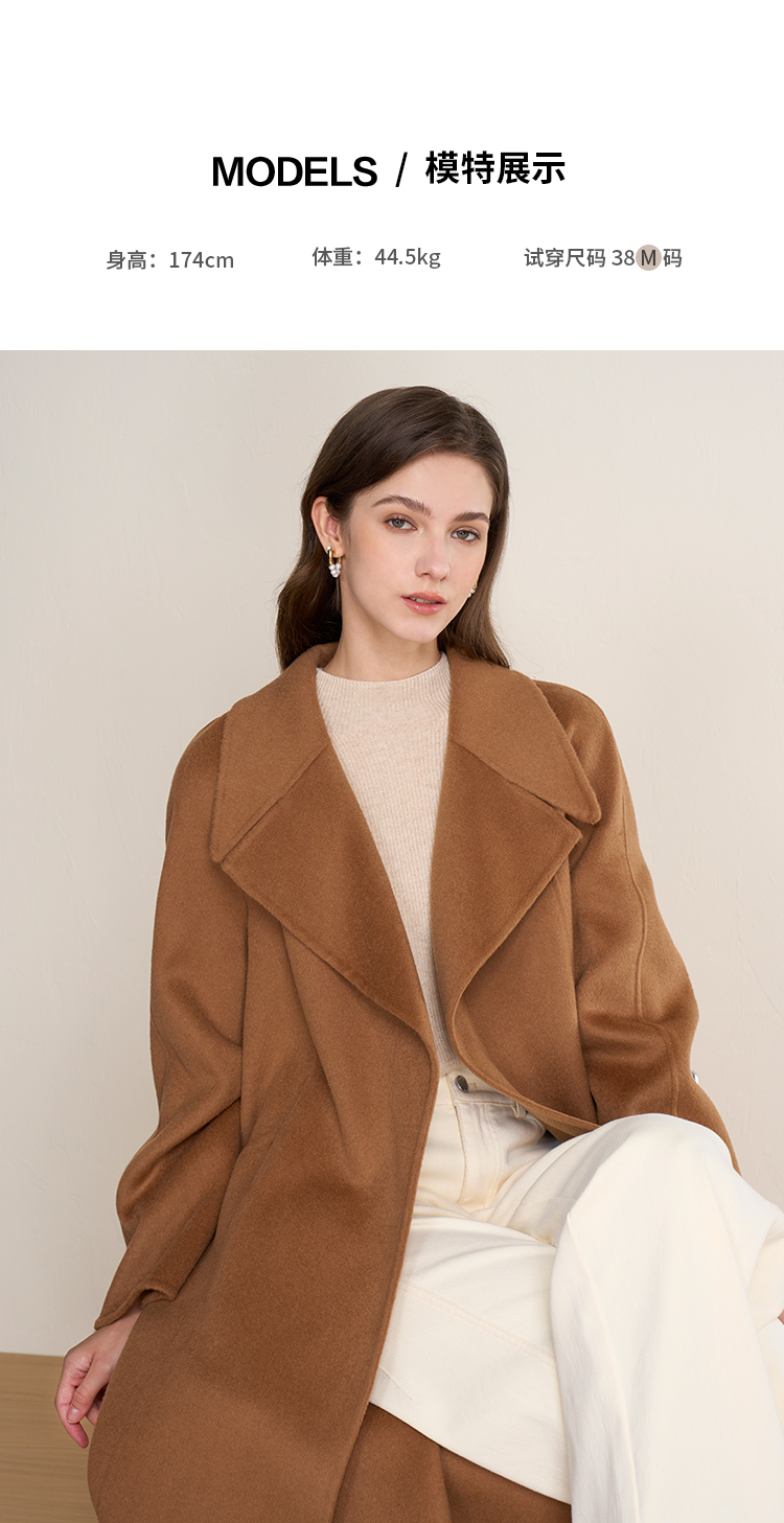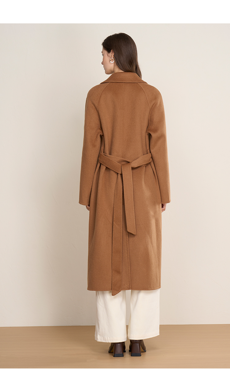 EITIE爱特爱宽松经典卡其色翻领长款纯羊毛呢大衣冬季新款D2514903