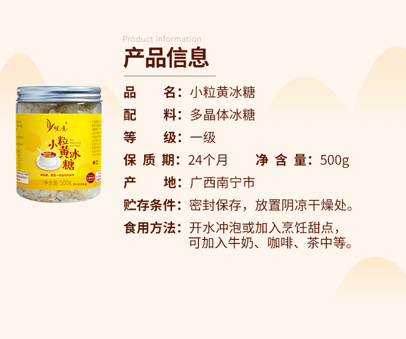 悦意小粒黄冰糖 500g/罐