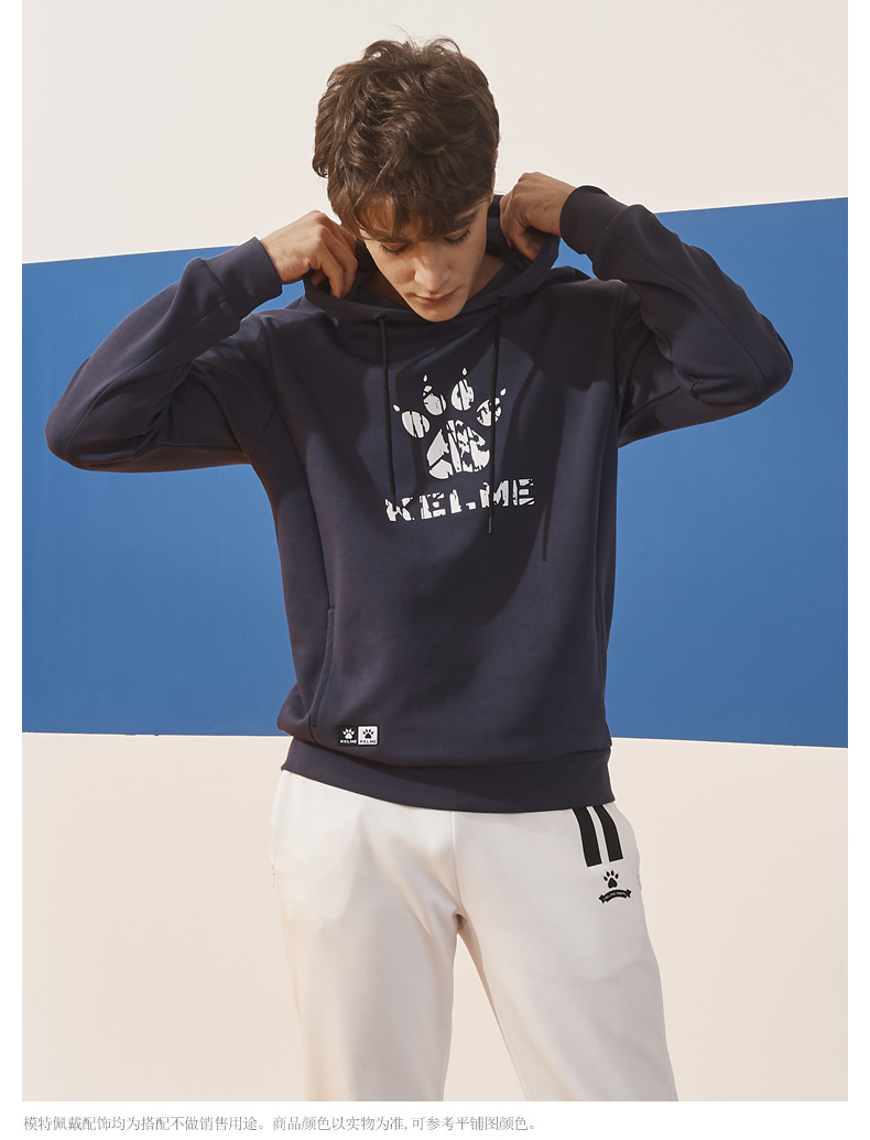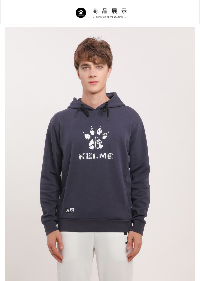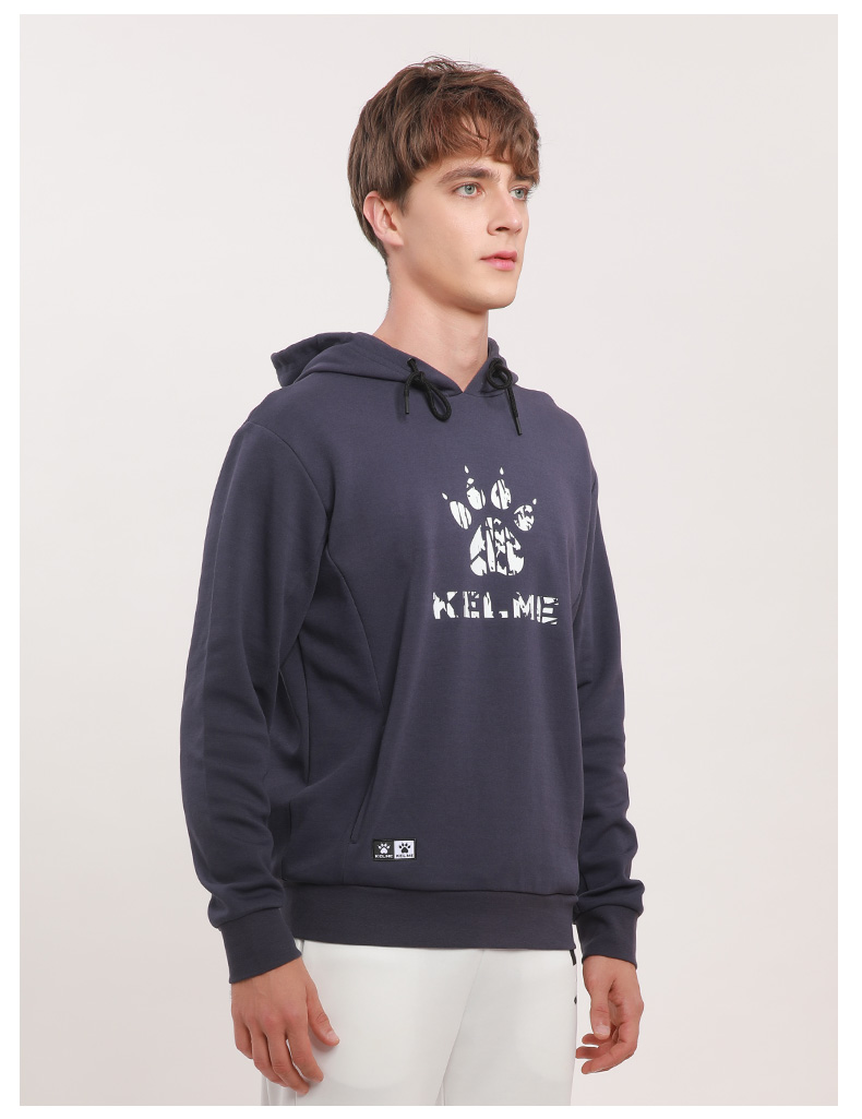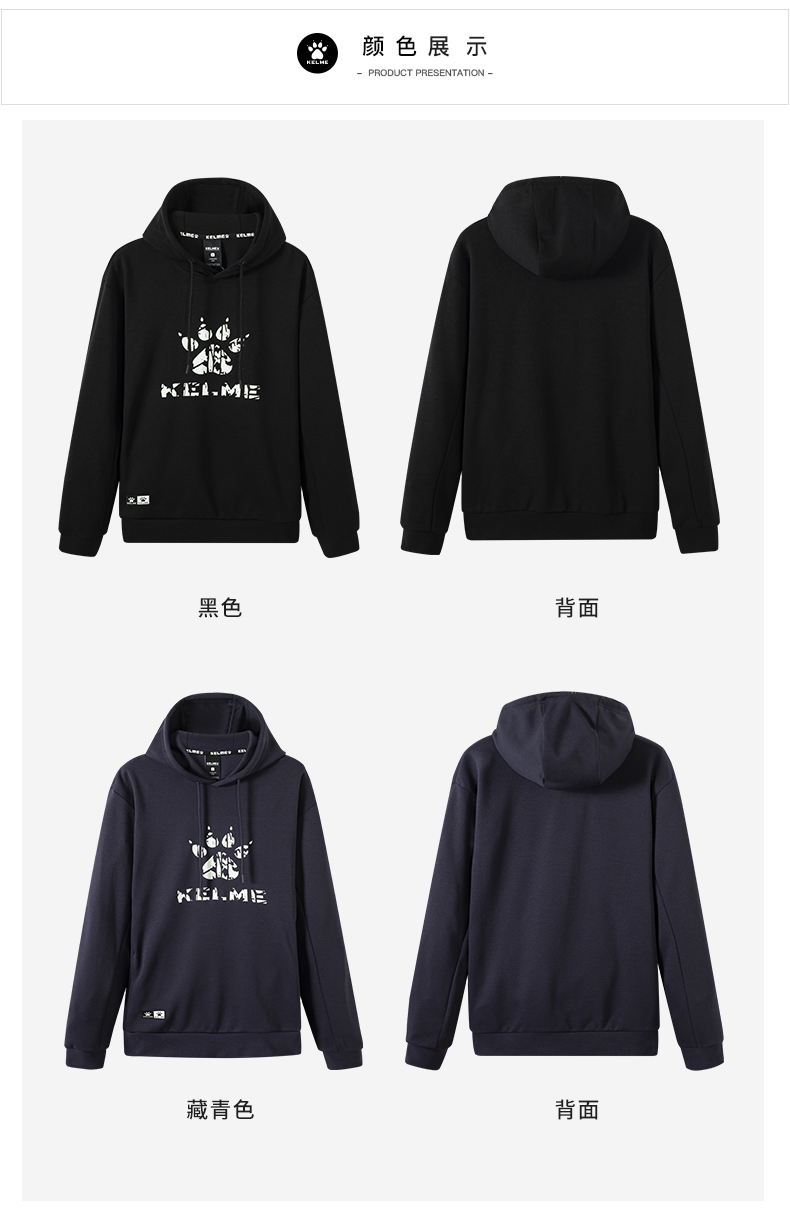 卡尔美 运动卫衣新款大LOGO针织连帽套头衫宽松休闲上衣男