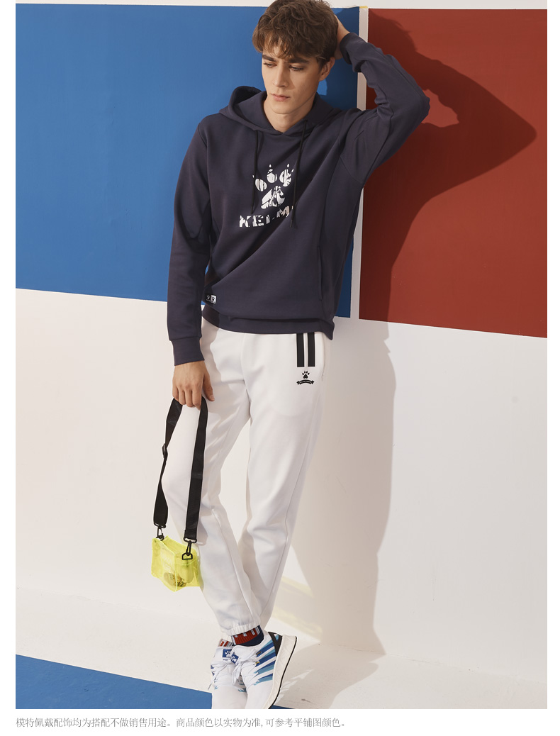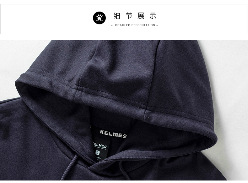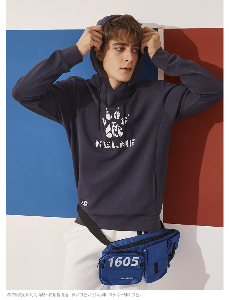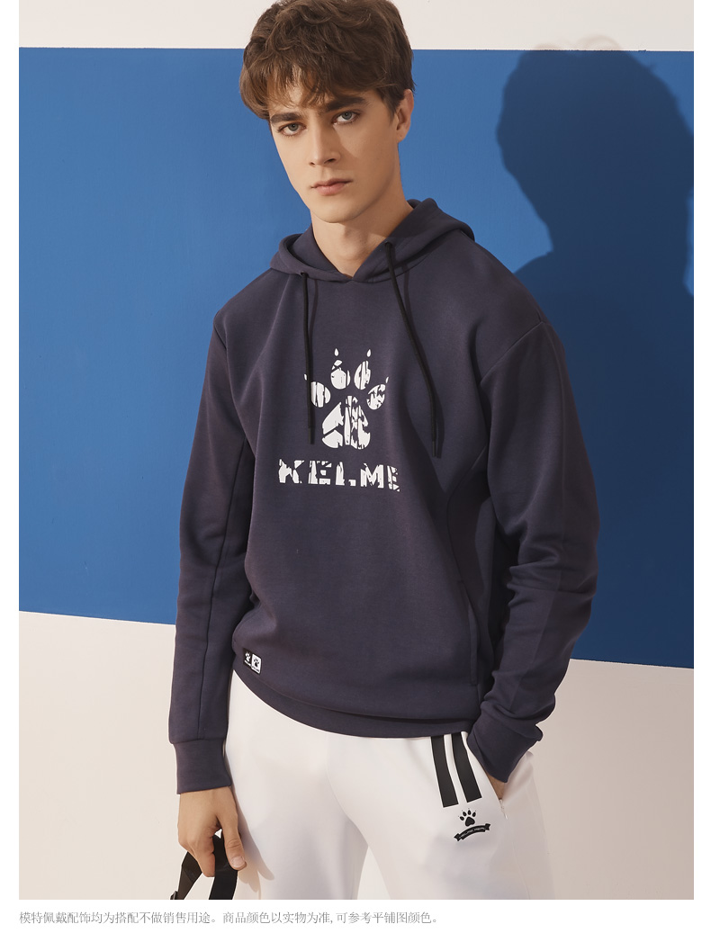 卡尔美 运动卫衣新款大LOGO针织连帽套头衫宽松休闲上衣男