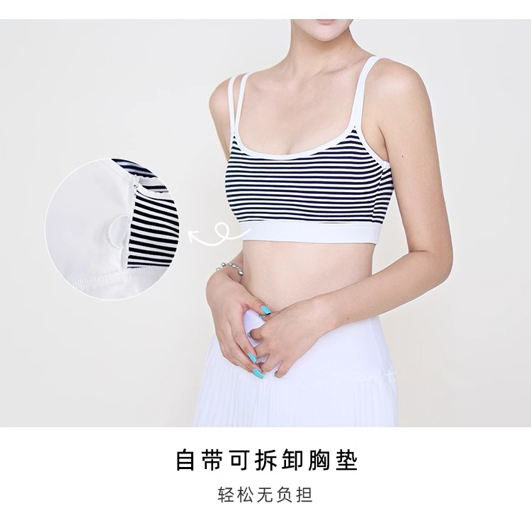 跃牌【禅语梵心】罗纹瑜伽背心女双肩带运动内衣条纹内搭小吊带美背健身文胸WX2885