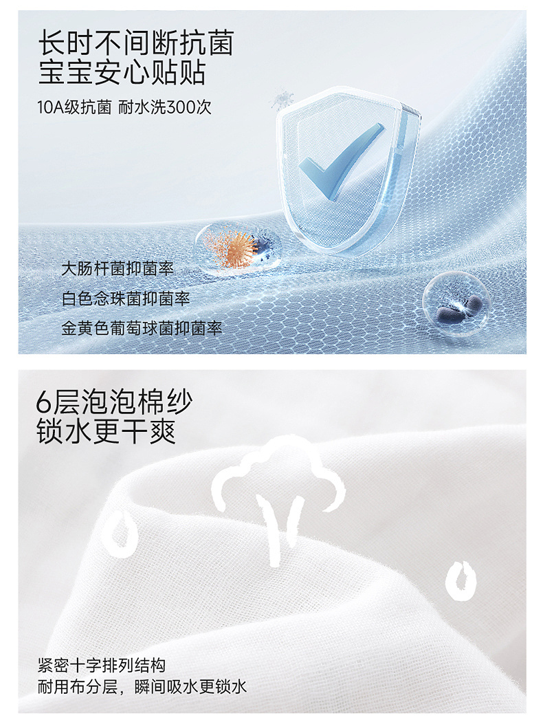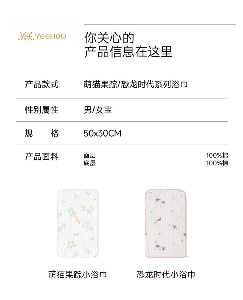 【商场同款】英氏新生儿浴巾吸水裹巾纯棉包单六层纱布盖毯洗澡巾