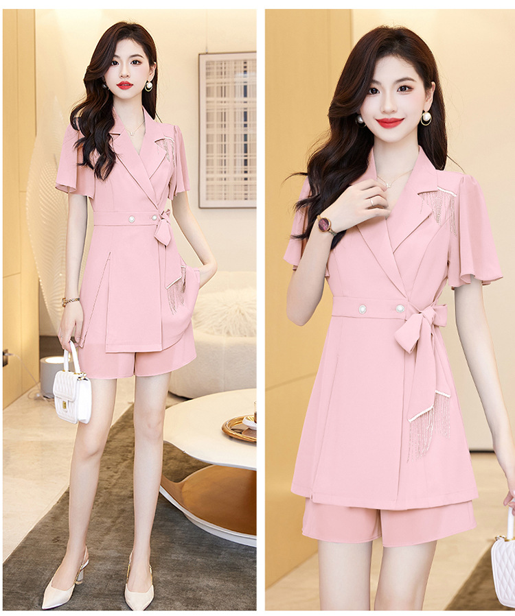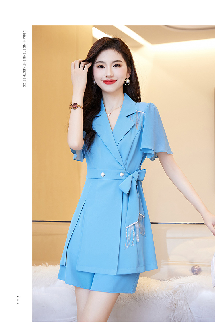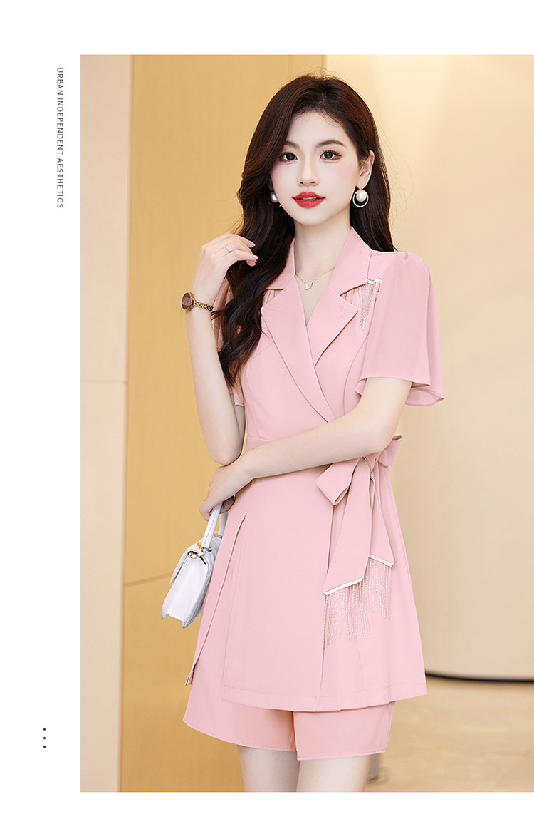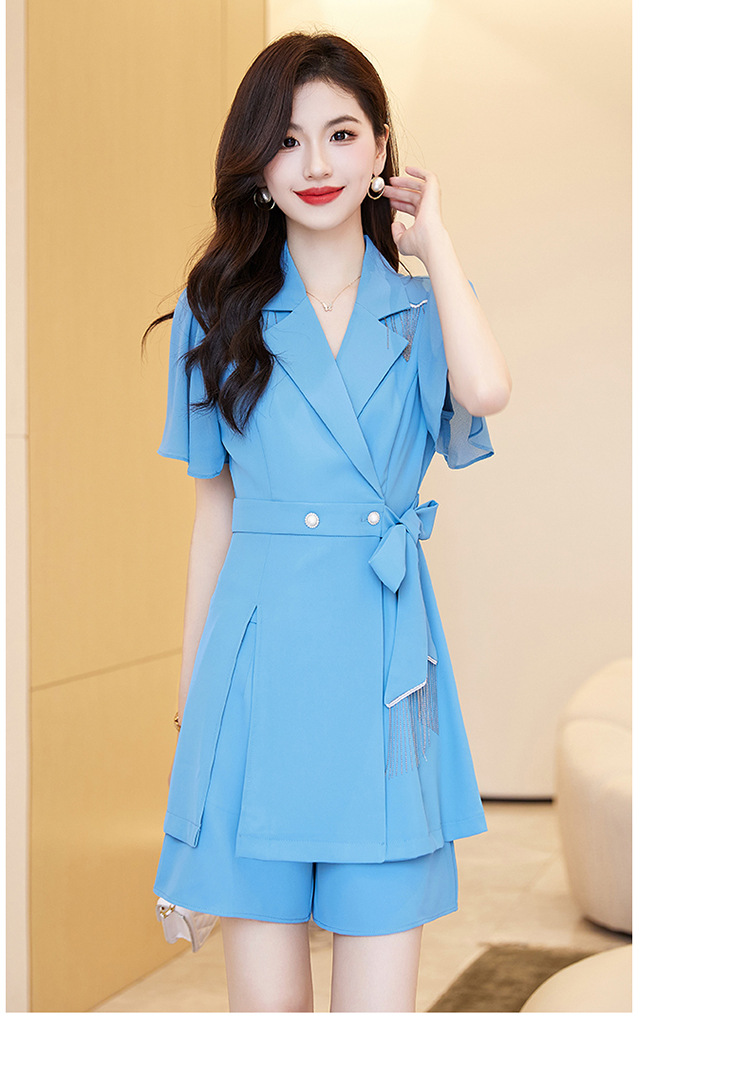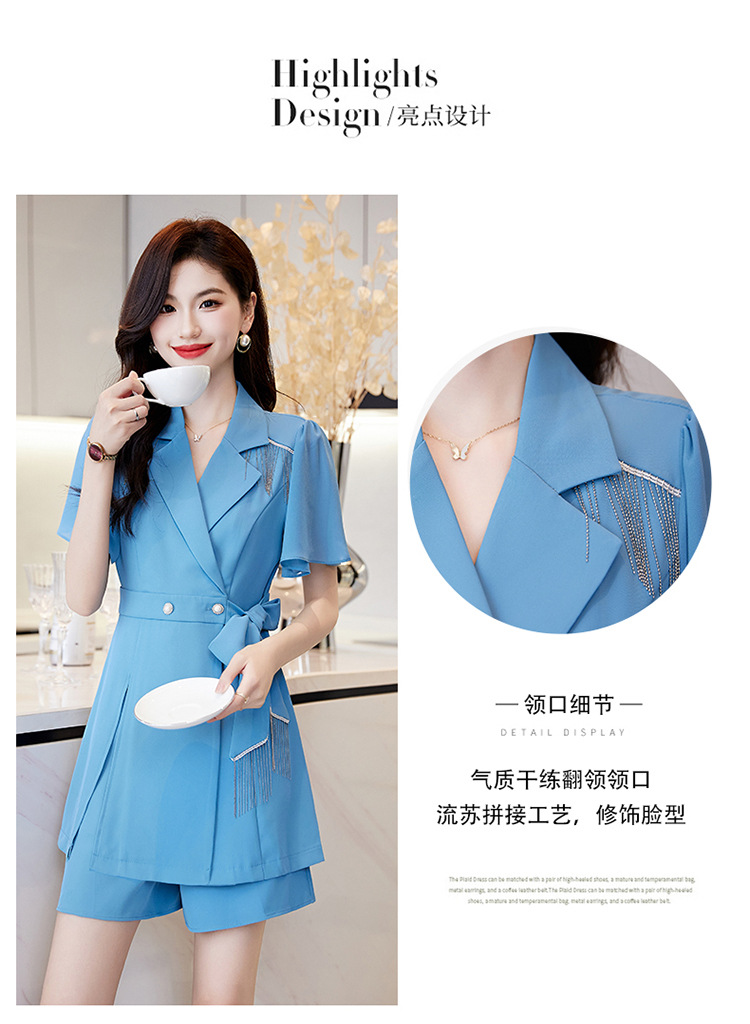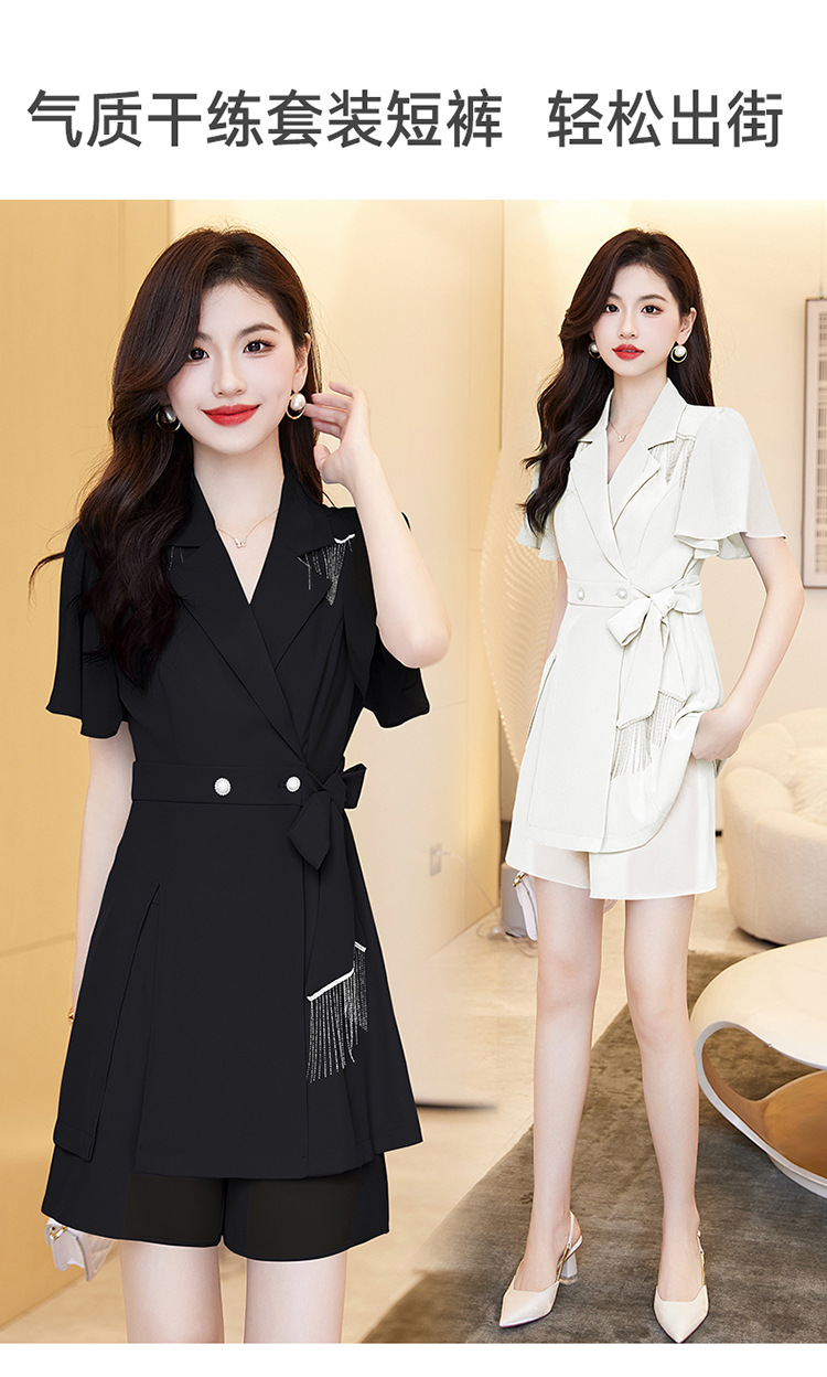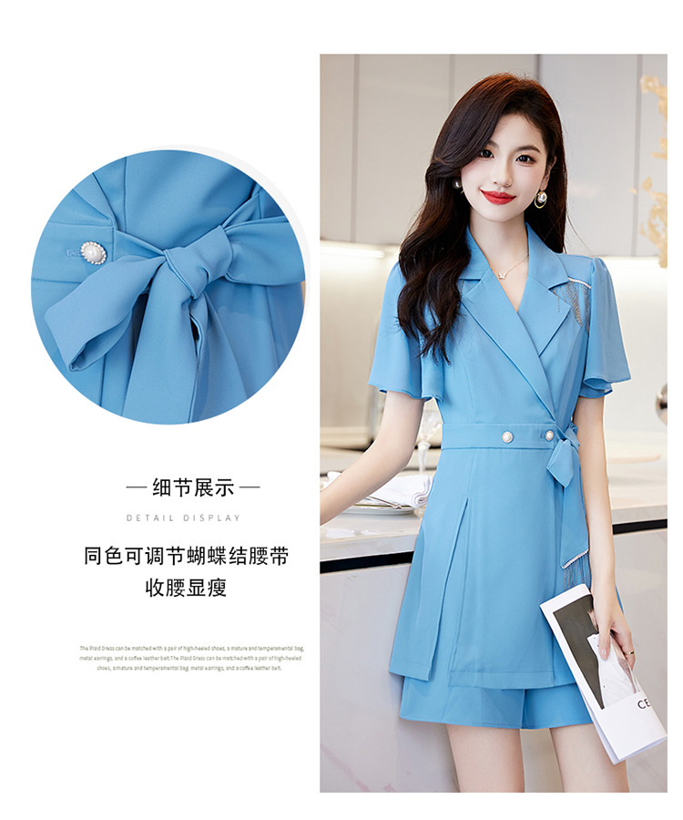 简约时尚,气质干练套装西装领收腰显瘦三分裤两件套HR-WHA90069