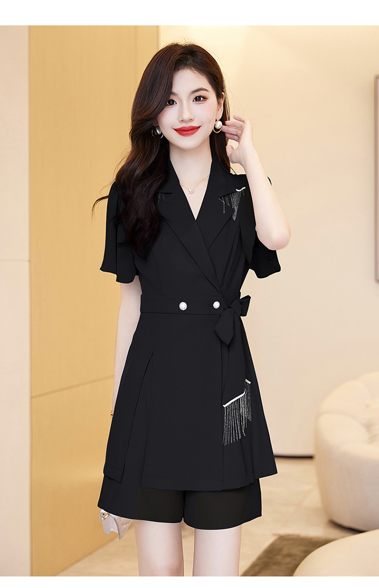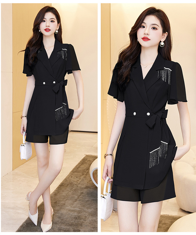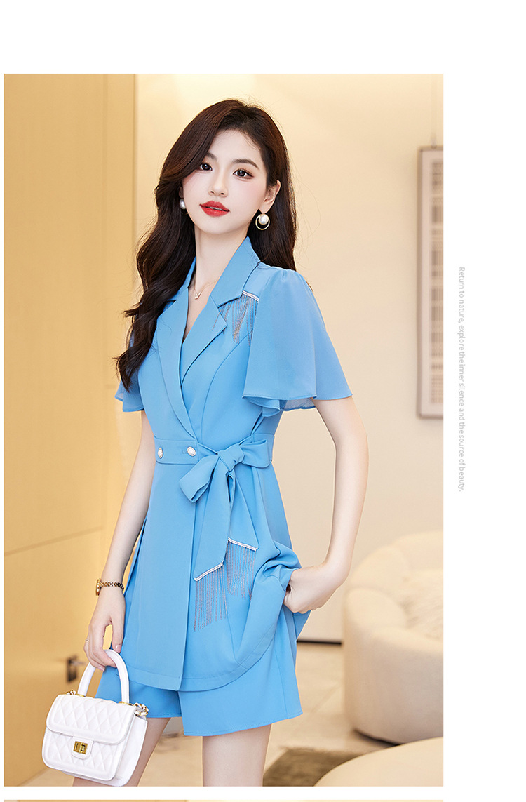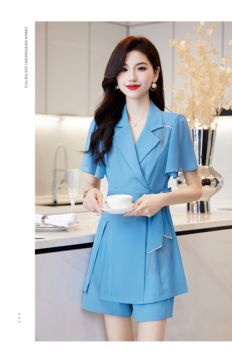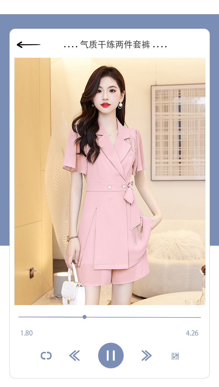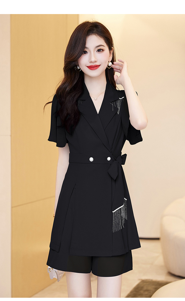 简约时尚,气质干练套装西装领收腰显瘦三分裤两件套HR-WHA90069
