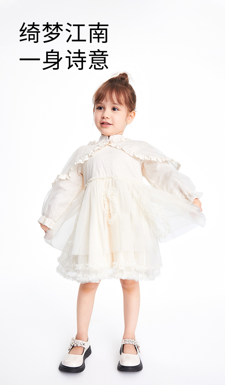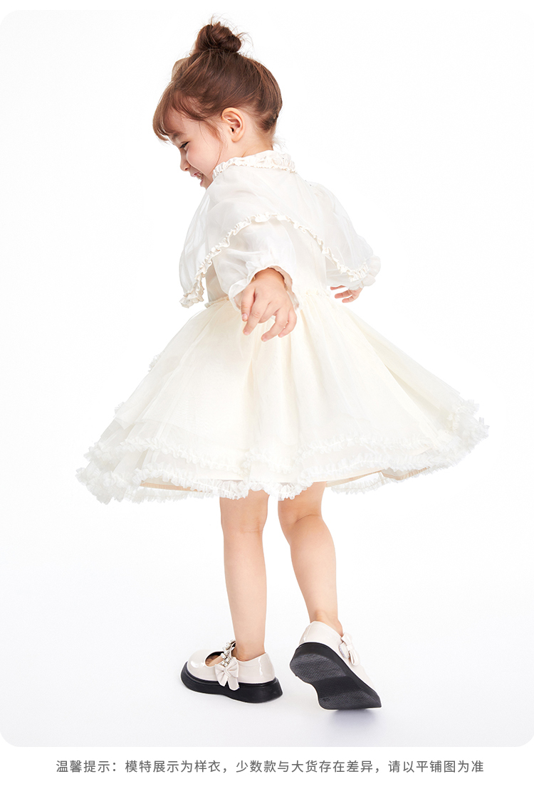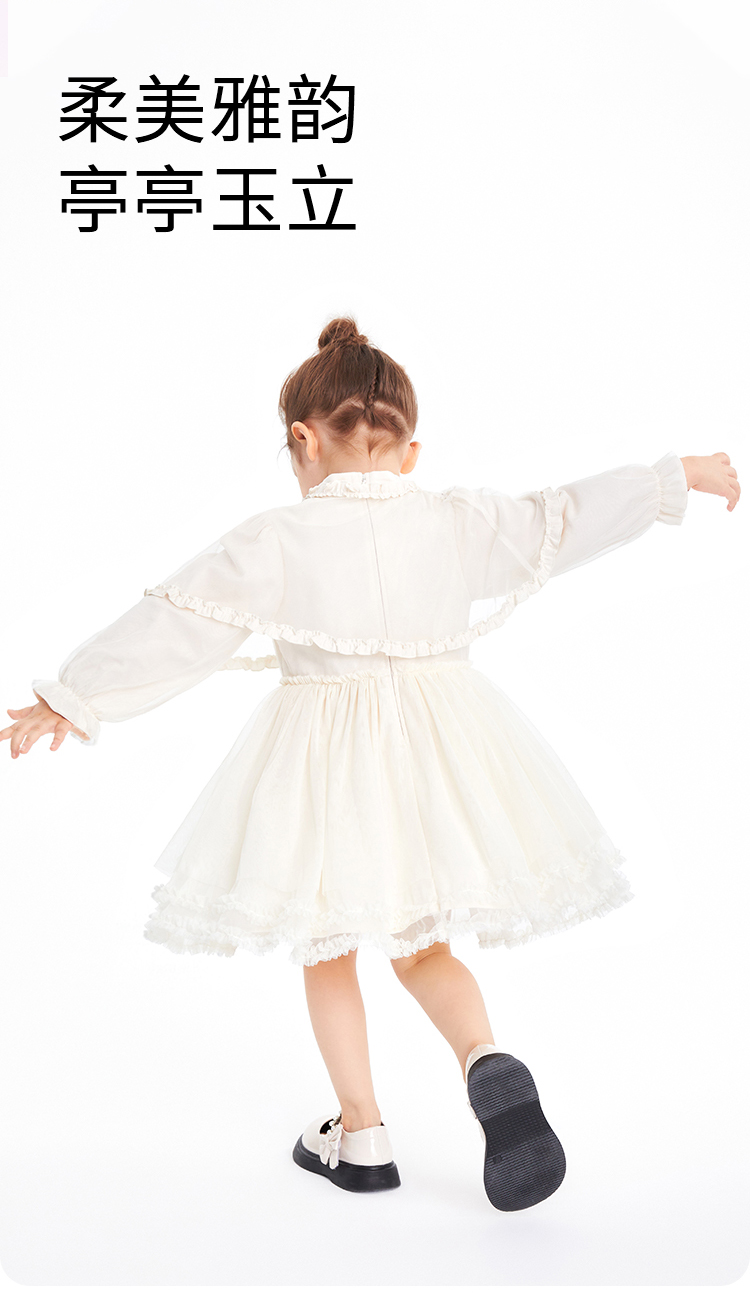 【新年红】女童连衣裙秋新款小童斗篷网纱宝宝公主裙优雅裙子安奈儿童装TG313023