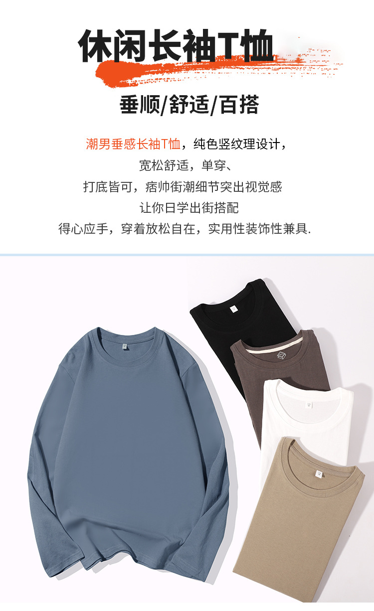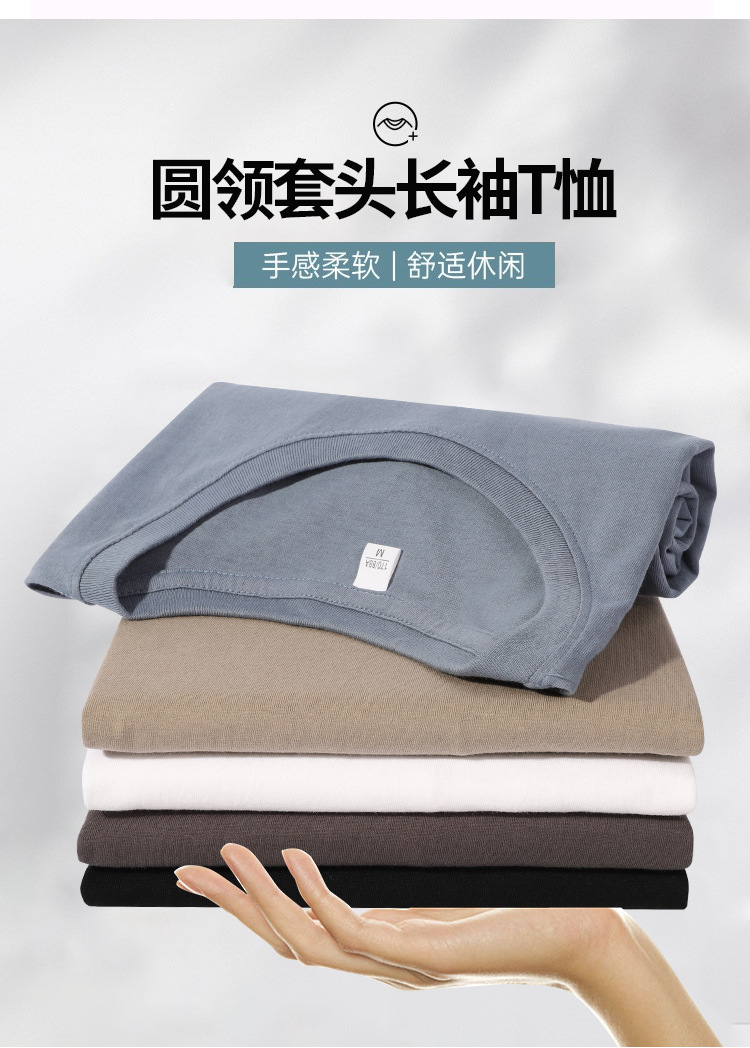 【59元2件】100%纯棉男女款长袖 200g重磅 纯色长袖 简约宽松 休闲百搭