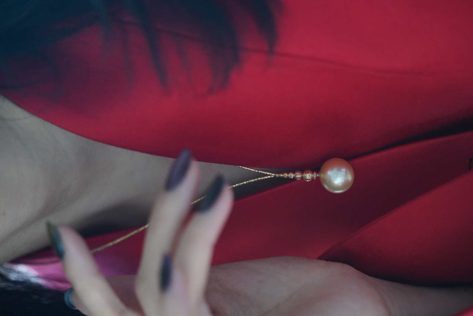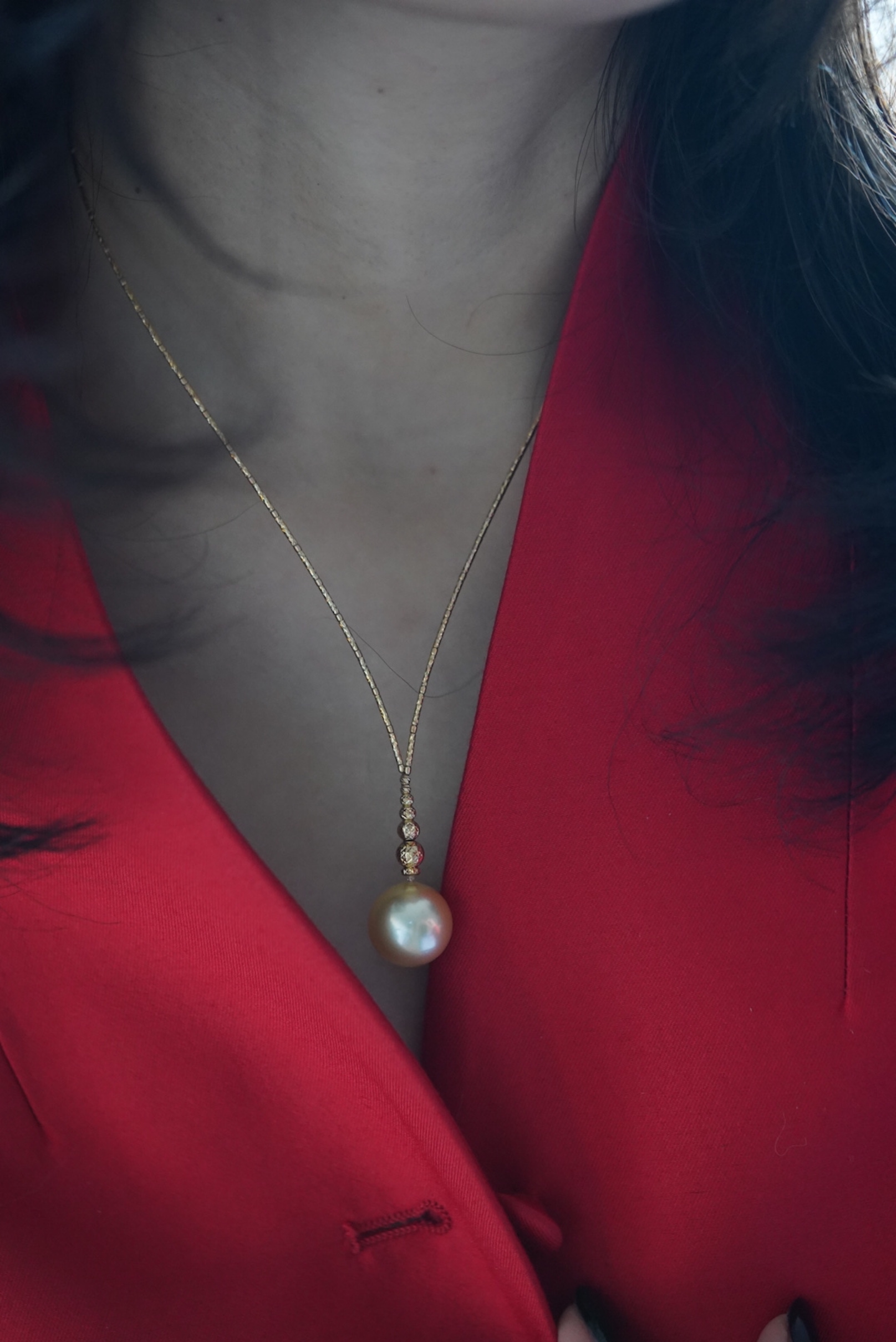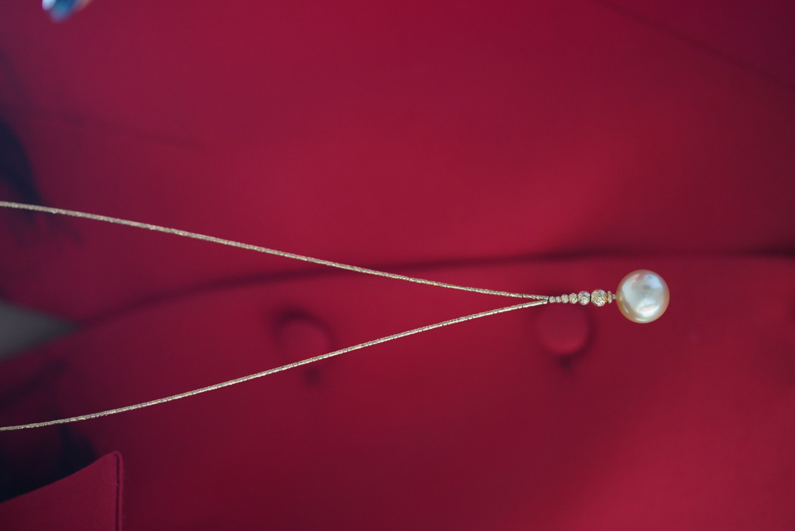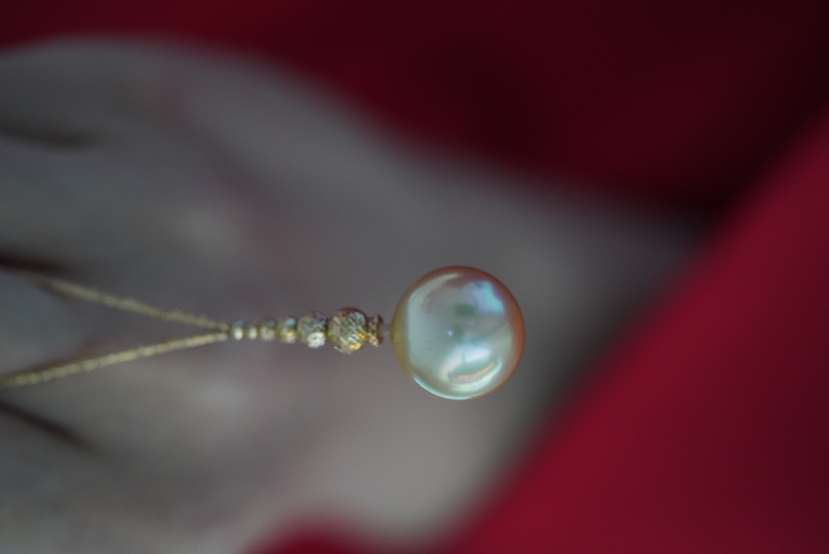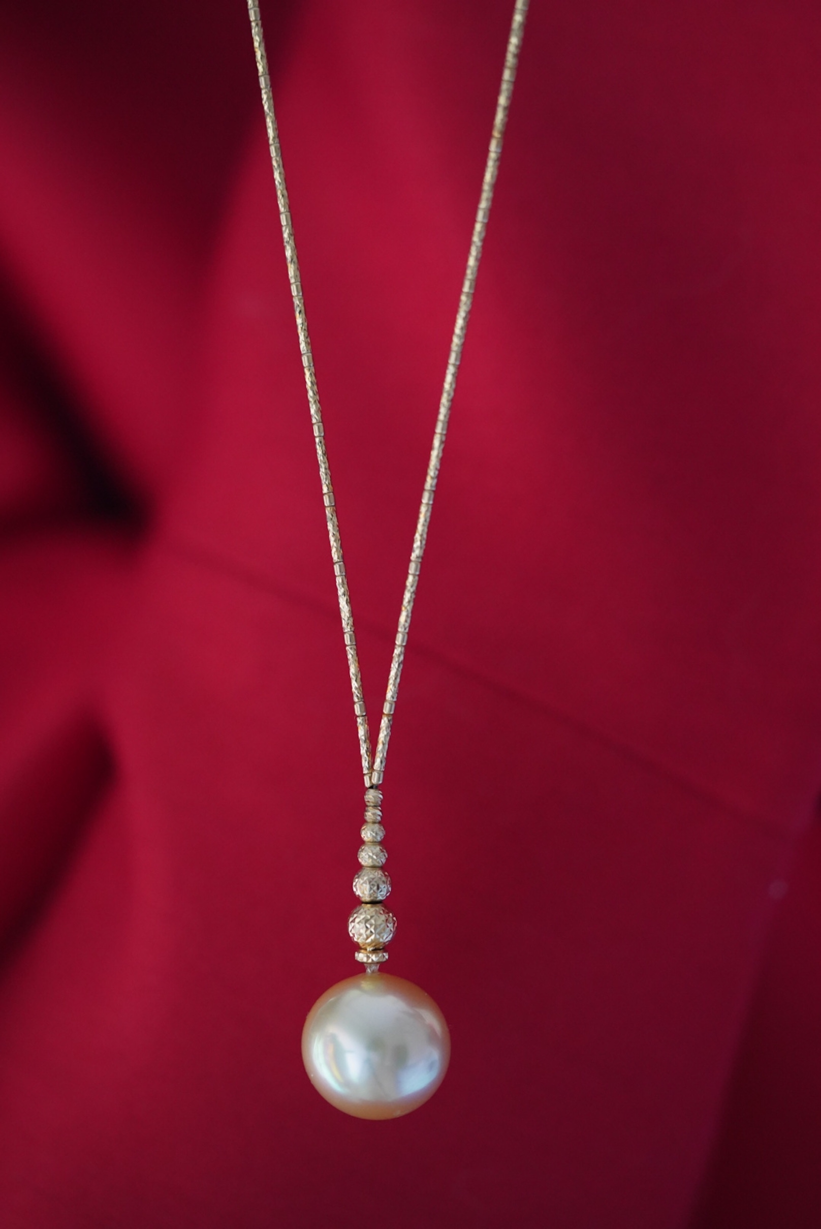 金珠吊坠「流线V型」非常女人的一款18k金进口配件配15.2mm 极近正圆金珠极强光泽 非常漂亮的太阳金背后有一处小瑕7699🉐