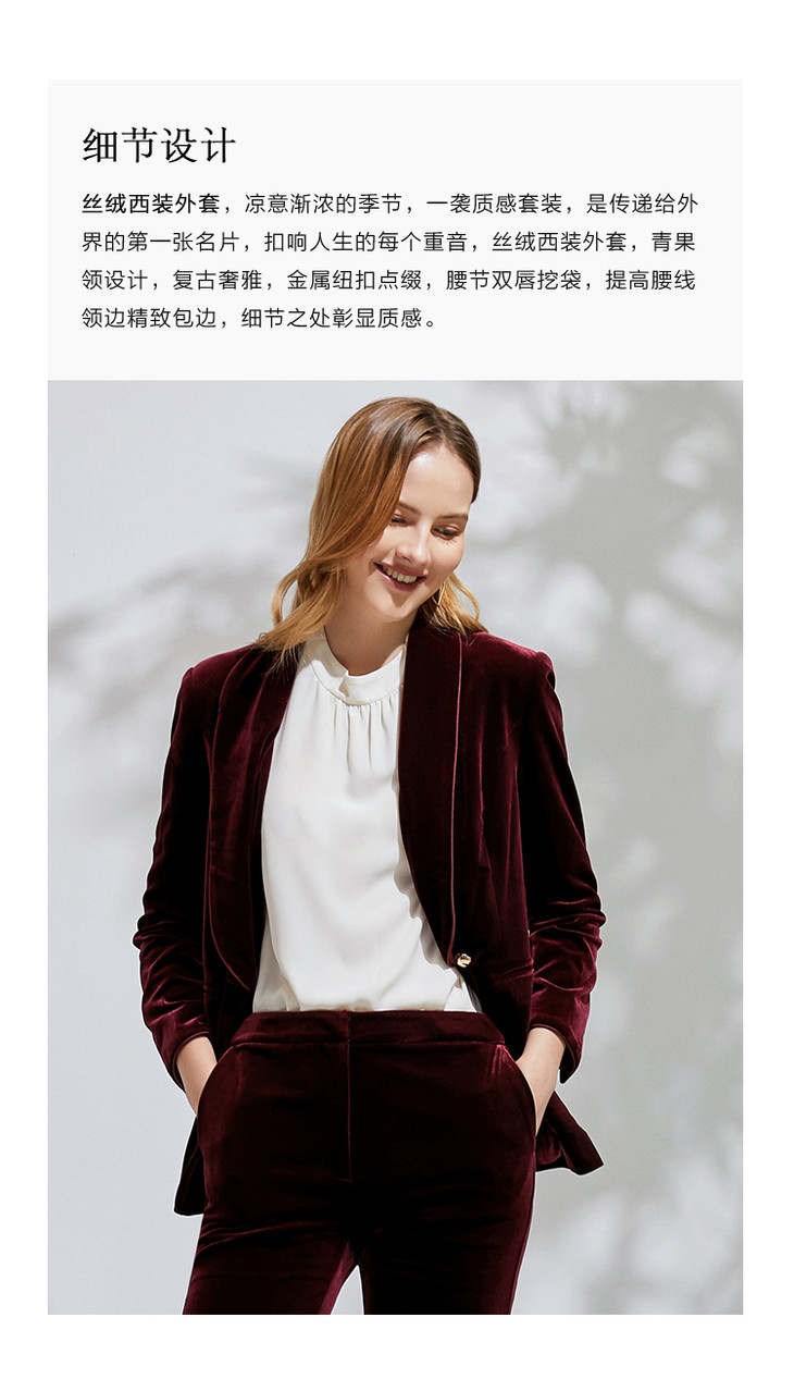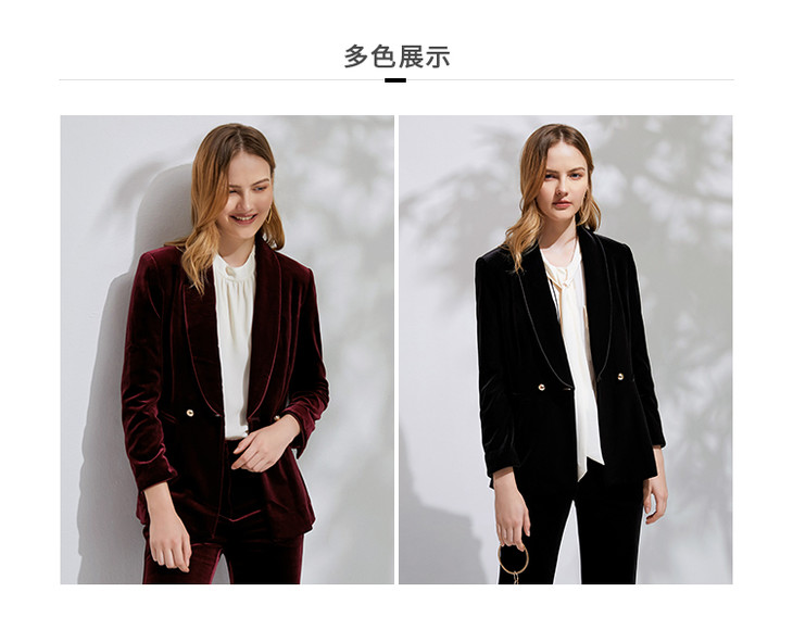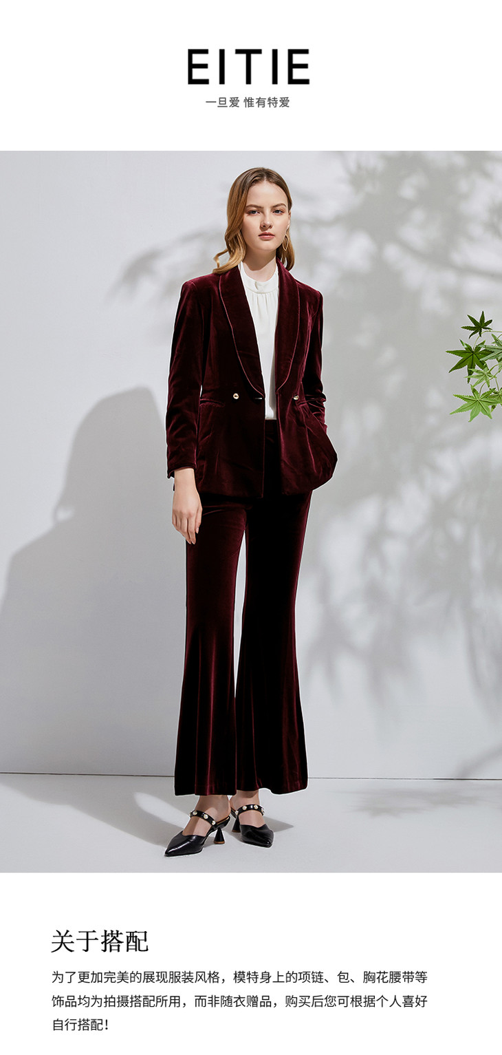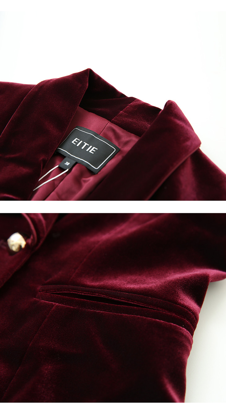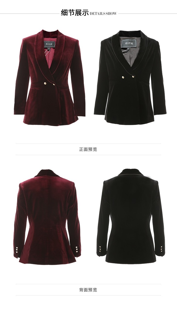 EITIE爱特爱春季新款洋气复古翻领收腰显瘦丝绒西装外套女6303007